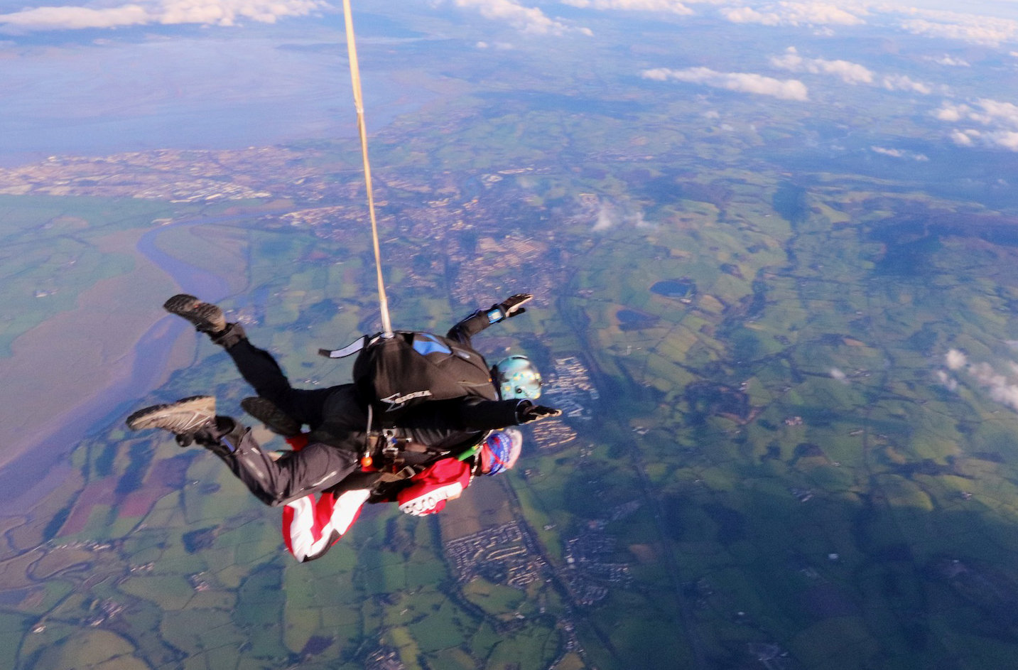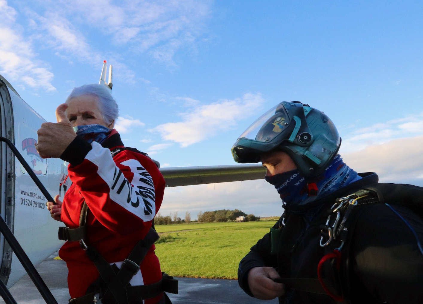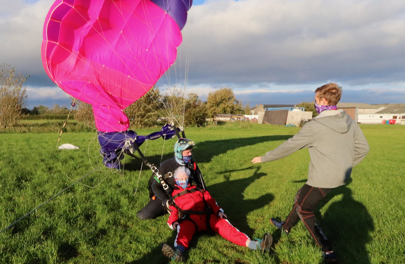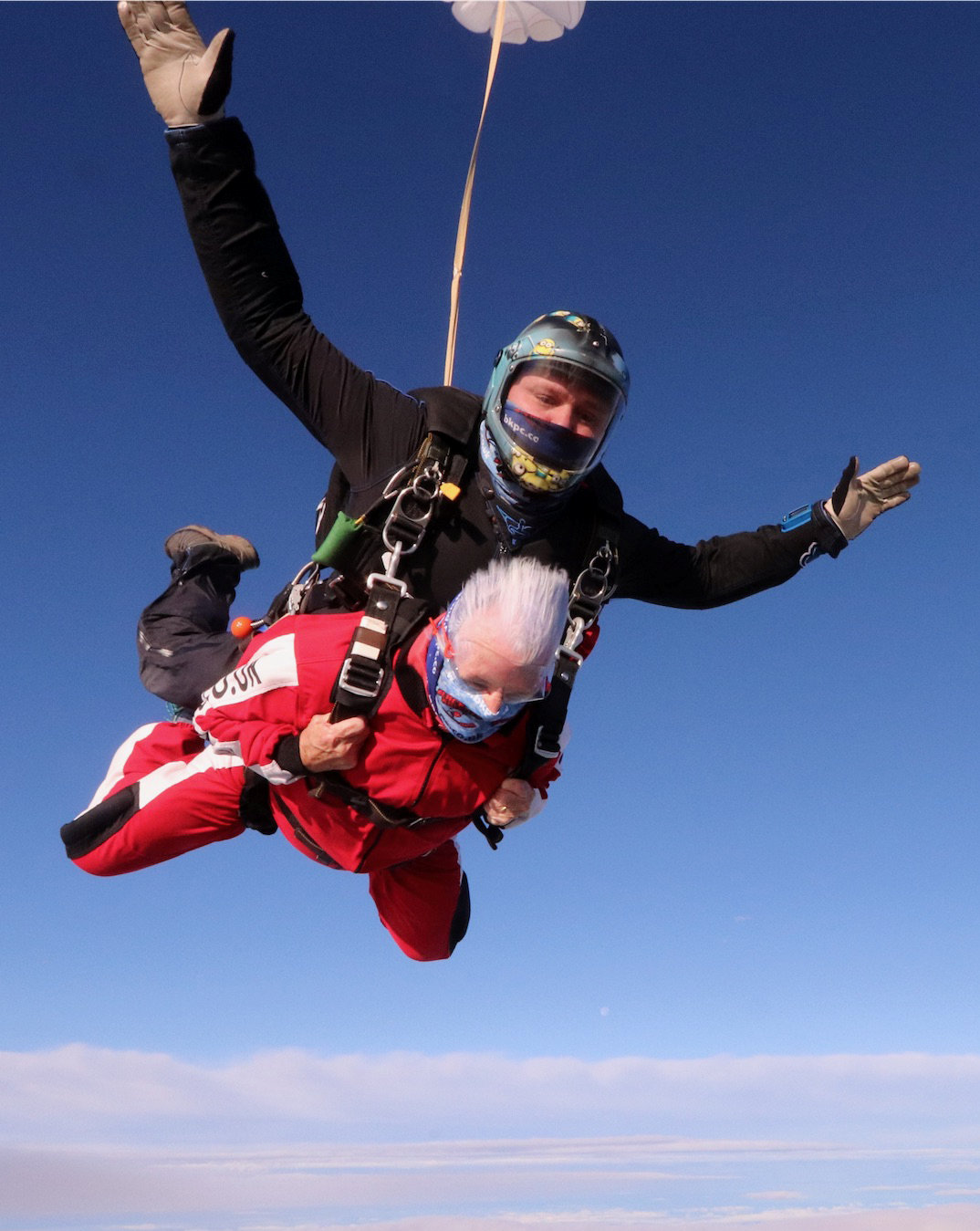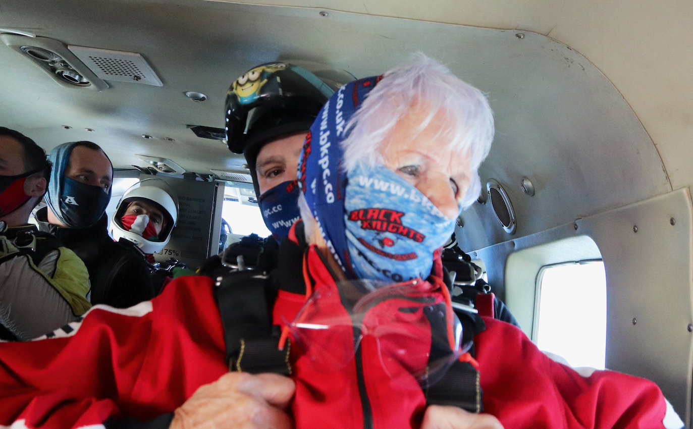 Sieviete 90. dzimšanas dienu atzīmē, izlecot ar izpletni