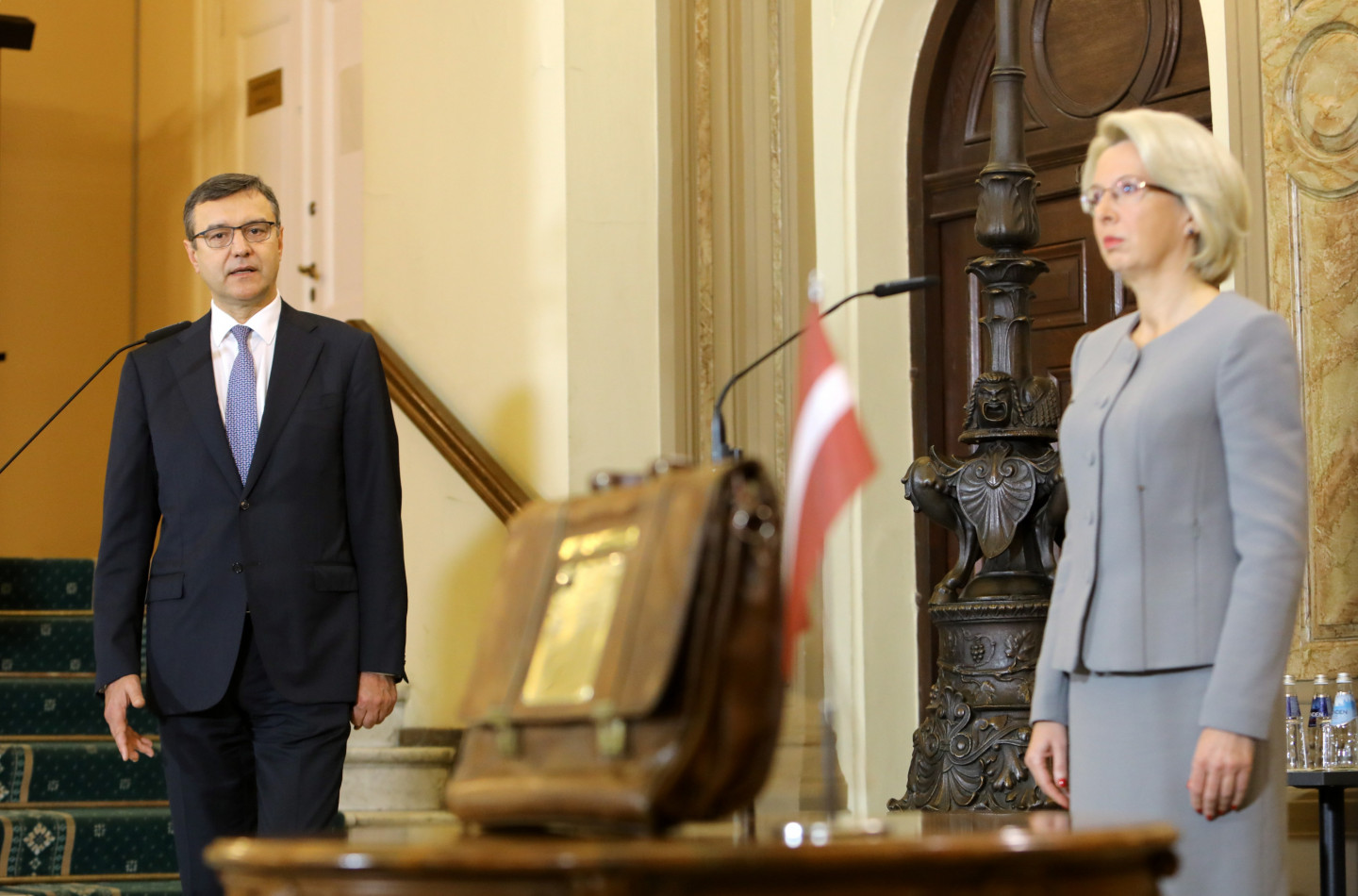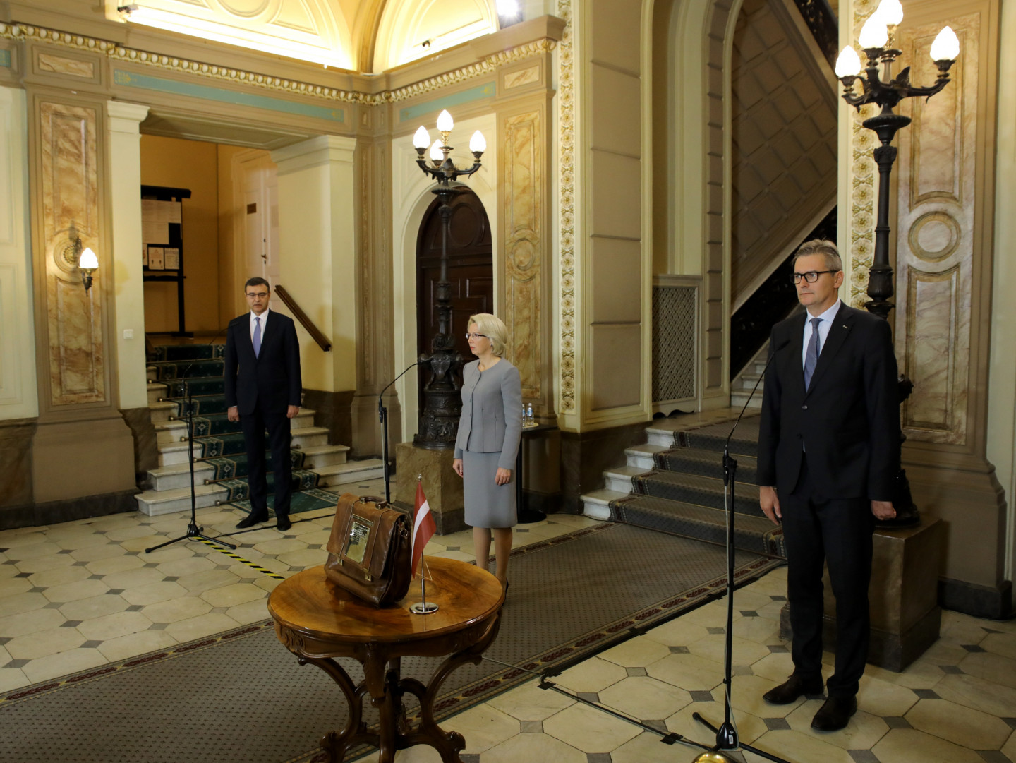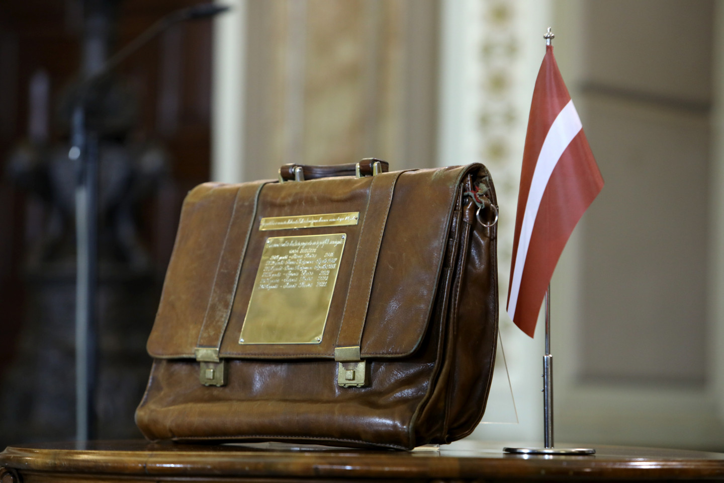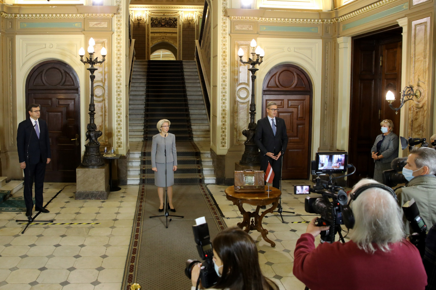 Finanšu ministrs Jānis Reirs (JV) šodien Saeimas priekšsēdētājai Inārai Mūrniecei (NA) iesniedza 2021.gada valsts budžeta likumprojektu.