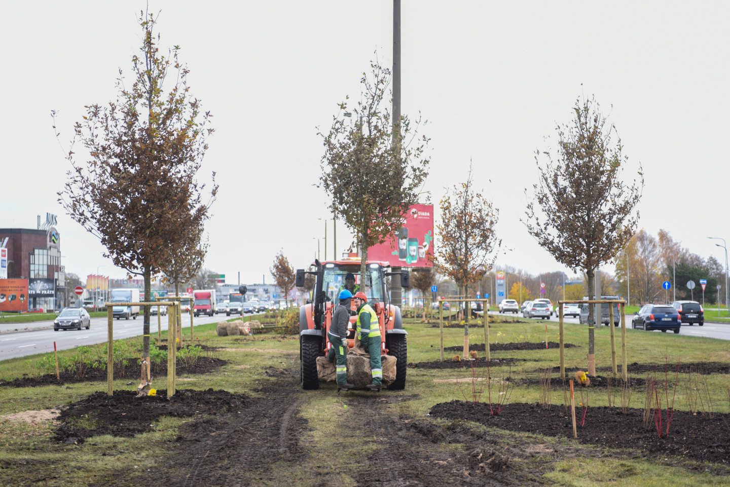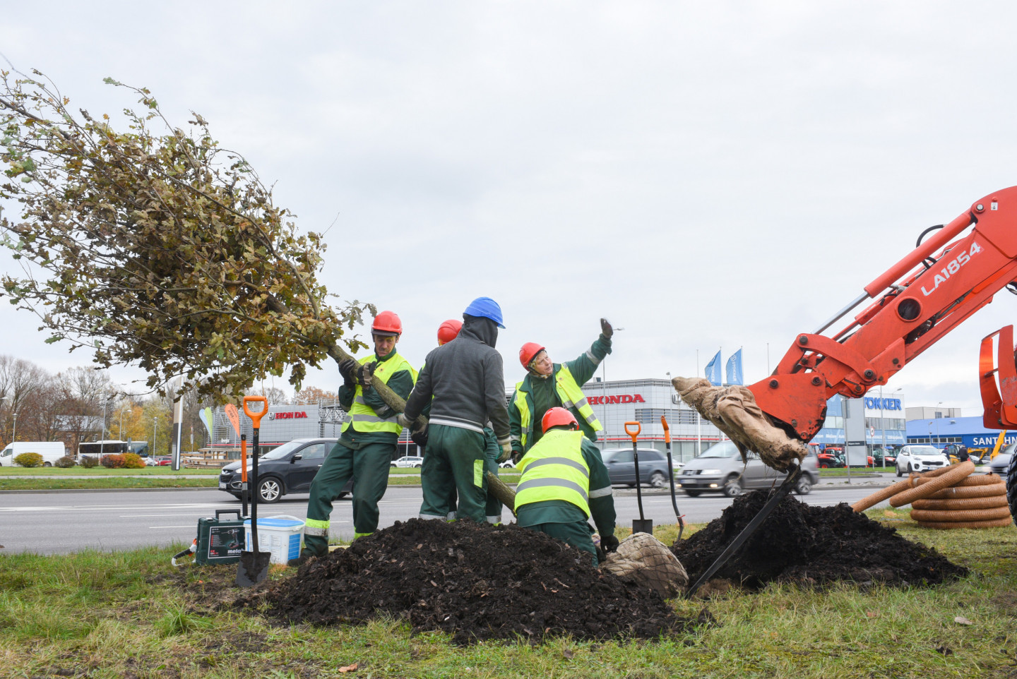 Krasta ielas rekonstrukcijas ietvaros šā gada 4.novembrī tiek uzsākta augu stādīšana Krasta ielas posmā no Dienvidu tilta līdz Salu tiltam. Šobrīd jau ir sākti augsnes sagatavošanas darbi un tiek savesti dižstādi. Krasta ielā tiek iestādīti 120 koku dižstādi - 20 Japānas baltie bērzi 'Betula platyphilla 'Fargo'' ar apkārtmēru 20-25 cm un 100 parastie ozoli 'Quercus robur' ar apkārtmēru 25-30 cm. Krasta ielas apstādījumus papildinās 2433 krūmu stādi - 133 baltā grimoņa 'Cornus alba 'Sibirica" stādi, 132. atvašu grimoņa 'Cornus stolonifera 'Flaviramea'' stādi, 123 irbeņlapu fiziokarpi 'Physocarpus opulifolius 'Luteus' un 122 irbeņlapu fizokarpi 'Physocarpus opulifolius 'Diabolo''. Kā arī 468 zelta jāņogas 'Ribes aureum', 853 rievainās rozes 'Rosa rugosa' un 602 vanhuta spirejas 'Spiraea x vanhouttei' stādi.