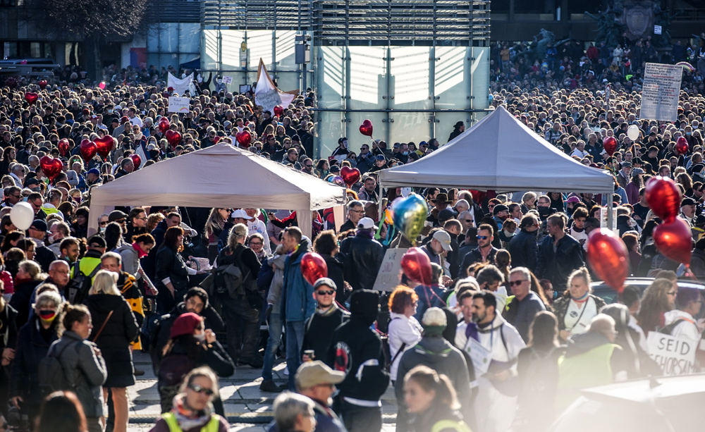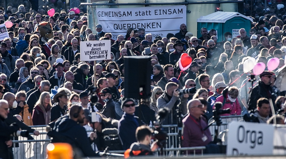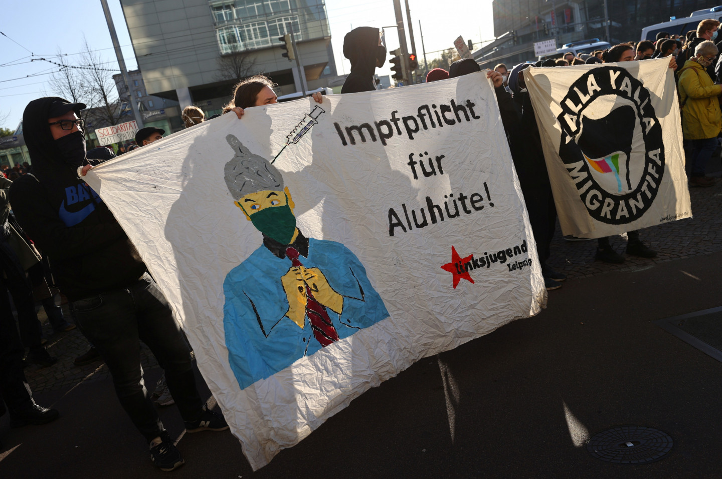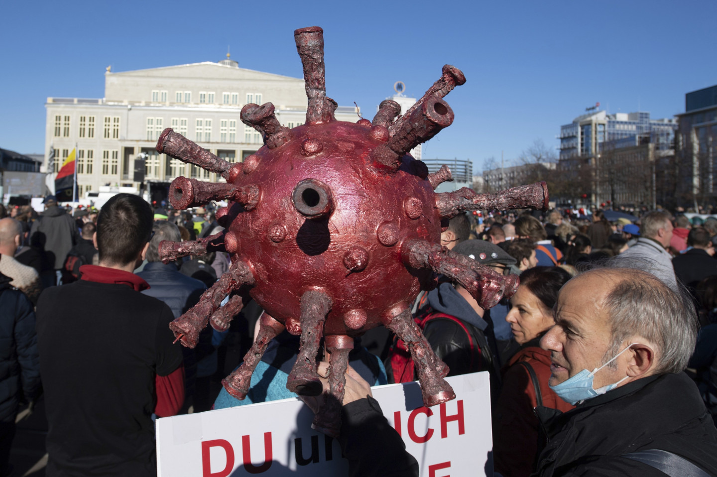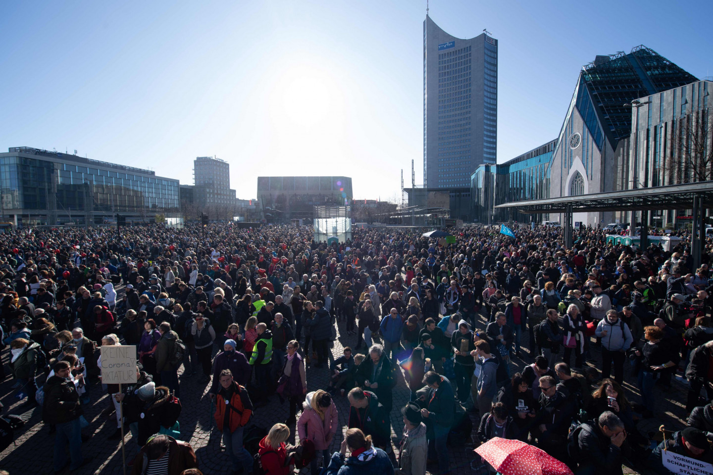 Tūkstošiem cilvēku sestdien izgājuši Leipcigas ielās, lai protestētu pret ierobežojumiem, ko Vācijas valdība izsludinājusi nolūkā apturēt Covid-19 straujo izplatību. Kopumā nedēļas nogalē pilsētā pieteiktas 27 protesta akcijas, taču lielāko no tām pieteikusi kustība "Querdenken" (Netradicionālā jeb tā dēvētā laterālā domāšana), kas prognozējusi, ka demonstrācijā piedalīsies 20 000 cilvēku. Varasiestādes mēģināja tiesā panākt šī mītiņa pārnešanu uz jauno Leipcigas gadatirgus laukumu, kas atrodas ārpus pilsētas centra, taču prāvu zaudēja, un tiesa sestdienas rītā ļāva 16 000 cilvēku pulcēties pilsētas galvenajā laukumā. Tikai nedaudzi no vairākiem tūkstošiem ļaužu, kas pulcējušies Leipcigas vēsturiskajā centrā, ir sejas aizsargmaskās vai savstarpēji ievēro minimālo distanci - 1,5 metrus. "Mums ir gandrīz neiespējami to kontrolēt," atzinis policijas pārstāvis. "Ir grūti izskaidrot, kāpēc, kad atļauts tikties tikai divu mājsaimniecību pārstāvjiem, 16 000 cilvēku ļauj rīkot demonstrāciju laukumā," savukārt izteicies municipalitātes pārstāvis Matiass Hasbergs. Leipcigas policijas priekšnieks Torstens Šulce vēl piektdien norādīja uz aicinājumiem sociālajos medijos uz vardarbīgiem protestiem, kas izskan gan no labējo, gan kreiso ekstrēmistu puses. Viņš gan atzinis, ka pagaidām nav "konkrētu pierādījumi par vardarbības aktiem".
