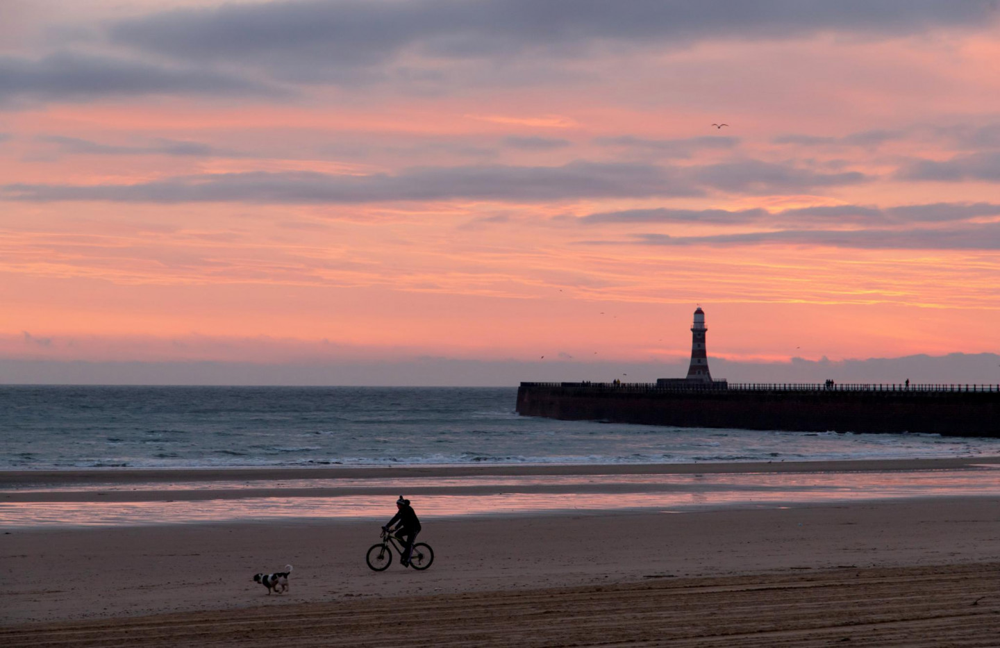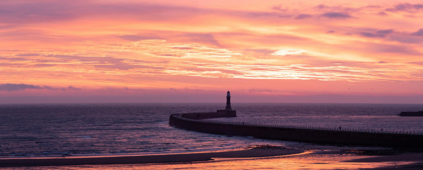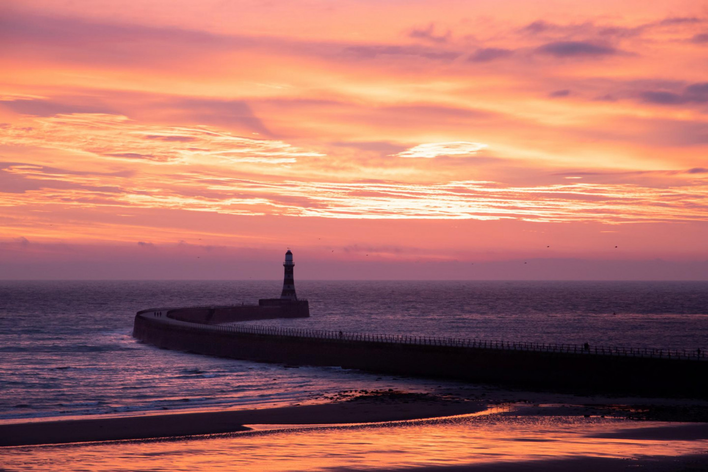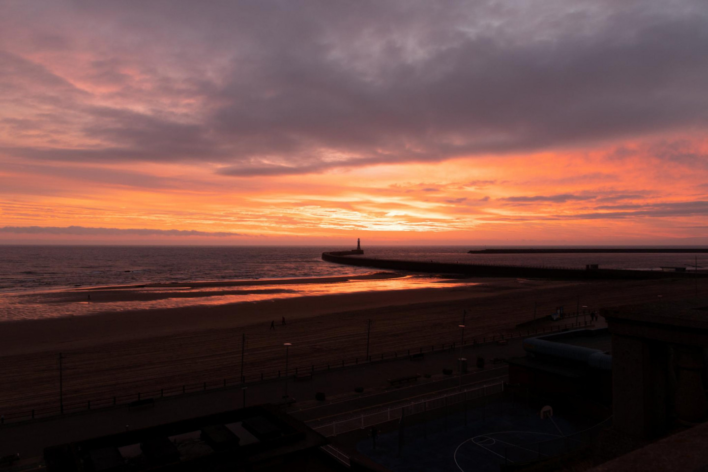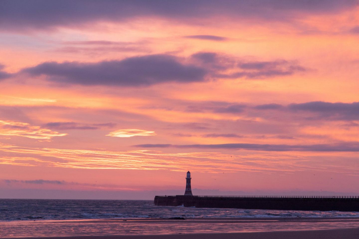 Iespaidīgais saullēkts Rokerā Sunderlandā, Lielbritānijā