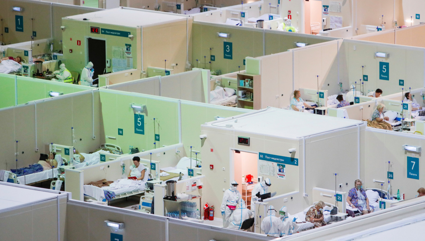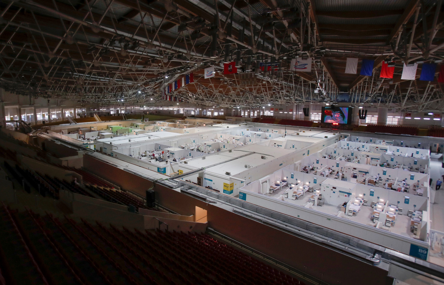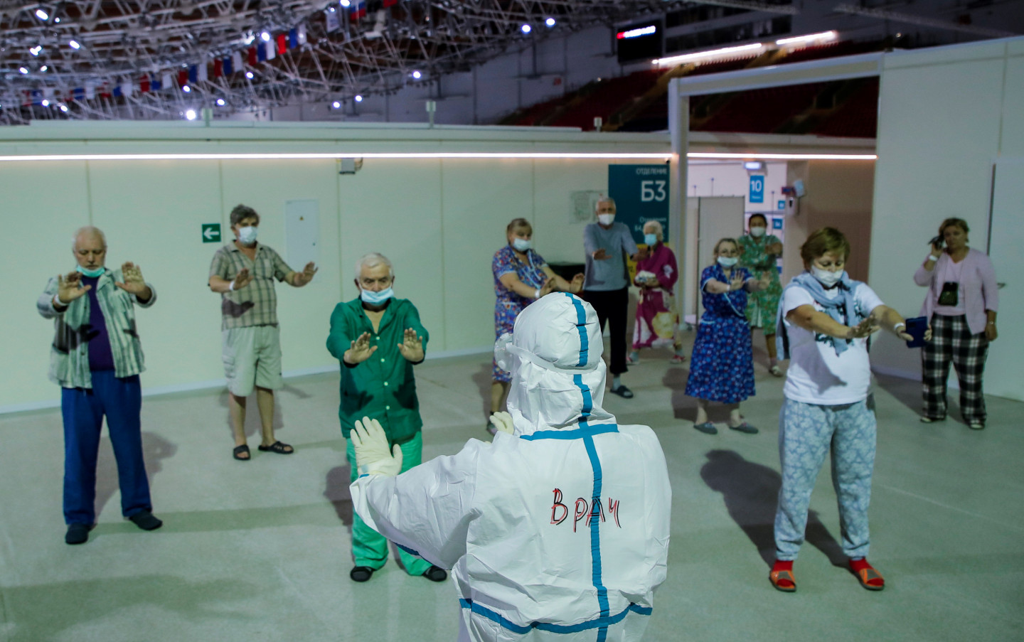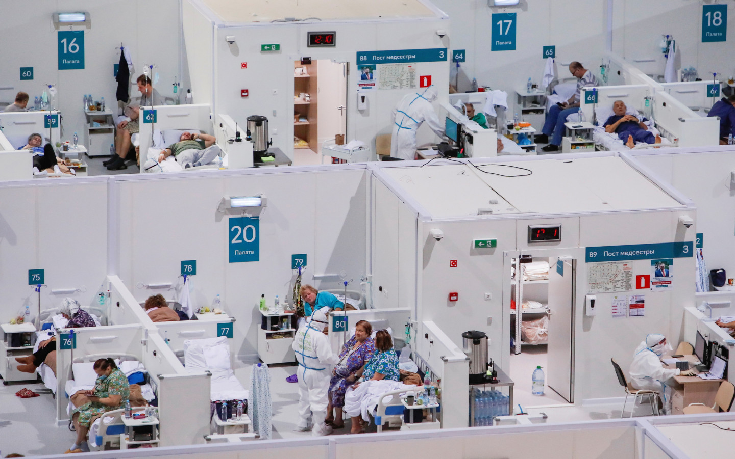 Maskavas ledus hallē ir ierīkota pagaidu slimnīca Covid-19 sasirgušajiem. Pirmdien, kad Krievijā tika reģistrēts rekordliels inficēto skaits, tika pieņemts lēmums ierīkot pagaidu slimnīcu ledus hallē. Otrdien Krievijā tika reģistrēti 20985 jauni koronavīrusa gadījumi. Kopumā līdz šim Krievijā ir reģistrēti 1991998 saslimšanas gadījumi, savukārt 34387 personas ir mirušas no Covid-19.