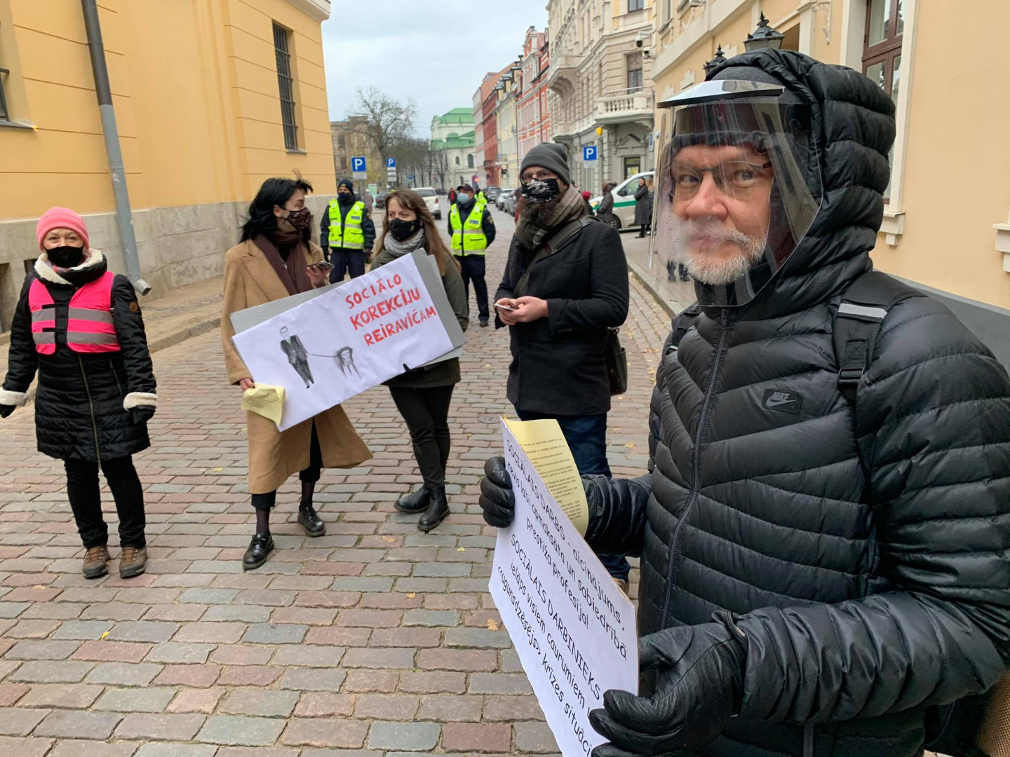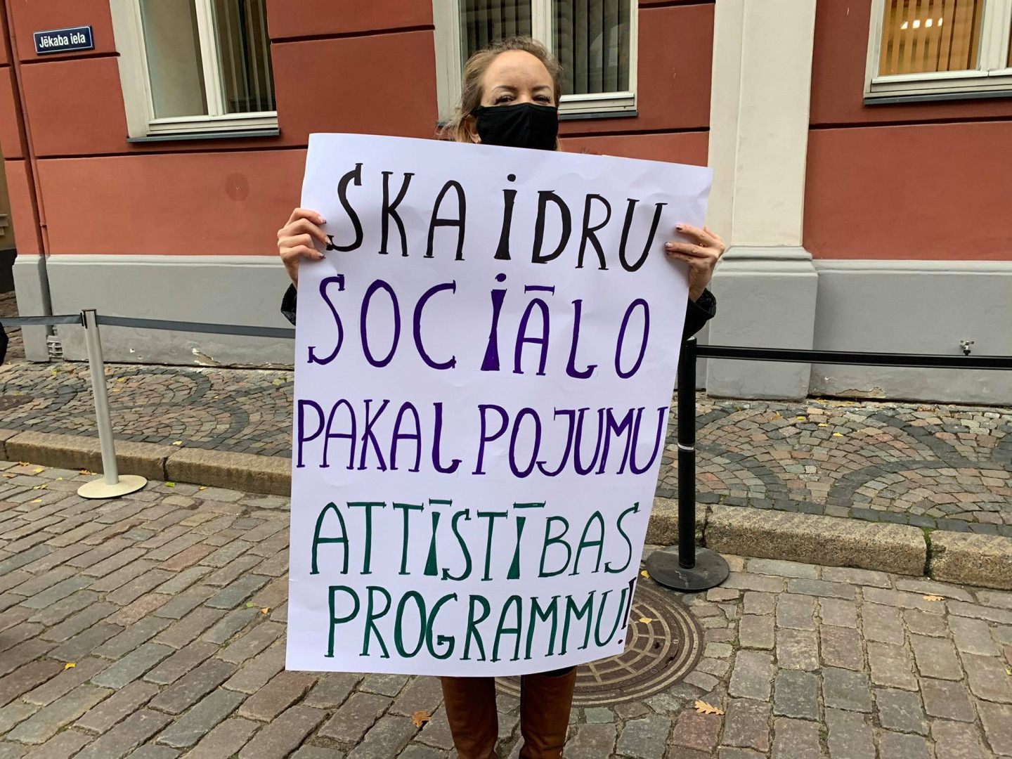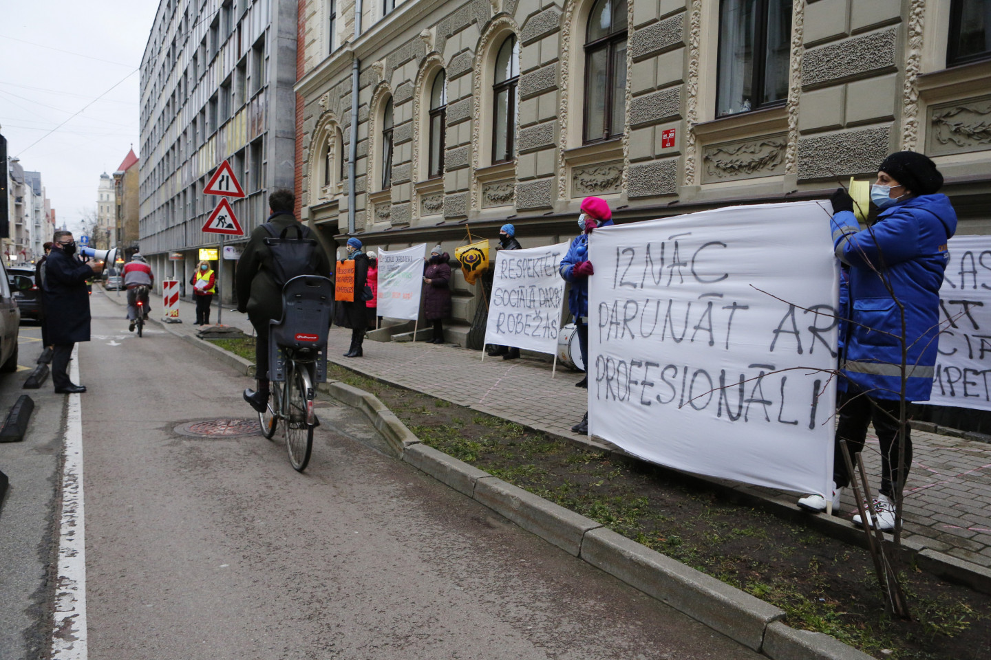 Pie Labklājības ministrijas (LM) šorīt ir sapulcējušies aptuveni 30 cilvēki, tajā skaitā sociālie darbinieki no Latvijas reģioniem, novēroja aģentūra LETA. Visiem protesta dalībniekiem ir sejas aizsargmaskas. Cilvēkiem rokās ir plakāti "Sociālie darbinieki, uzticība, palīdzība citiem". Sociālie darbinieki valdībai pieprasa nodrošināt konkurētspējīgāku atalgojumu, jo patlaban zemā atalgojuma dēļ nozarē trūkst ļoti daudz darbinieku. Lai arī ir panākta vienošanās, ka sociālajiem darbiniekiem nevajadzēs izvērtēt personu ienākumus, viņi joprojām ļoti kritiski izsakās par Finanšu ministrijas (FM) un LM iniciatīvu uzlikt pašvaldību sociālajiem dienestiem funkciju - vērtēt pašnodarbināto un mikrouzņēmuma nodokļa maksājumu atbilstību trūcīgas personas statusam vai sniegt apliecinājumu, ka viņa ienākumi ir nepietiekami, lai viņi varētu saņemt iespēju nemaksāt minimālās obligātās sociālās apdrošināšanas iemaksas. Kā uzsver rīkotāji, sapulces dalībnieki iestājas par jaunu sociālo pakalpojumu vienmērīgu attīstīšanu visā Latvijā, par tādu Bērnu tiesību aizsardzības sistēmas reformu, kurā bērns būtu ieguvējs, par investīcijām sociālo darbinieku jomas cilvēkresursu kapacitātes stiprināšanā un citiem.