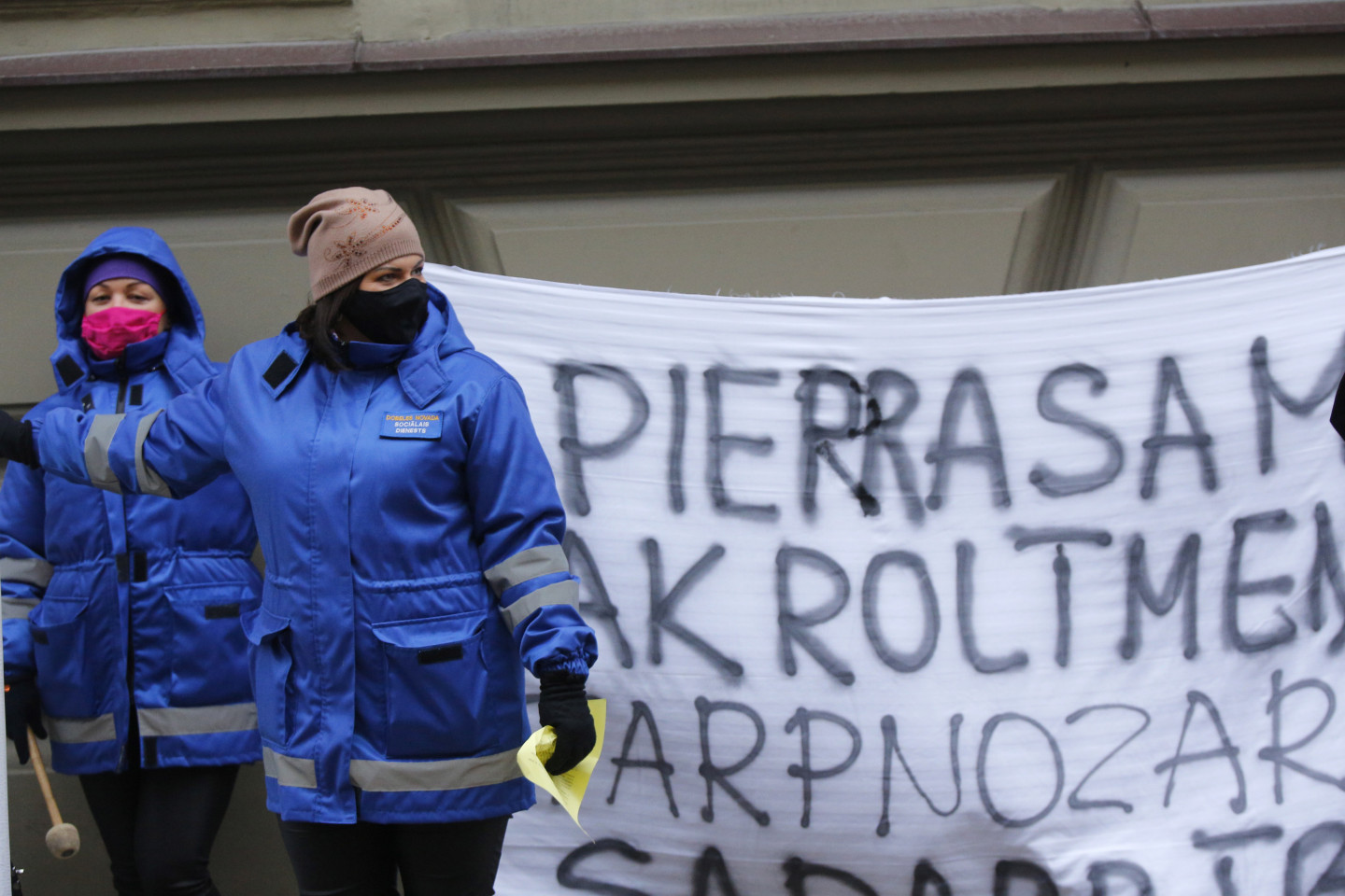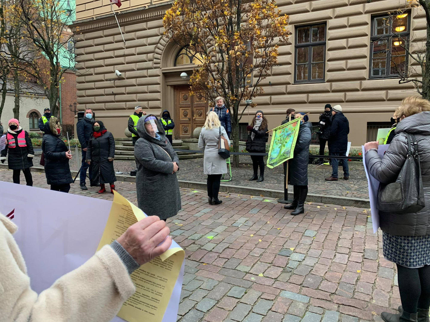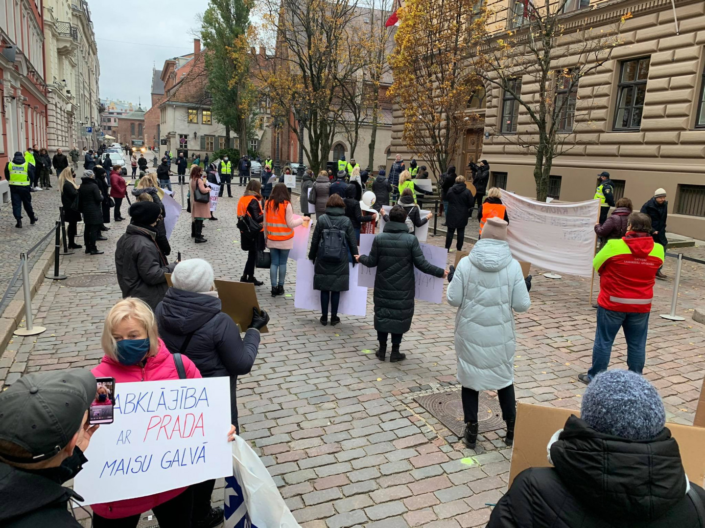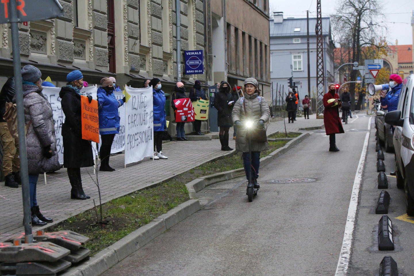 Pie Labklājības ministrijas (LM) šorīt ir sapulcējušies aptuveni 30 cilvēki, tajā skaitā sociālie darbinieki no Latvijas reģioniem, novēroja aģentūra LETA. Visiem protesta dalībniekiem ir sejas aizsargmaskas. Cilvēkiem rokās ir plakāti "Sociālie darbinieki, uzticība, palīdzība citiem". Sociālie darbinieki valdībai pieprasa nodrošināt konkurētspējīgāku atalgojumu, jo patlaban zemā atalgojuma dēļ nozarē trūkst ļoti daudz darbinieku. Lai arī ir panākta vienošanās, ka sociālajiem darbiniekiem nevajadzēs izvērtēt personu ienākumus, viņi joprojām ļoti kritiski izsakās par Finanšu ministrijas (FM) un LM iniciatīvu uzlikt pašvaldību sociālajiem dienestiem funkciju - vērtēt pašnodarbināto un mikrouzņēmuma nodokļa maksājumu atbilstību trūcīgas personas statusam vai sniegt apliecinājumu, ka viņa ienākumi ir nepietiekami, lai viņi varētu saņemt iespēju nemaksāt minimālās obligātās sociālās apdrošināšanas iemaksas. Kā uzsver rīkotāji, sapulces dalībnieki iestājas par jaunu sociālo pakalpojumu vienmērīgu attīstīšanu visā Latvijā, par tādu Bērnu tiesību aizsardzības sistēmas reformu, kurā bērns būtu ieguvējs, par investīcijām sociālo darbinieku jomas cilvēkresursu kapacitātes stiprināšanā un citiem.