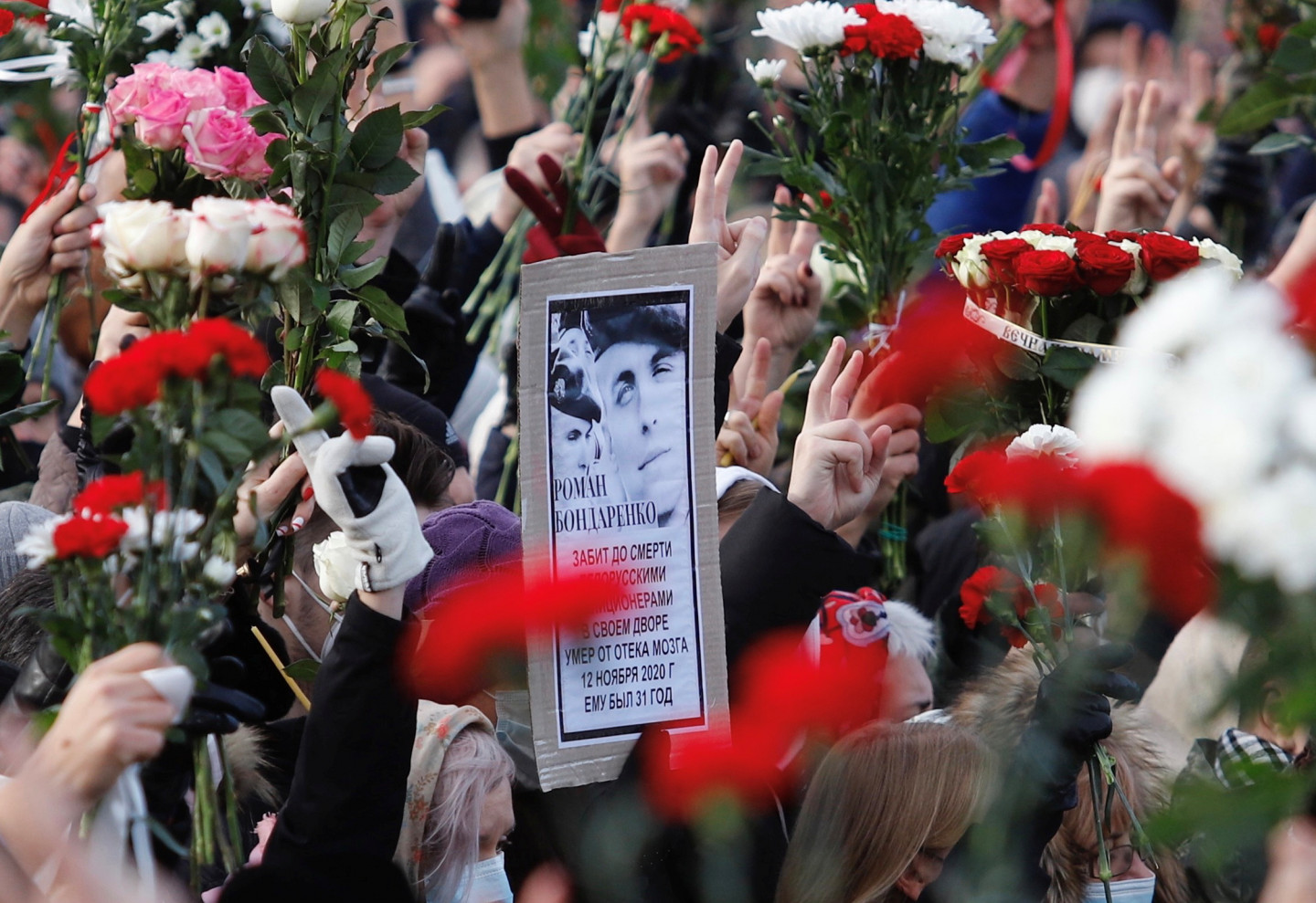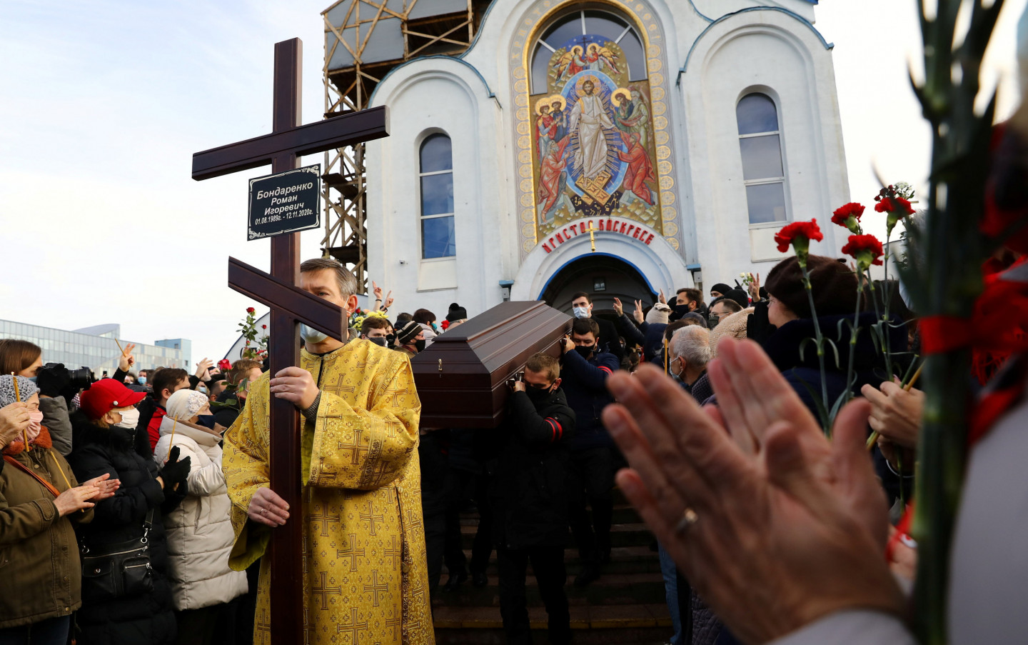 Aptuveni 5000 cilvēku piektdien Minskā atvadījās no aktīvista Ramana Bandarenkas, kurš mira 12.novembrī pēc piekaušanas un aizturēšanas. 31 gadu veco Bandarenku Minskā paša mājas pagalmā 11.novembrī piekāva cilvēki maskās, kas no sētām ņēma nost baltisarkanbaltās lentes. Nākamajā dienā Bandarenka nomira slimnīcā, kur viņš tika nogādāts no Minskas Centrālās rajona iekšlietu pārvaldes ar plašu smadzeņu tūsku, slēgtu galvaskausa un smadzeņu traumu, subdurālām hematomām, sasitumiem un nobrāzumiem. Atvadīšanās no Bandarenkas notika baznīcā Minskas piepilsētā, kur cilvēki ieradās ar sarkaniem un baltiem ziediem. Baltkrievijā kopš 9.augusta turpinās protesti pret prezidenta vēlēšanu viltošanu. Protestu gaitā aizturēti tūkstošiem cilvēku, bet vairāki simti ievainoti. Lielākās protesta akcijas parasti notiek svētdienās. "Mūsu spēkos nav atgriezt Ramanu atpakaļ, bet mēs varam mēģināt panākt, ka šādi noziegumi vairs nekad netiek atkārtoti," lietotnes "Telegram" kanālā norādīja opozīcijas līdere Svjatlana Cihanouska, kura pašreiz atrodas Lietuvā. AFP žurnālists, kas bija klāt aktīvista bērēs, ziņo, ka cilvēki aplaudējuši un skandējuši "Roma, tu esi varonis!". Baltkrievijas prezidents Aleksandrs Lukašenko šodien pavēstīja, ka nākamnedēļ atklās informāciju, kas saistīta ar Bandarenkas nāvi. "Esiet pacietīgi, nākamnedēļ mēs jums visu pastāstīsim. Ticiet man, tas būs ļoti interesanti," Lukašenko sacīto citēja aģentūra "Belta". Izmeklētāji sacīja, ka Bandarenka aizturēšanas brīdī izskatījies apreibis, bet medicīniskie dati, ko publiskojusi neatkarīgā ziņu vietne "Tut.by", neliecina, ka viņš būtu lietojis alkoholu. Baltkrievijas Ģenerālprokuratūra ceturtdien ierosināja krimināllietu pret ārstu, kas medijiem pastāstīja par Bandarenkas nāves apstākļiem. Ārsts apsūdzēts par ārstniecības noslēpuma izpaušanu un nepatiesas informācijas sniegšanu.