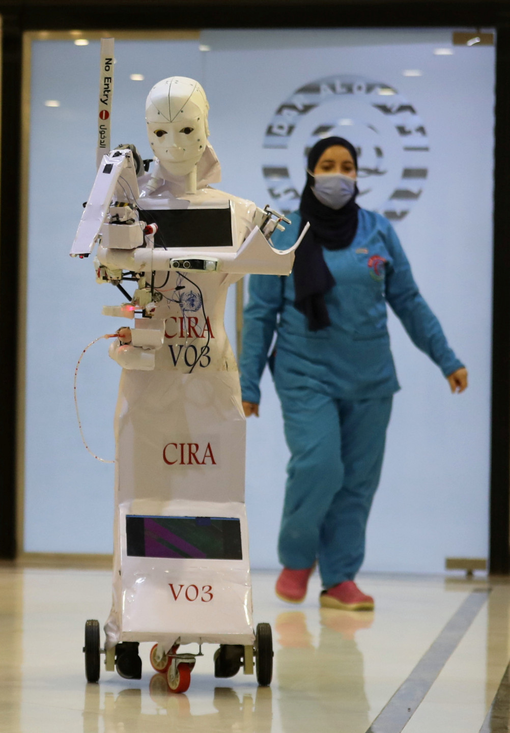 Ēģiptē robots Cira 3 palīdz noteikt Covid-19 inficētos. Šāds robots medicīnas personām palīdz veikt Covid-19 testu. Robots spēj noteikt sekundes laikā vai testētā persona ir Covid-19 pozitīva. Šāda metode inficēto personu noteikšānā tiek izmantota, lai pēc iespējas samazinātu medicīnas personāla kontaktu ar iespējamo inficēto personu. Pašlaik robota izmantošana testu veikšanā noris eksperimentālā izmēģinājumā.