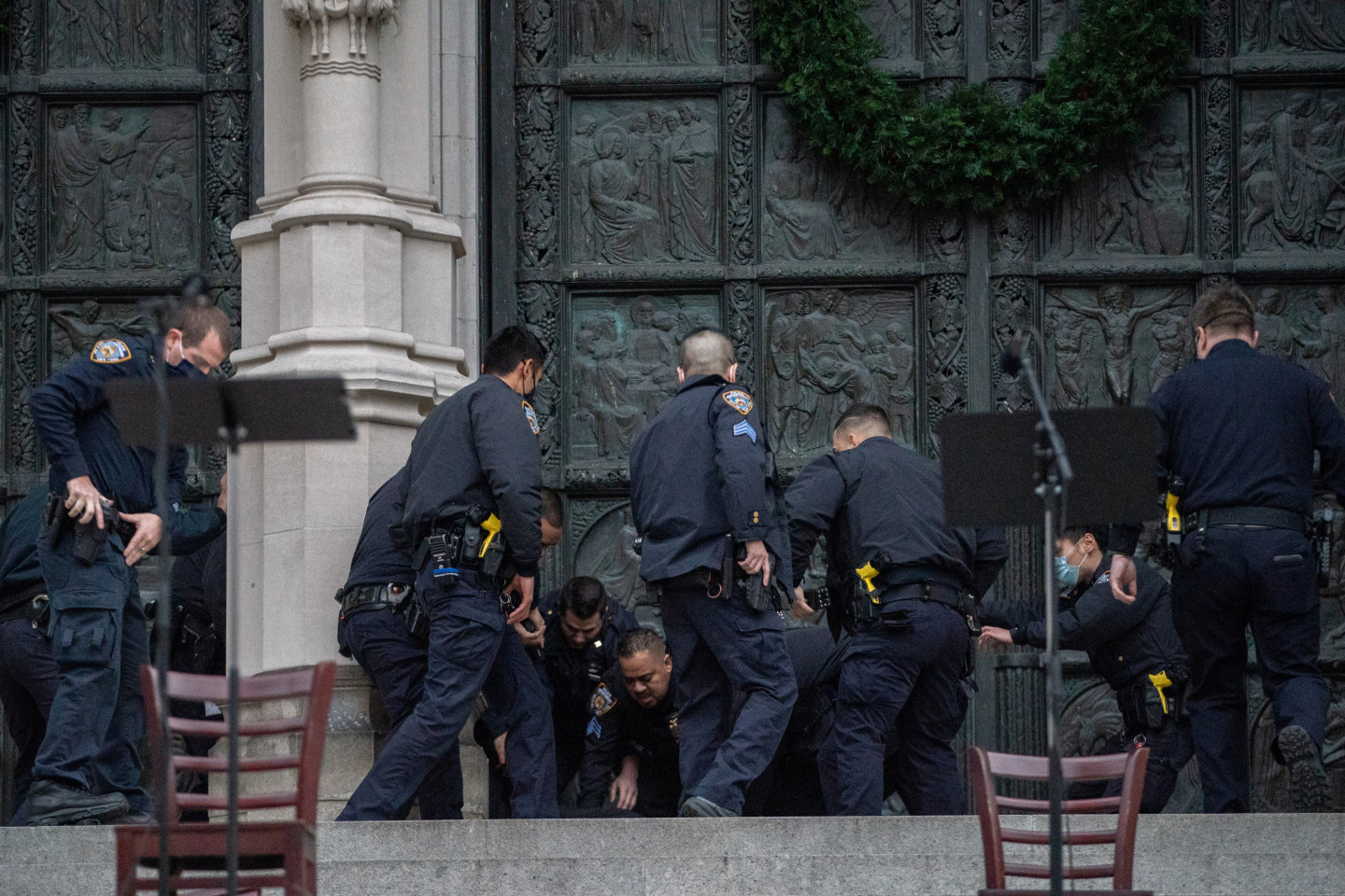 Ņujorkas policija svētdien sašāvusi vīrieti, kas līdzās Manhetenas episkopāļu katedrālei Ziemassvētku koncerta noslēgumā bija sācis šaut no divām pistolēm, pavēstīja likumsargi. Kā ziņo laikraksts "New York Post" un citi mediji, ievainotais šāvējs no gūtajiem ievainojumiem slimnīcā miris. Šaudīšanās pie Evaņģēlista Jāņa katedrāles notikusi pirms plkst.16, pavēstīja Ņujorkas policijas komisārs Dermots Šejs. Atskaitot pašu šāvēju, neviens cits incidentā nav cietis, norādīja komisārs. Nav skaidrs, vai šāvējs tēmējis uz cilvēkiem, vai šāvis gaisā.