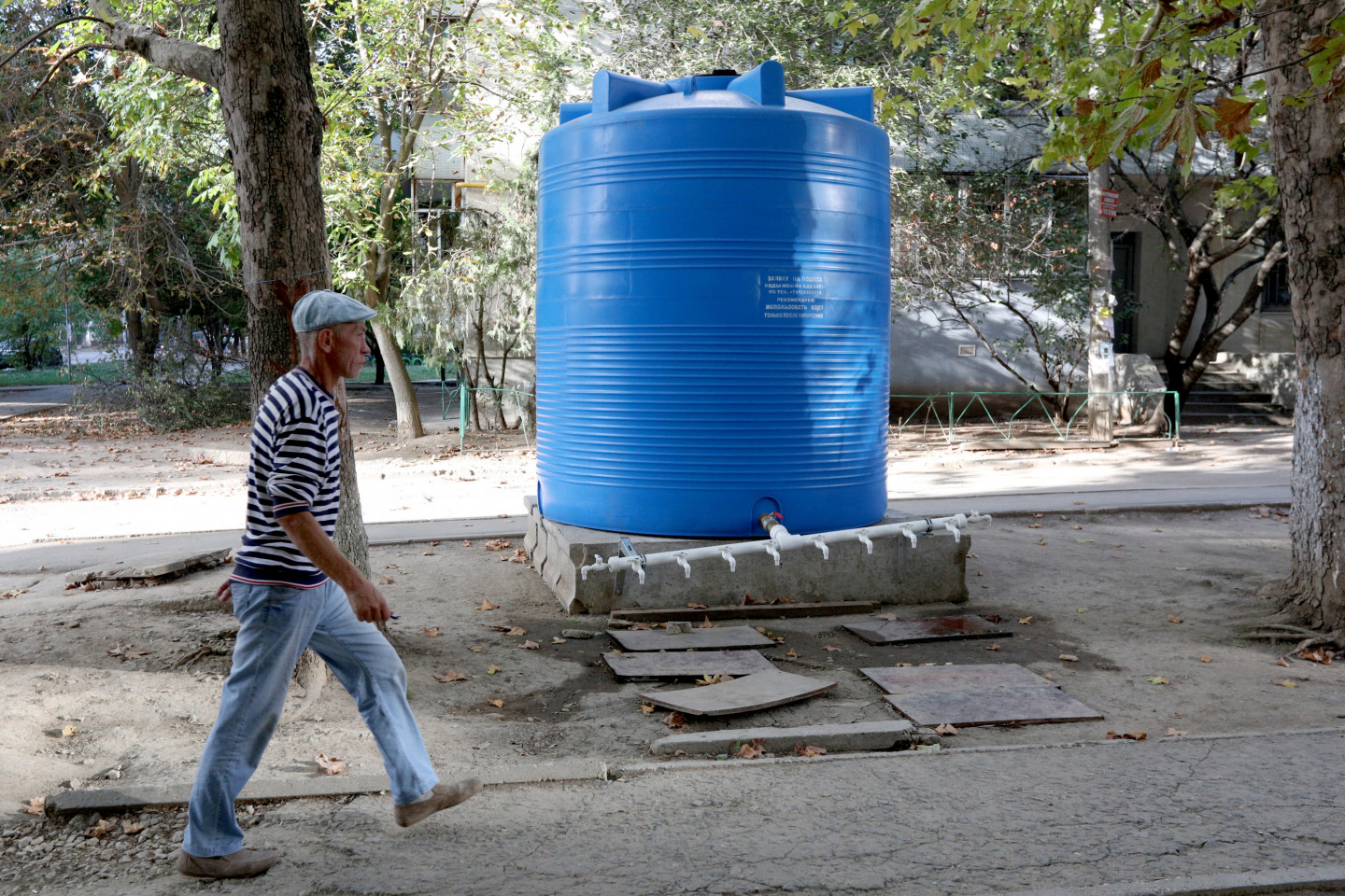 Jau kopš rudens Krimas pussalas pilsētās un ciematos ievērojami trūkst ūdens. Karstais ūdens iedzīvotājiem nav pieejams jau mēnešiem ilgi. Pilsētas ūdens vads dienā strādā tikai vien dažas stundas. Ūdens katastrofiski trūkst dažādās nozarēs un vietās - kafejnīcās, slimnīcās, poliklīnikās, skolās. Ūdens krīze pasliktinājās brīdi, kad pagājušajā nedēļā tika ieviesti striktāki ūdens taupīšanas ierobežojumi. Lai nodrošinātu iestādes, skolas, slimnīcas, uzņēmumus ar dzeramo ūdeni, pilsētā tiek izvietotas ūdens mucas.
