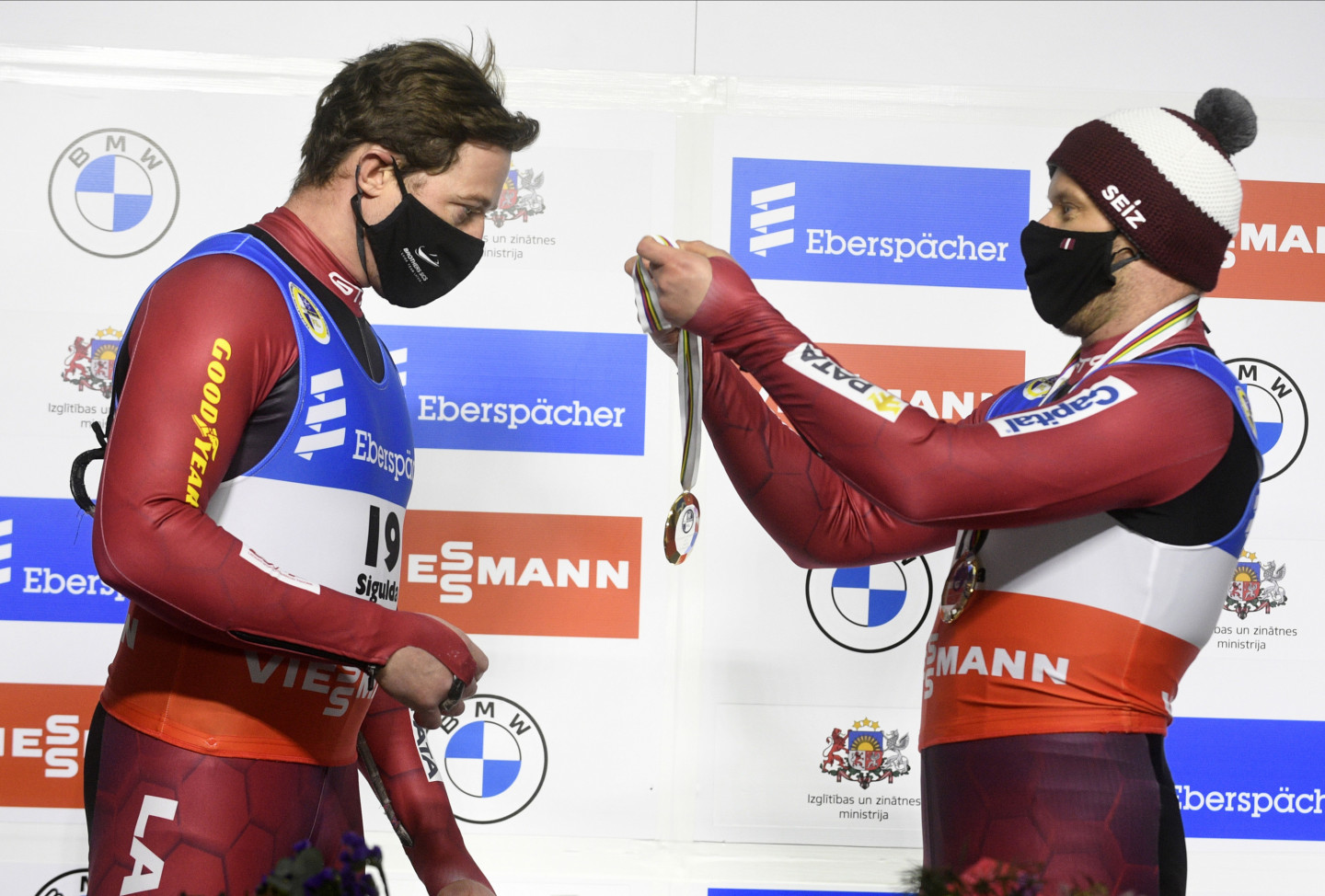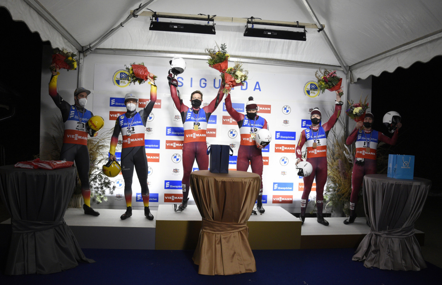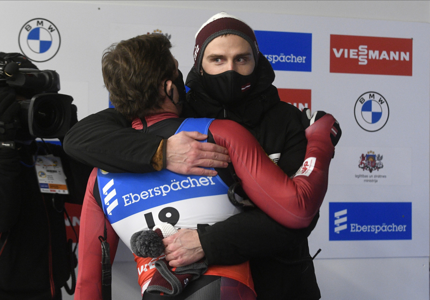 Latvijas kamaniņu braucēji Andris un Juris Šici sestdien divnieku sacensībās uzvarēja Pasaules kausa sestajā posmā Siguldā, kas vienlaicīgi bija arī Eiropas čempionāts. Brāļi Šici pirmoreiz kļuva par Eiropas čempioniem, finišējot pēc minūtes un 23,61 sekundes. Viņi par 0,029 sekundēm apsteidza vācu duetu Tobiass Vendls/Tobiass Arlts un par 0,1 sekundi - vēl vienu Latvijas duetu Mārtiņš Bots/Roberts Plūme. Sesto vietu 0,35 sekundes aiz uzvarētājiem ieguva Oskars Gudramovičs/Pēteris Kalniņš.