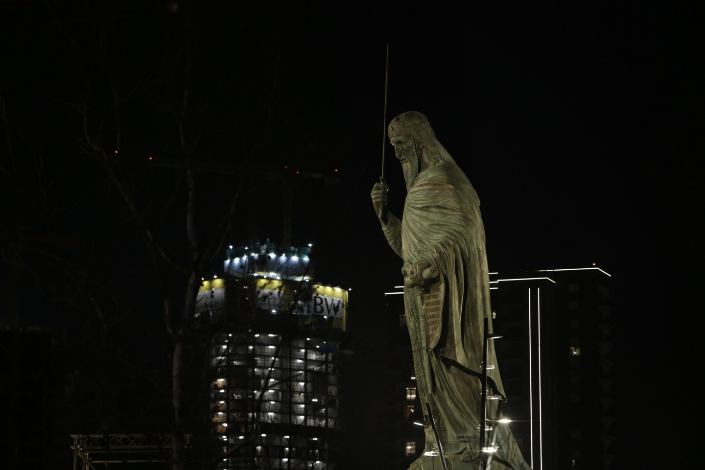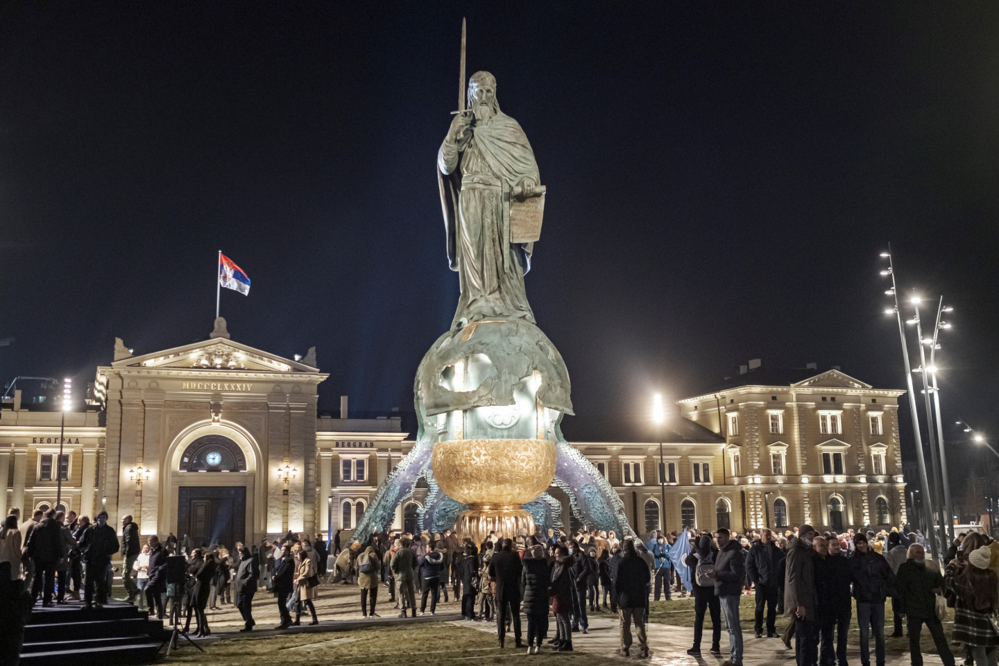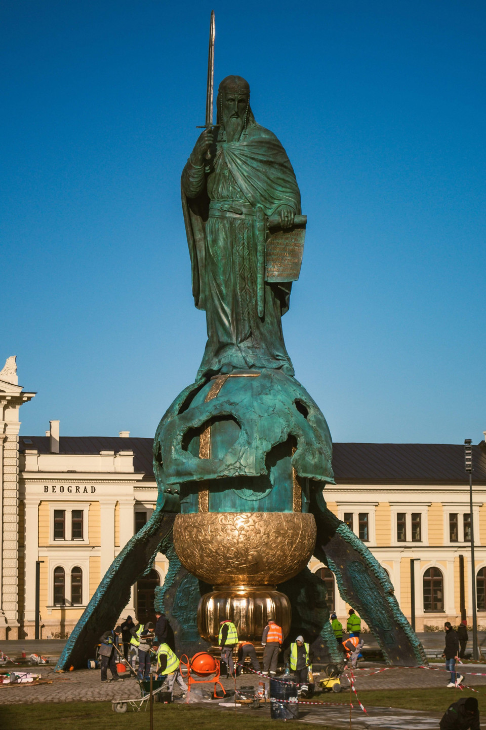 Serbijas galvaspilsētā trešdien atklātais viduslaiku prinča milzīgais piemineklis sabiedrībā izsaucis pretrunīgus vērtējumus, pieminekļa cienītājiem cildinot tā daiļumu, bet kritiķiem to peļot kā kiču, kas sabojā pilsētas laukumu. 12.gadsimta princis Stefans Nemaņa tiek godināts kā serbu valsts izveidotājs, un viņa 23 metrus augstais piemineklis tagad uzstādīts Belgradas krastmalas rajonā. Serbijas prezidents Aleksandrs Vučičs pieminekli cildināja, sakot, ka tas esot skaistākais, ko viņš jebkad redzējis. "Šis piemineklis ir liels, jo mūsu stāsts ir liels. Tas ir smags, jo mūsu vēsture bieži tāda ir bijusi," atklāšanas ceremonijā, kurā piedalījās vairāki simti cilvēku, sacīja prezidents. Daudzie kritiķi tomēr ir citās domās, vēsturniekiem, māksliniekiem un arhitektiem norādot, ka piemineklis ir tik bezgaumīgs, ka tas banalizē vēsturi, ko tam būtu jāreprezentē. Kāds pazīstams arhitekts pieminekli nodēvējis par "urbāno terorismu". "Tas ir kroplīgs, tas ir kičs un sabojā skaisto stacijas ēku," laikrakstam "Danas" sacīja vēsturniece Dubravka Stojanoviča, izsakoties par netālo 19.gadsimta beigu staciju, kas līdzās milzīgajam piemineklim šķietami sarāvusies maza. Piemineklī princis attēlots ar nopietnu sejas izteiksmi un zobenu rokās, stāvot uz milzīgas bizantiešu bruņucepures, kas veido pusi no pieminekļa augstuma. Sociālajos medijos piemineklis jau izpelnījies zobgalības, dažiem norādot, ka princis izskatās pēc "Gredzenu pavēlnieka" Sarumana, kas stāv uz šokolādes olas. Pieminekļa izmaksas tiek turētas noslēpumā. Pilsētas amatpersonas izmaksām noteikušas slepenības statusu līdz 2023.gadam. Belgradas vicemērs Gorans Vesi paudis aizstāvības vārdus piemineklim. "Par Eifeļa torni un Brīvības statuju arī bija dažādi viedokļi. Labs mākslas darbs vienmēr izsauc dažādus viedokļus un kritiku, un neviens nepamana sliktos," atgādināja amatpersona.