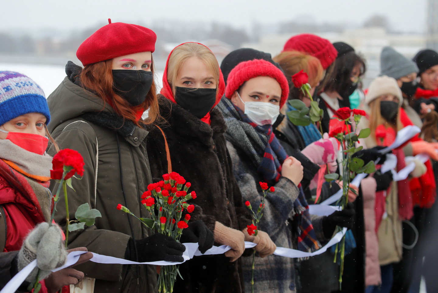Krievijas divās lielākajās pilsētās Maskavā un Sanktpēterburgā svētdien vairāki simti sieviešu izveidoja dzīvās ķēdes, lai Valentīna dienā protestētu pret varasiestāžu represijām pret politiskajiem oponentiem. Akcijas dalībnieces sacīja, ka šādi vēlas paust atbalstu Navaļnija sievai Jūlijai, kura devusies uz Vāciju, kā arī visām sievietēm, kas cietušas represijās. Tikmēr Krievijas austrumu reģionos cilvēki astoņos vakarā izgājuši ārā un iedeguši mobilo tālruņu lukturīšus un sveces. Šādas akcijas notikušas Habarovskā, Irkutskā, Komsomoļskā pie Amūras, Petropavlovskā-Kamčatskā, Ulaudē, Vladivostokā un citur.