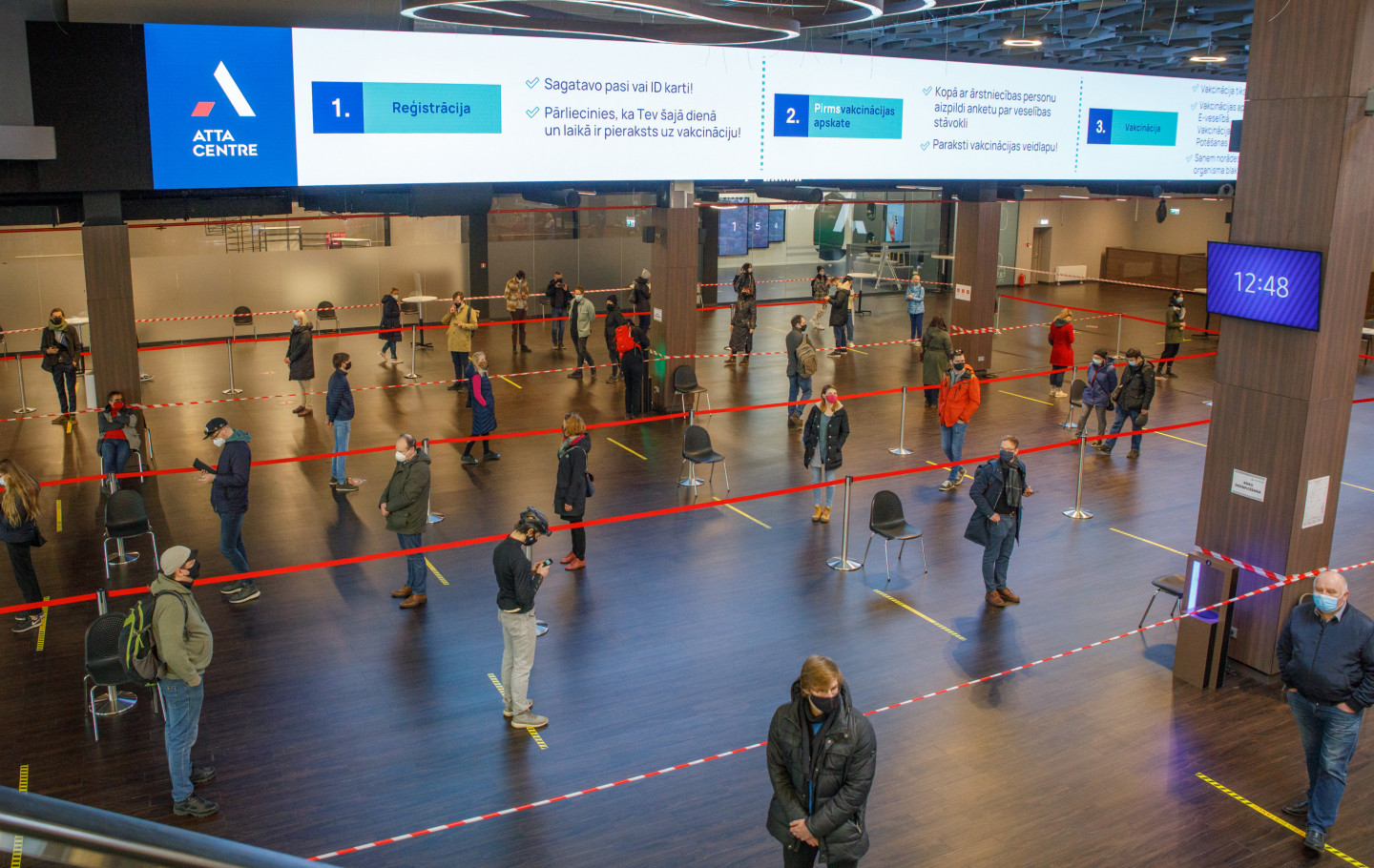 Salīdzinot ar pagājušo sestdienu, kad "dzīvās rindas" izmēģinājums tika attiecināts tikai uz prioritārajās grupās esošajiem iedzīvotājiem, šodien "ATTA" centrā iedzīvotāju aktivitāte ir ievērojami lielāka un kopumā vakcinēts vismaz trīs reizes vairāk cilvēku. "ATTA" centrā ir izvakcinētas visas pieejamās vakcīnu devas.