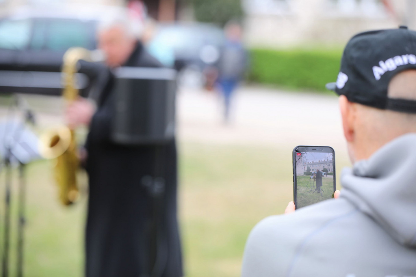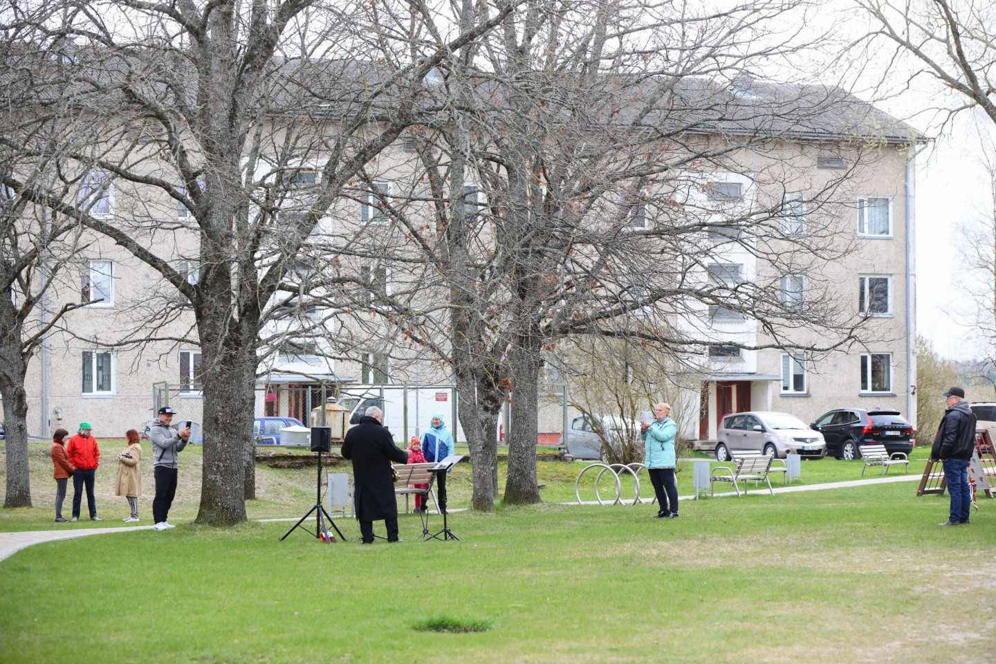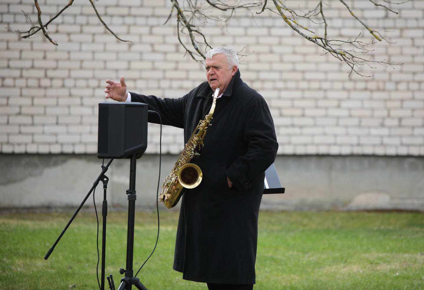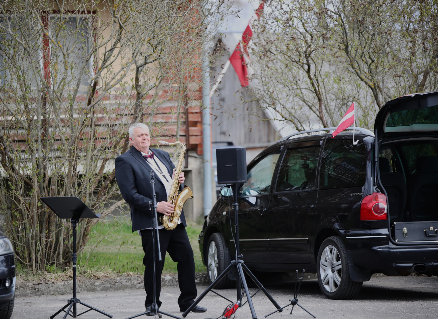 Saksofonista Aigara Lasmaņa muzikālais sveiciens Ventspils rajona Piltenes pagalmos 4. maija svētkos.