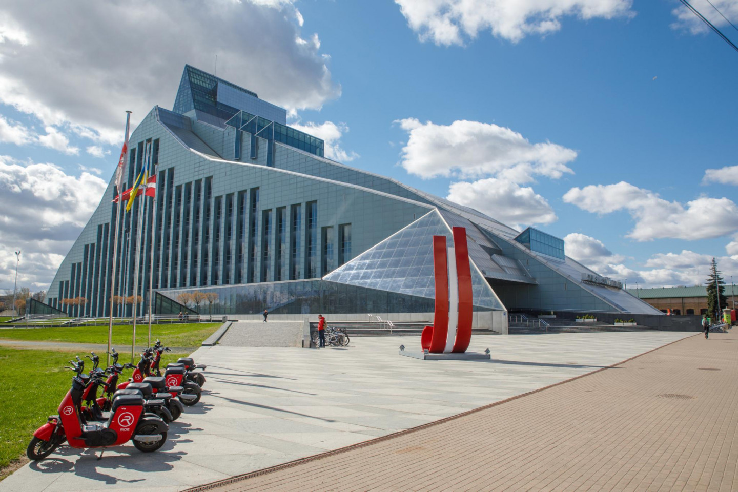 Vides mākslas objekts "Liesma" pie Latvijas Nacionālās bibliotēkas.