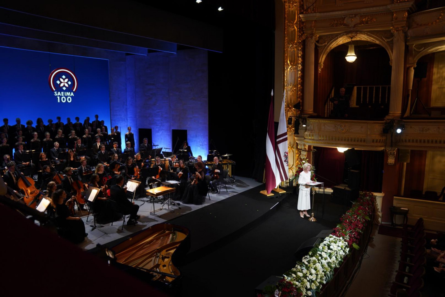 Pasākumā uzstājās kamerorķestris "Sinfonietta Rīga" diriģenta Normunda Šnē vadībā, solisti - Reinis Tomiņš, Līga Griķe, Aigars Raumanis, Daniils Bulajevs, Taīse Ticiana Geitus Eitvina, Andrejs Zitmanis, kā arī Rīgas Doma kora skolas jauktais koris diriģenta Jurģa Cābuļa vadībā. Programmā izskanēs Latvijas autoru darbi - gan klasiskā, gan laikmetīgā mūzika. Koncertu apmeklēja Saeimas Prezidija locekļi un deputāti, Valsts prezidents Egils Levits un Ministru prezidents Krišjānis Kariņš (JV), bijušie valsts prezidenti un Augstākās padomes deputāti, kā arī Eiropas Parlamenta priekšsēdētāja un viceprezidents, Igaunijas, Lietuvas, Islandes un Melnkalnes parlamentu priekšsēdētāji, Ukrainas Augstākās Radas vicespīkere un citi viesi.