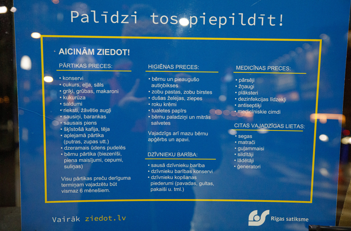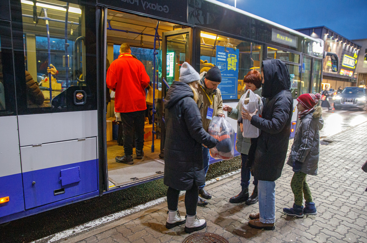 Nākamā gada sākumā uz Kijivu dosies vēl desmit "Mercedes-Benz" markas Rīgas domes ziedotie SIA "Rīgas satiksme" autobusi. Šos autobusus nepieciešams piepildīt ar palīdzību - precēm bērniem, higiēnas precēm, ilgi uzglabājamu pārtiku, dzeramo ūdeni, kā arī mājdzīvnieku barību. Kijivā ir problēmas ar ūdens apgādi, tāpēc būs noderīgas mitrās salvetes. Noderēs medicīnas preces - pārsēji, žņaugi, plāksteri, dezinfekcijas līdzekļi, antiseptiķi, medicīniskie cimdi, kā arī segas, matrači, guļammaisi, sildītāji, lādētāji, un, protams, ģeneratori. Šodien iedzīvotāji nesa uz autobusiem šīs un citas mantas, lai palīdzētu Ukrainai.