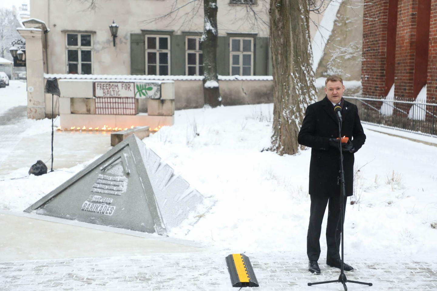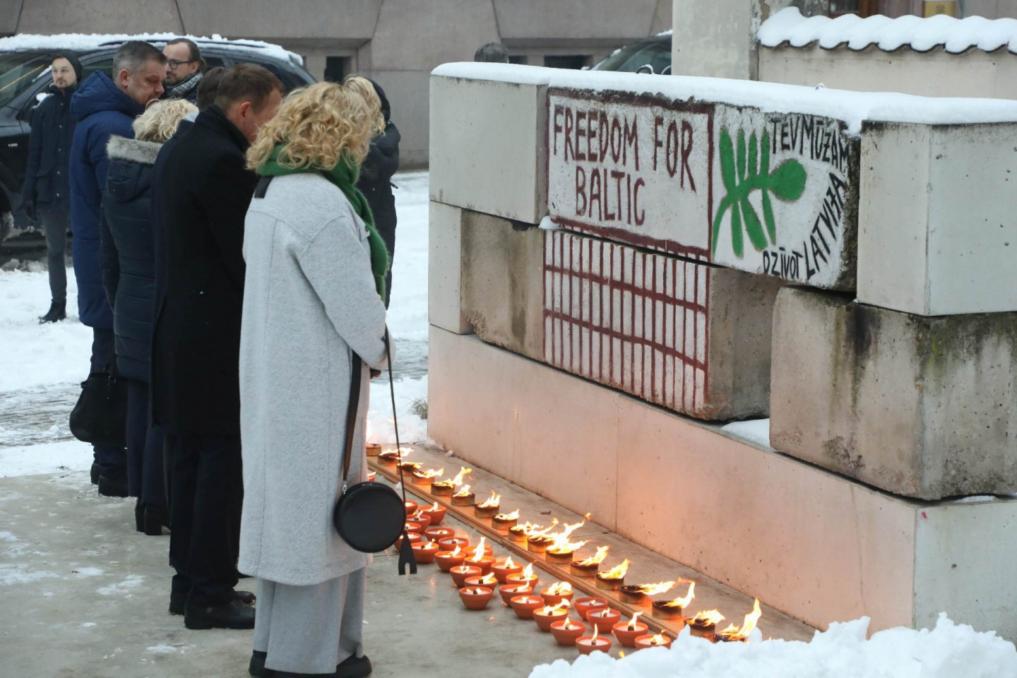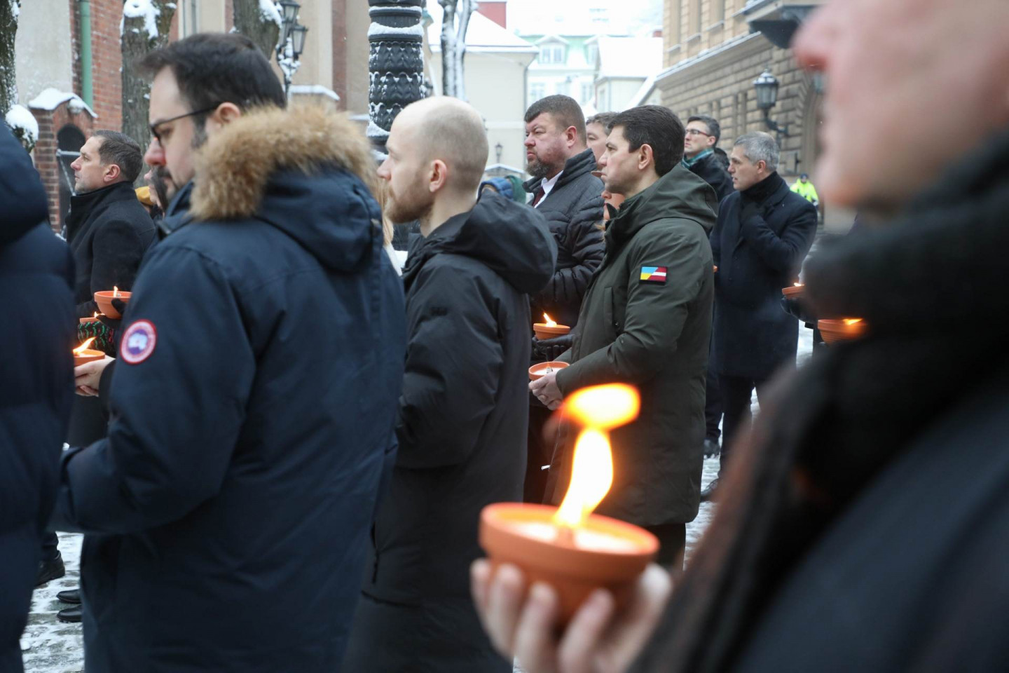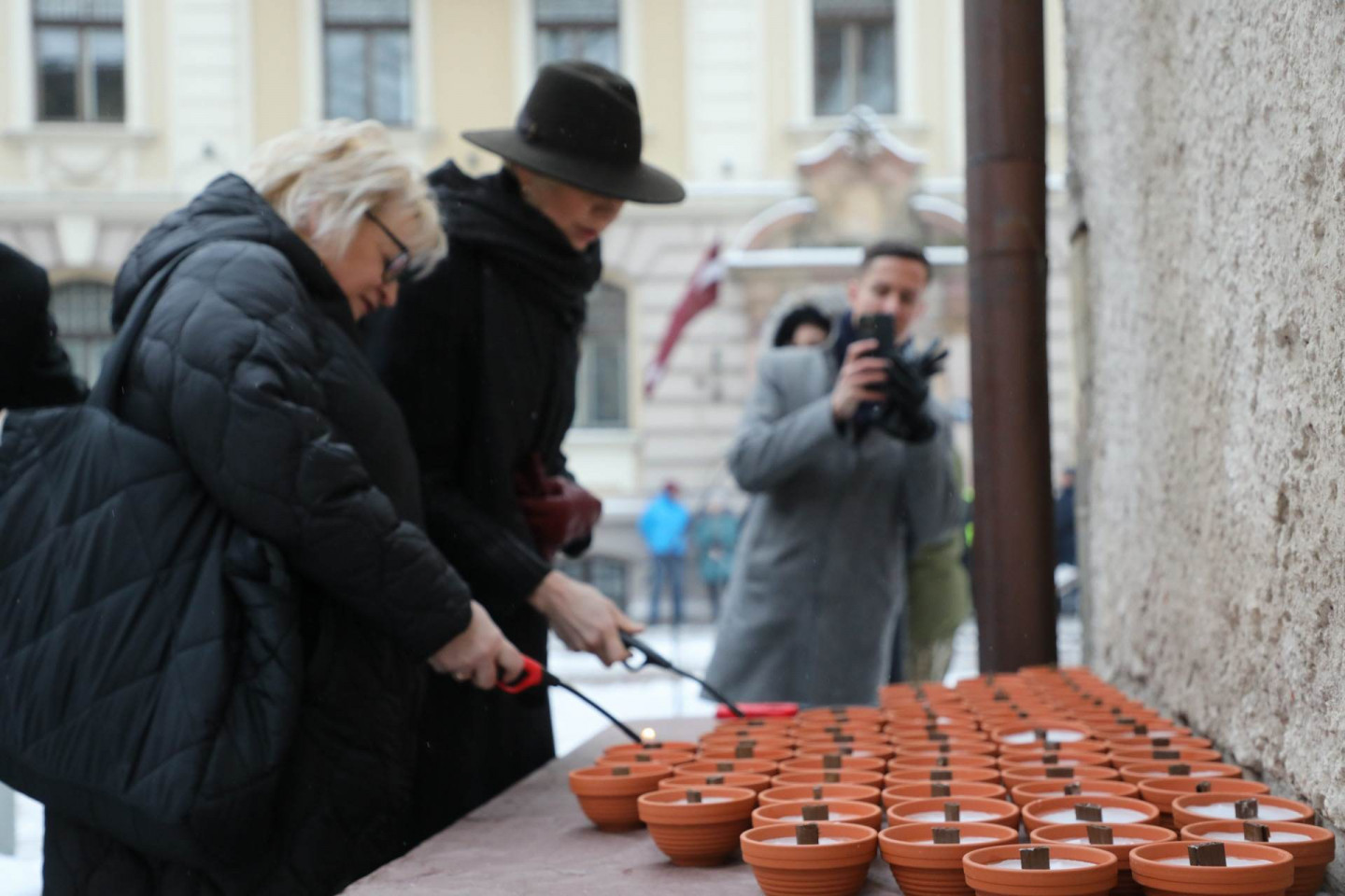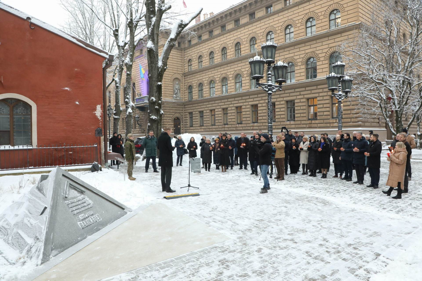 Pirms Saeimas ārkārtas sēdes plkst.8.15 Saeimas nama pagalmā notika Krievijas agresijas karā pret Ukrainu kritušo piemiņas brīdis. Godinot kritušo piemiņu, Saeimas Prezidija locekļi un deputāti pēc aizlūguma nolika svecītes pie pieminekļa "1991.gada barikāžu piemiņas zīme".