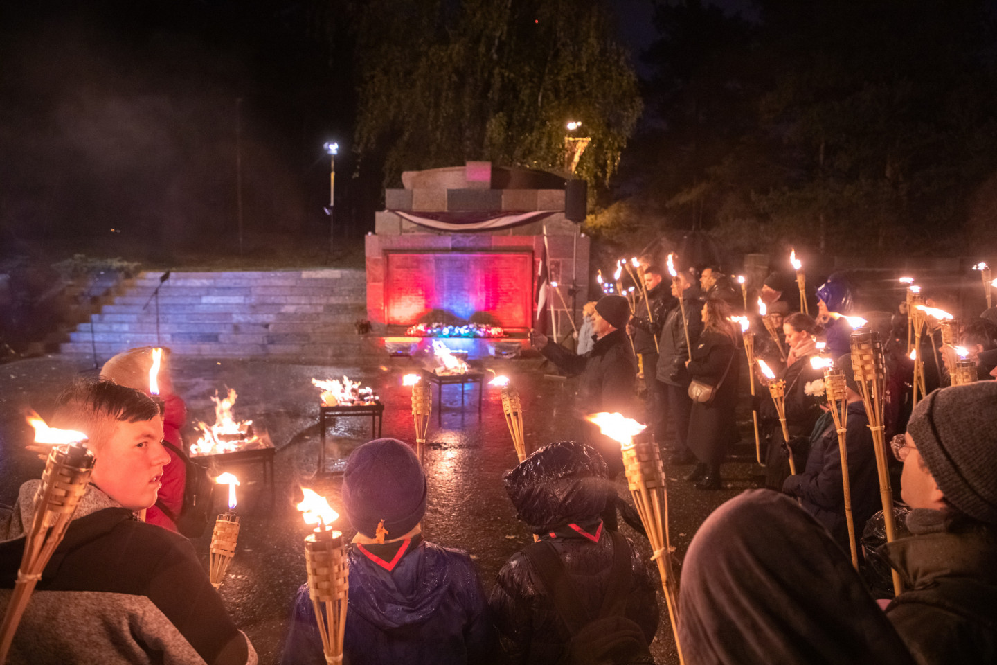 Patriotu mēneša ieskaņā šodien "Rīgas pieminekļu aģentūra" organizēja piemiņas pasākumu, lai godinātu 1919.gada brīvības cīnītājus un varoņus. Piemiņas pasākums sākās ar lāpu gājienu no Autotanku pulka pieminekļa līdz Sudrabkalniņam un noslēdzās ar svinīgu atceres brīdi, svecīšu un ziedu nolikšanu piemiņas vietā.