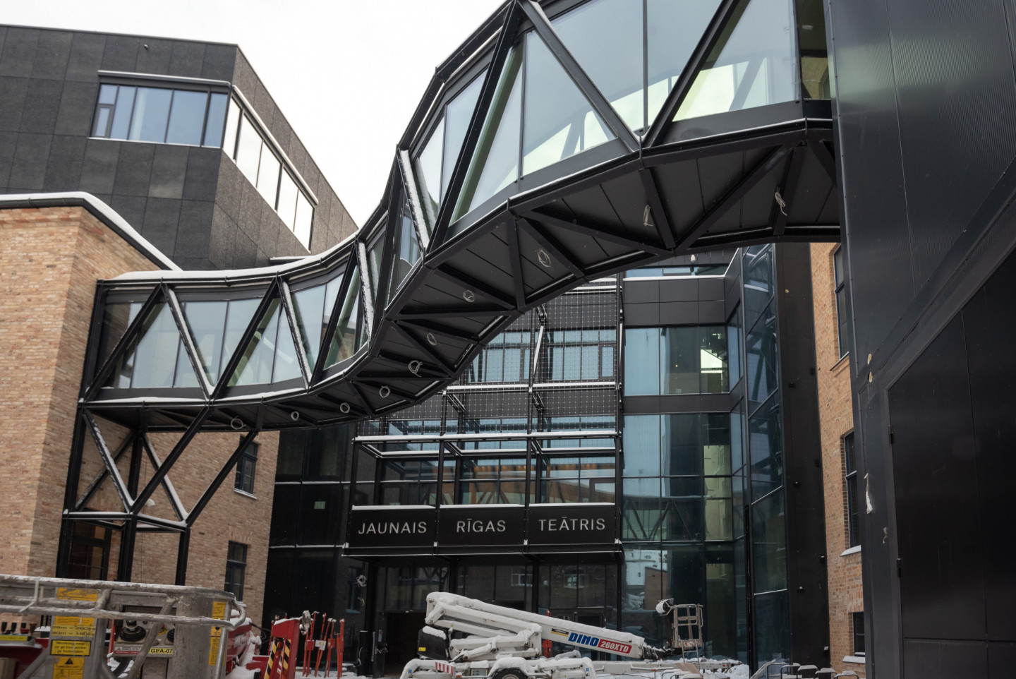 JRT kompleksā patlaban ir paveikti aptuveni 95% būvdarbu, tostarp uz ēkas fasādes un iekšpagalmā jau ir atgriezušies uzraksti "Jaunais Rīgas teātris".