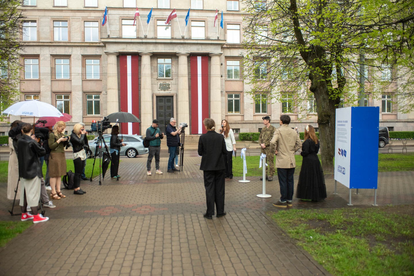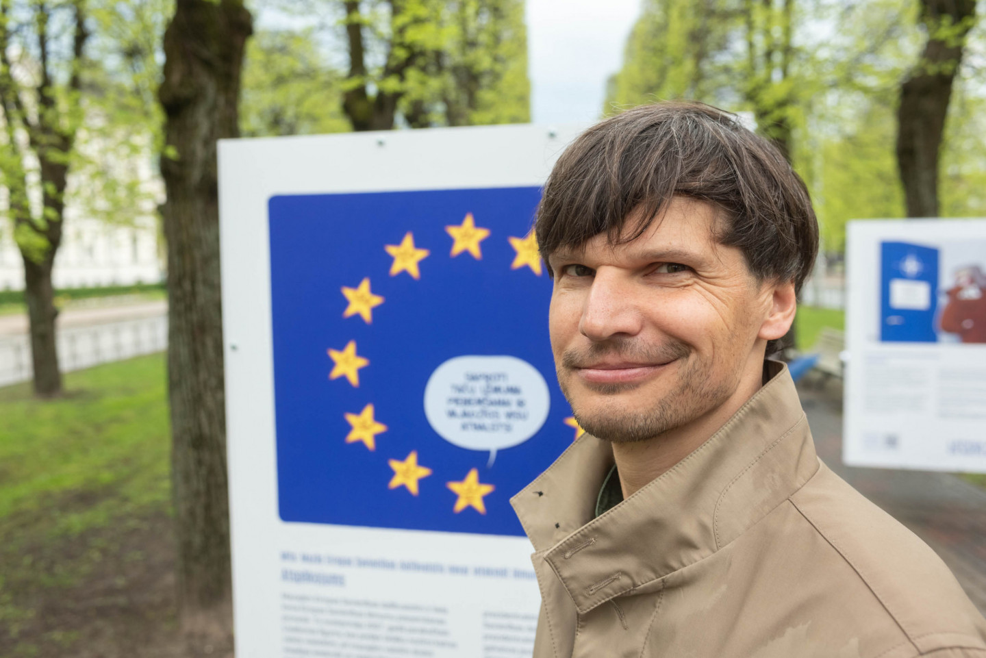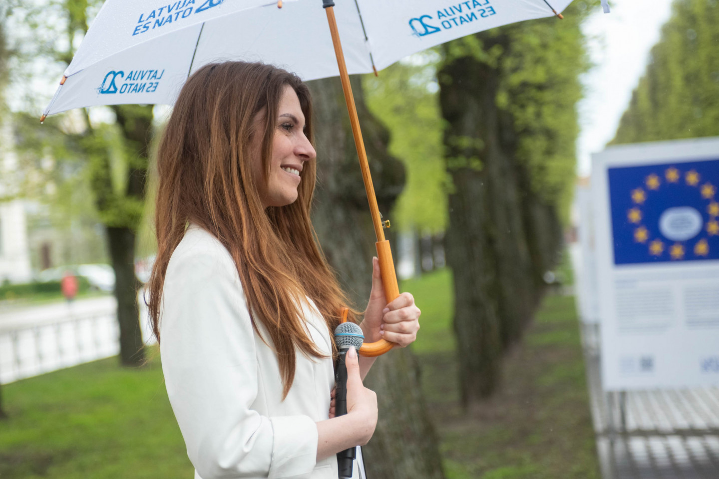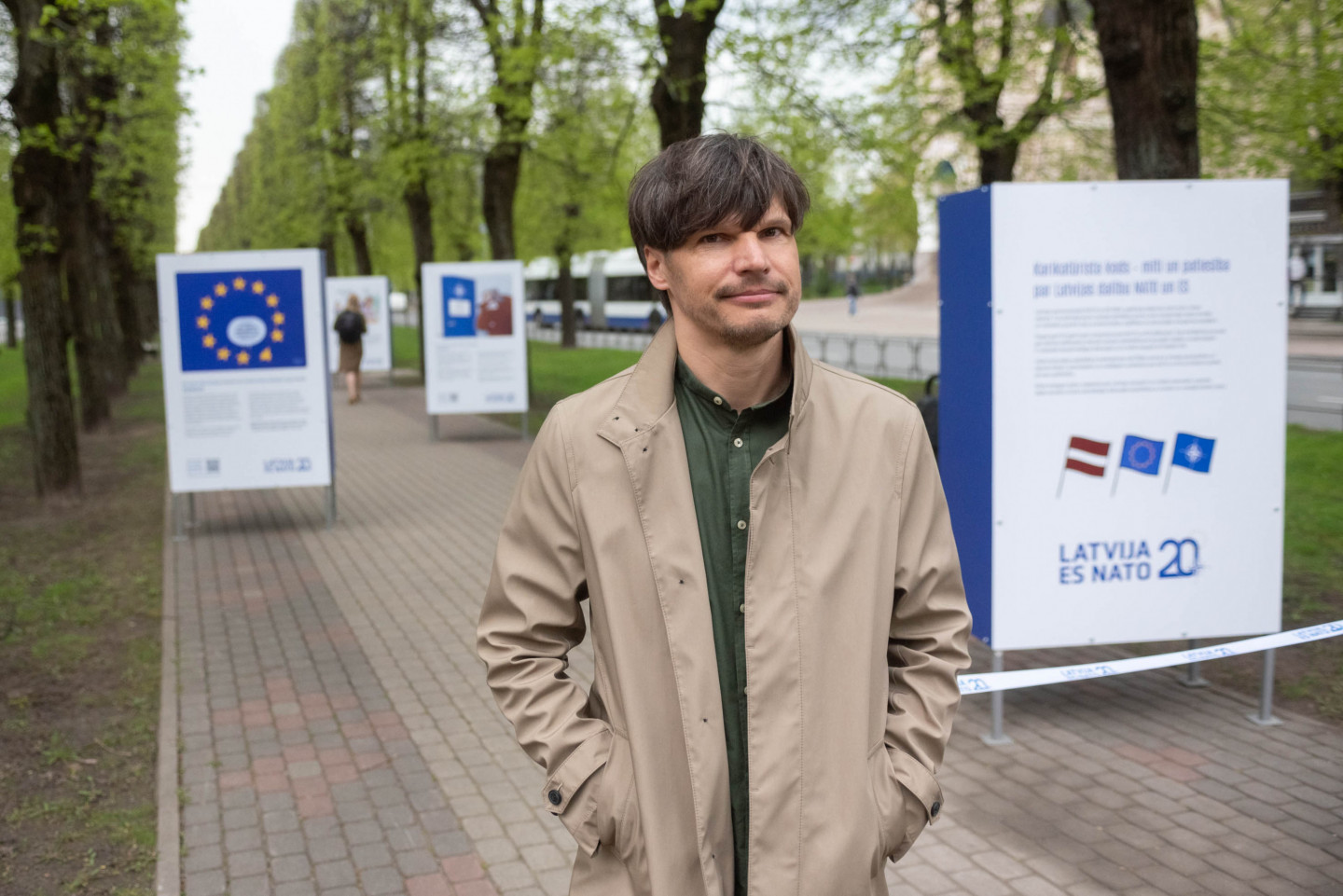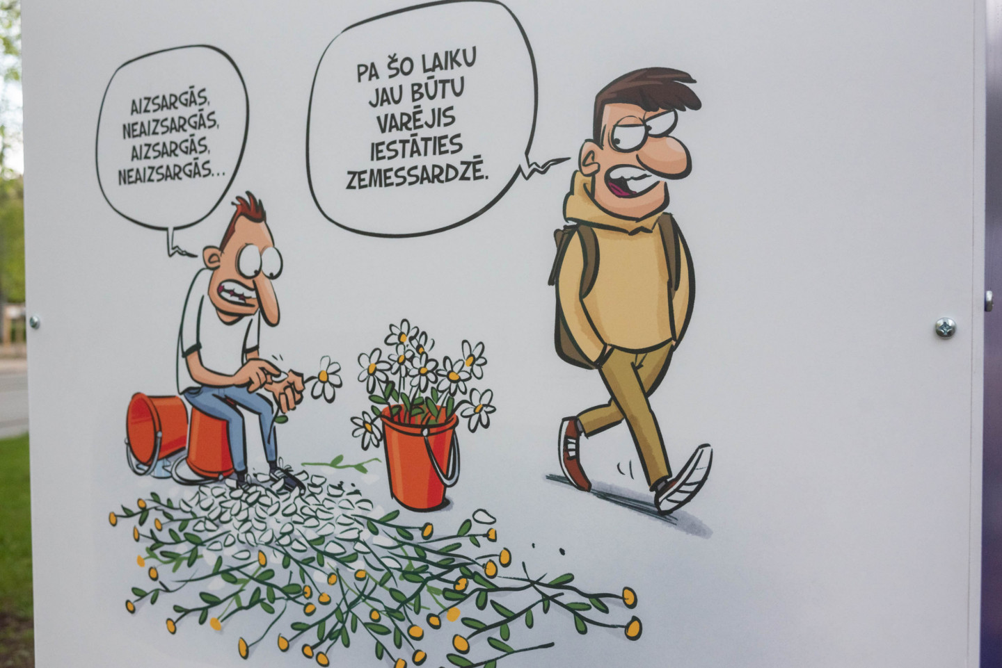 Brīvdabas izstāde "Karikatūrista kods - mīti un patiesība par Latvijas dalību ES un NATO" atklāta liepu alejā iepretīm Ministru kabineta ēkai.