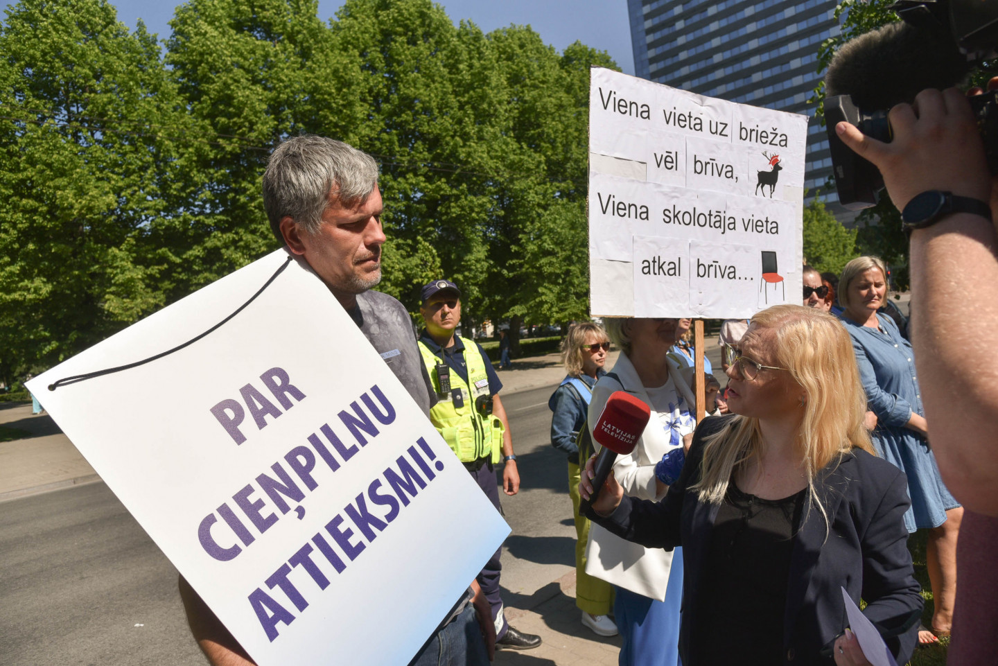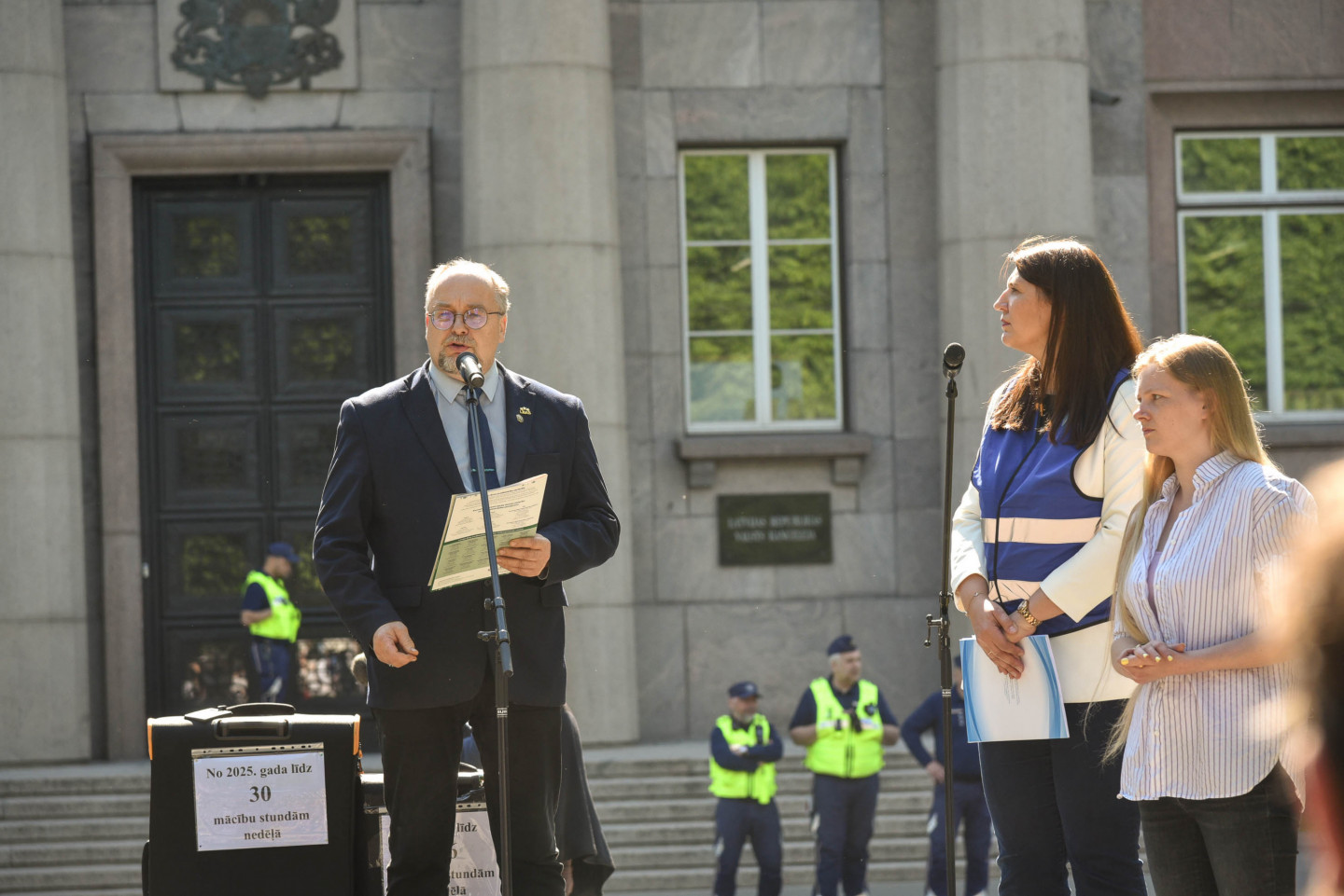 Pie valdības ēkas šodien plkst. 11 notika Latvijas Izglītības un zinātnes darbinieku arodbiedrības (LIZDA) rīkotais izglītības nozares darbinieku pikets, kurā arodbiedrība pauda iebildumus pret Izglītības un zinātnes ministrijas (IZM) piedāvājumu pedagogu darba slodžu balansēšanai. Pie piketētājiem iznāca gan Izglītības un zinātnes ministre Anda Čakša, gan premjere Evika Siliņa. Abas amatpersonas tika pavadītas ar svilpieniem.