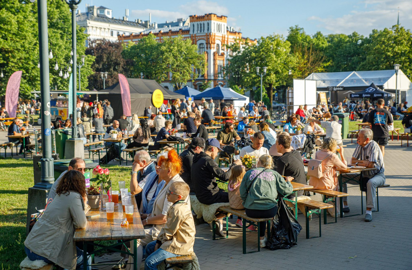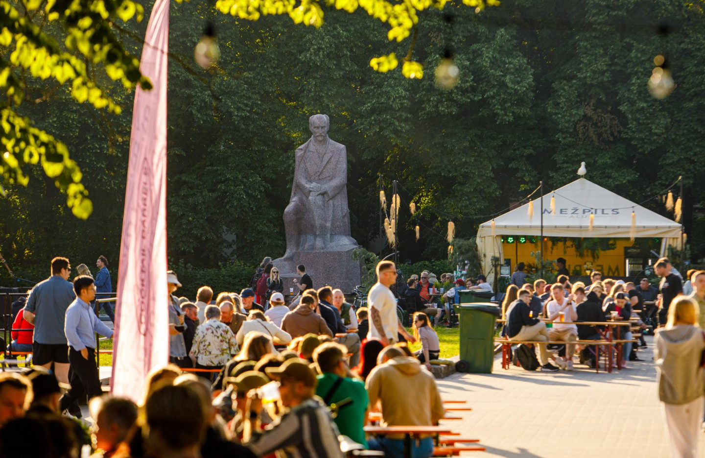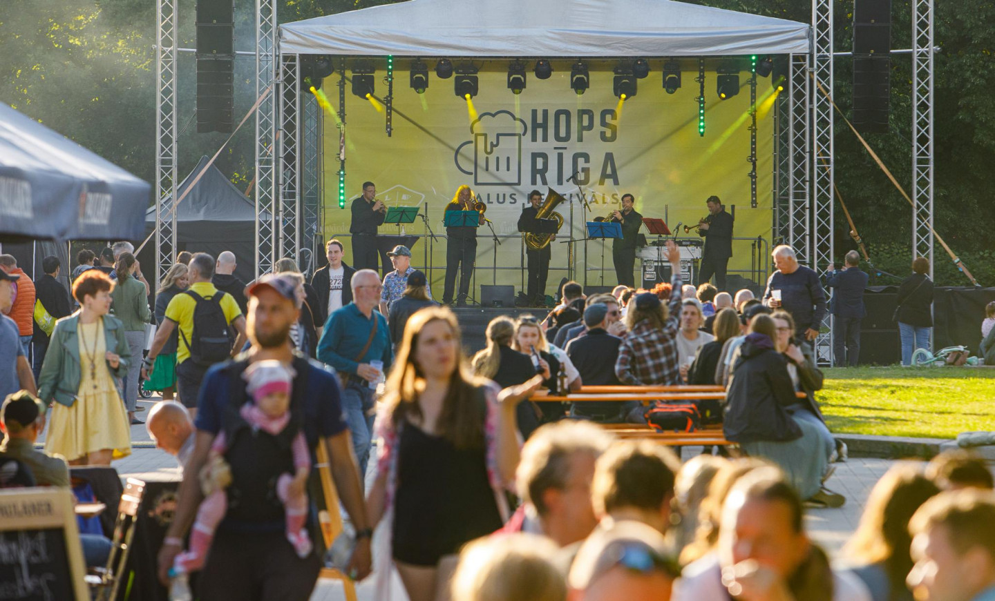 Esplanādes parkā notiek alus festivāls "Hops Rīga". Festivālā piedalās 20 Latvijas un ārvalstu alus ražotāji un darītāji.