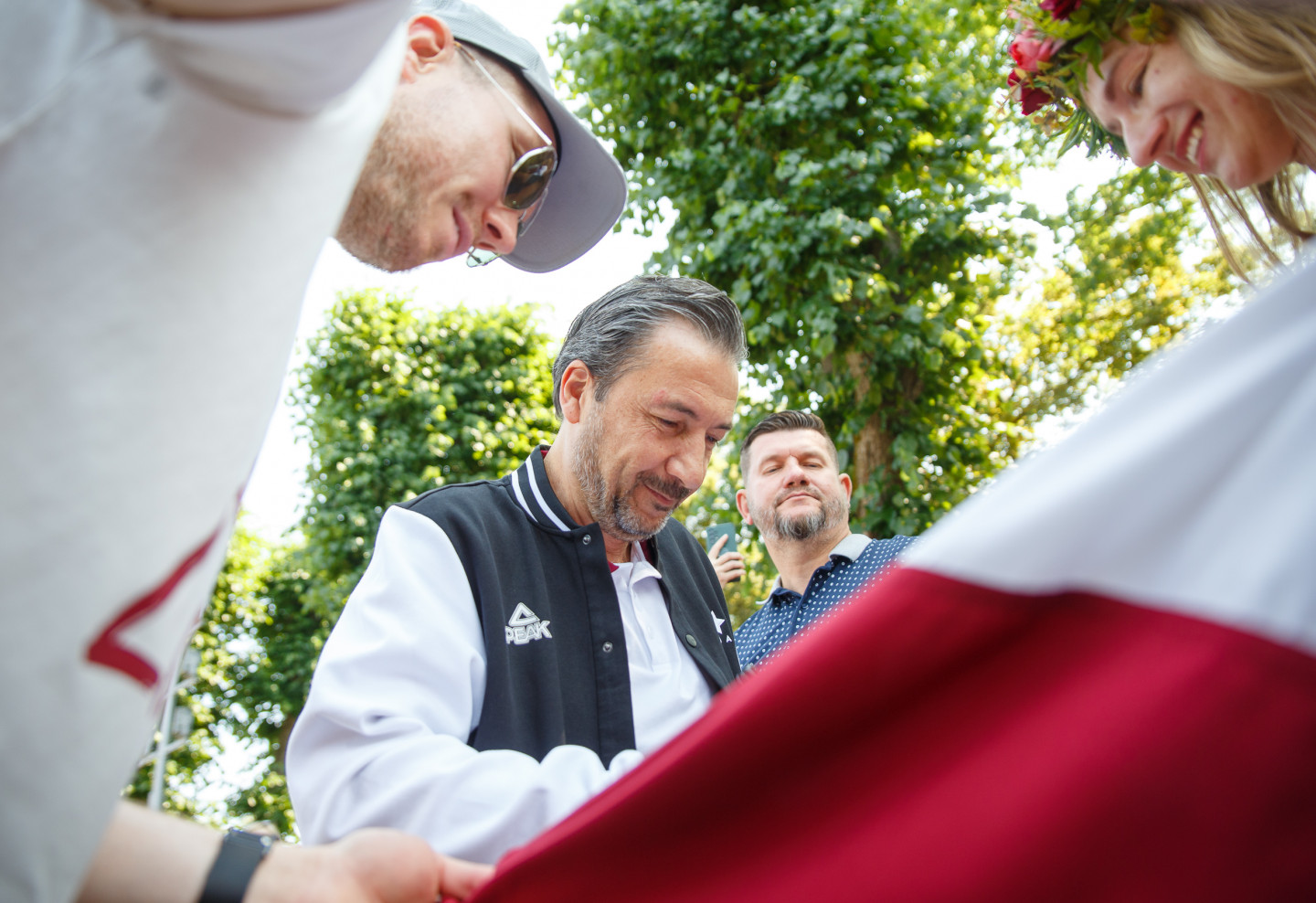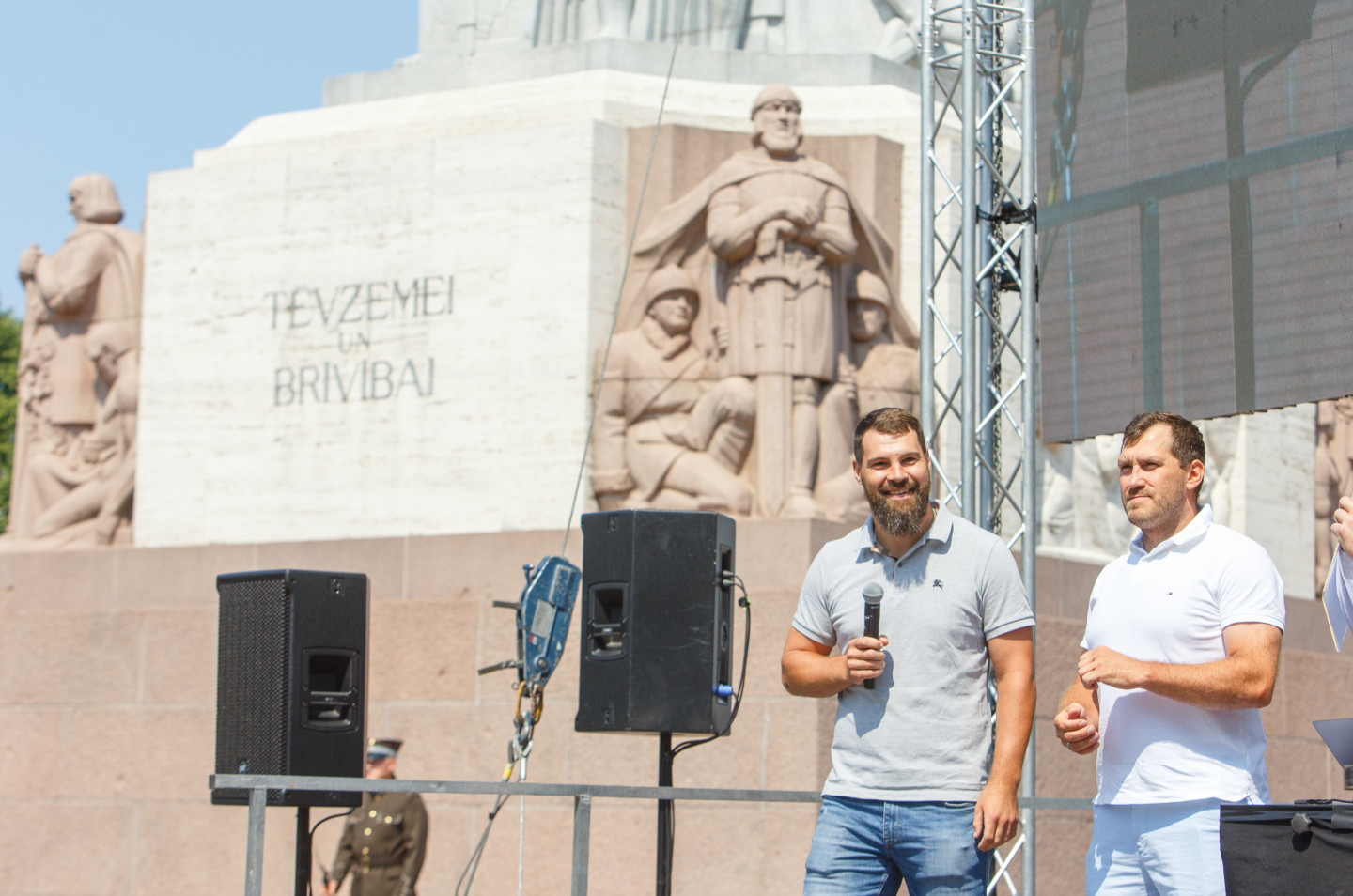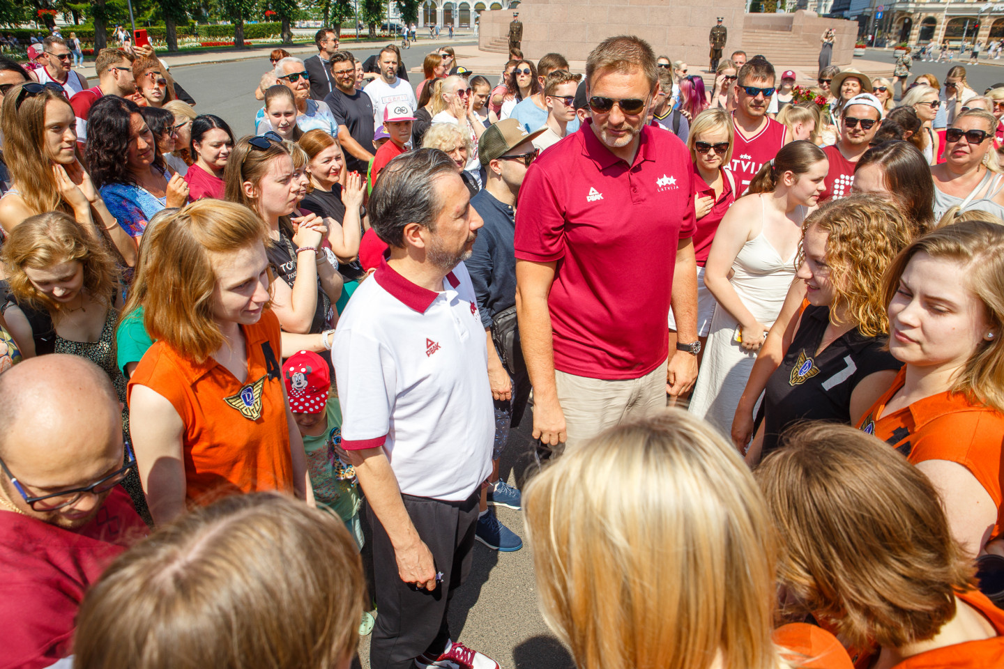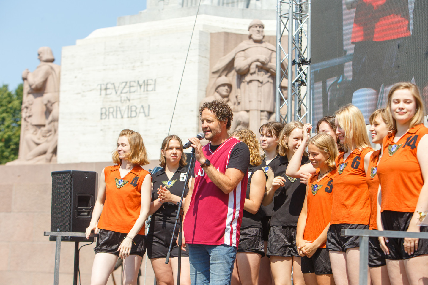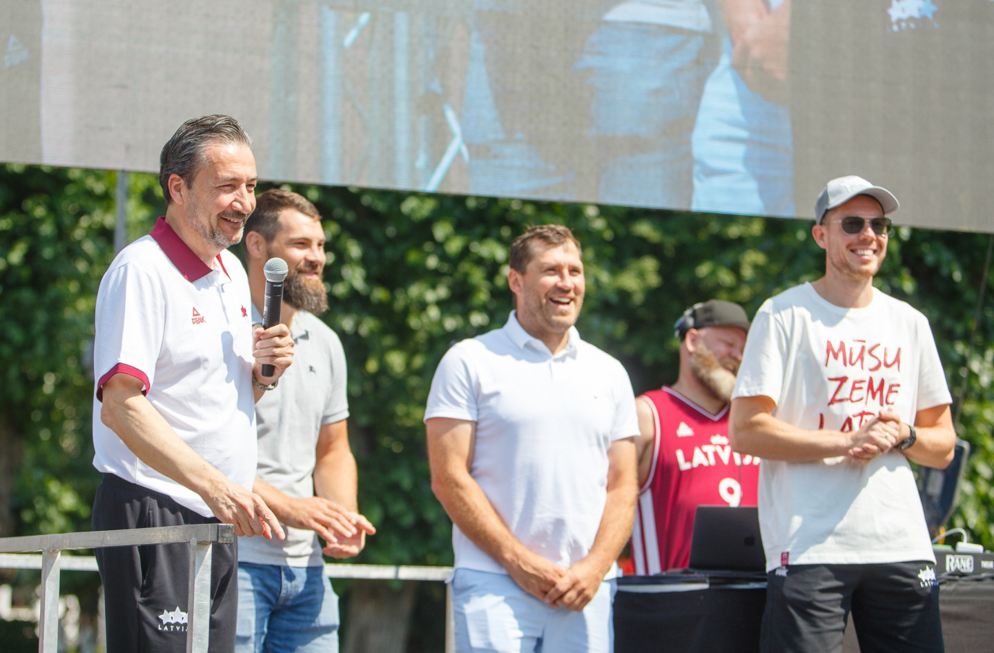 Zibakcijā piedalījās Latvijas basketbola izlases treneris Luka Banki, komandas kapteinis Dairs Bertāns, Latvijas hokeja izlases kapteinis Kaspars Daugaviņš, Latvijas Basketbola savienības (LBS) prezidents Raimonds Vējonis ar kundzi, kā arī citi sportisti un sporta entuziasti. Zibakcija noslēdzās ar saukli "Mūsu zeme - Latvija", lai sniegtu enerģijas lādiņu Latvijas basketbola valstsvienībai, kas 2.jūlijā sāks cīņu par dalību olimpiskajās spēlēs.