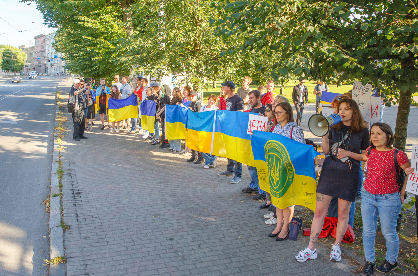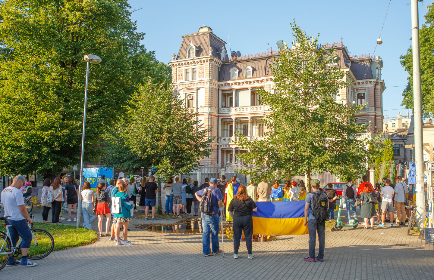 Rīgā pirmdienas vakarā norisinās protesta akcija pie Krievijas vēstniecības, lai nosodītu Krievijas raķešu triecienu bērnu slimnīcai "Ohmatdet" Kijivā.