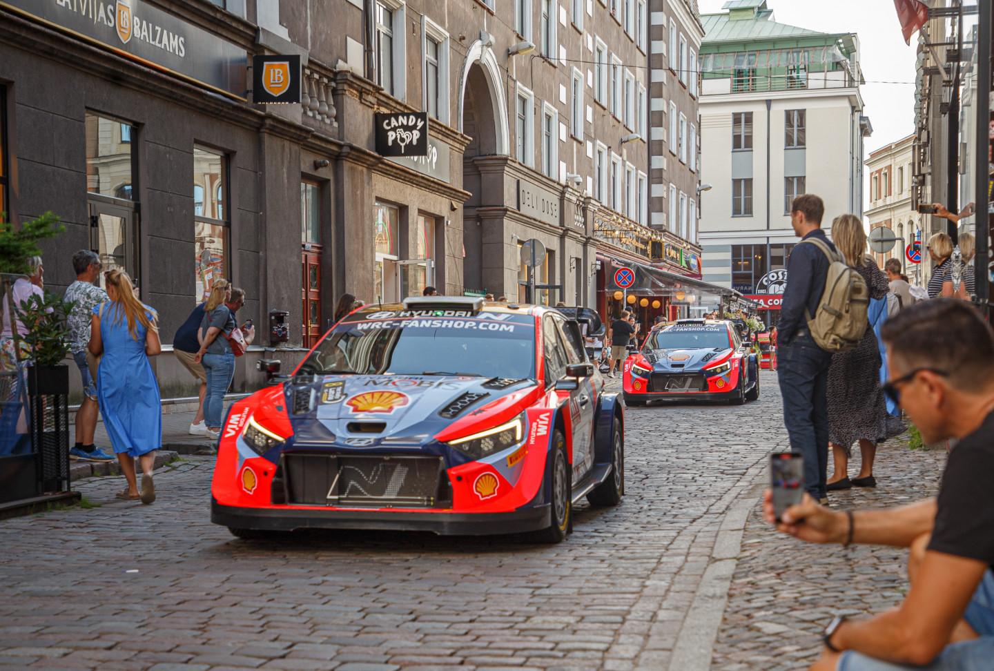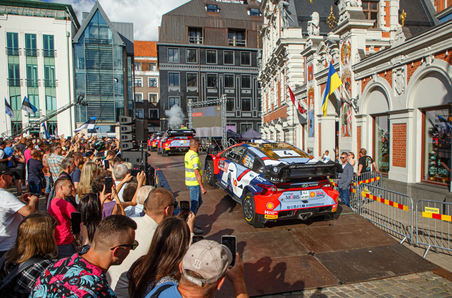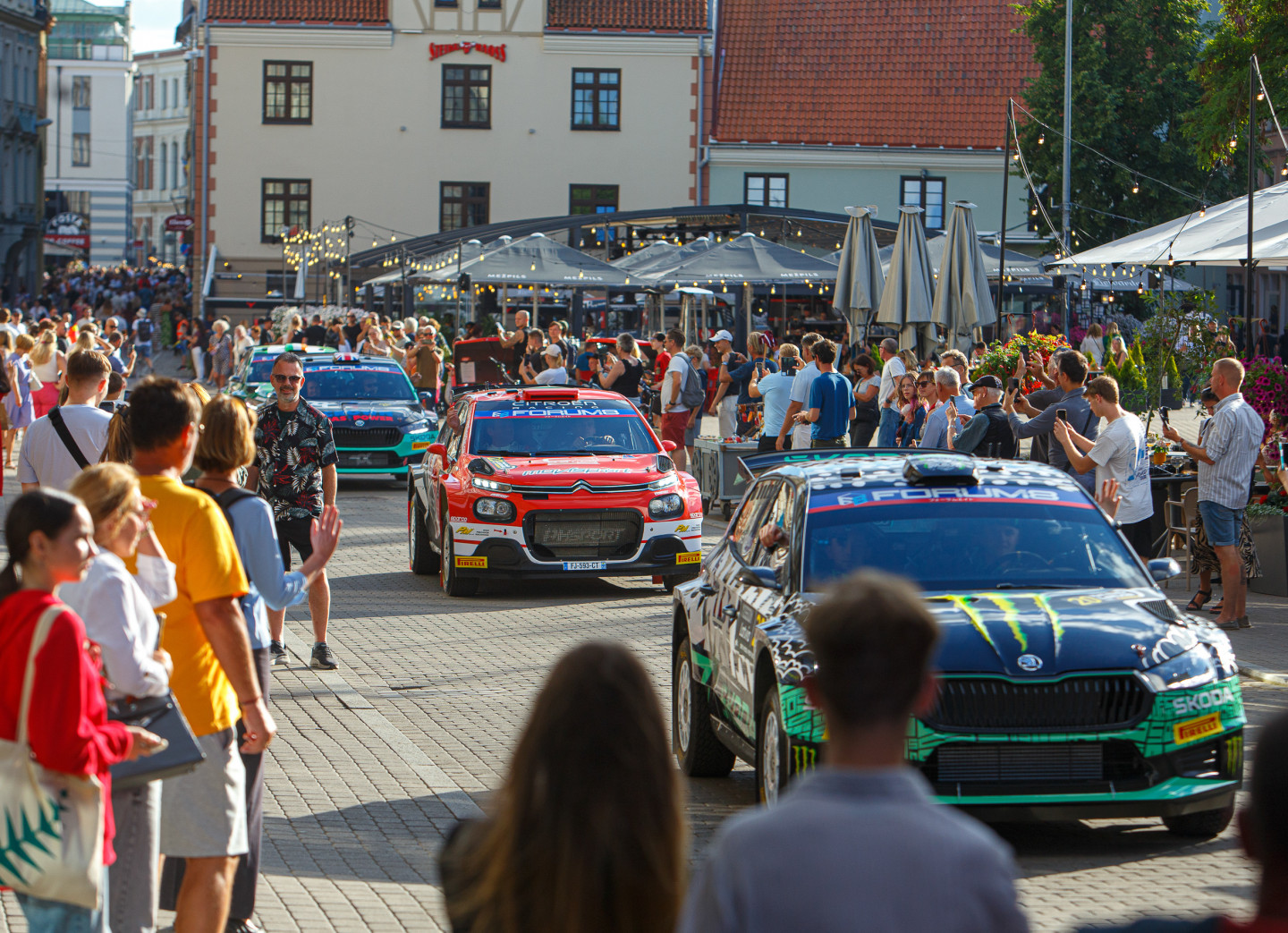 Rātslaukumā notiek FIA pasaules rallija čempionāta Latvijas posma "Tet Rally Latvia" atklāšanas ceremonija.