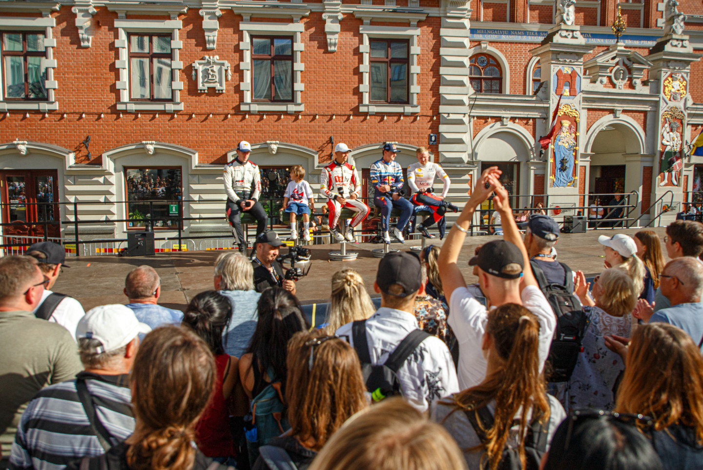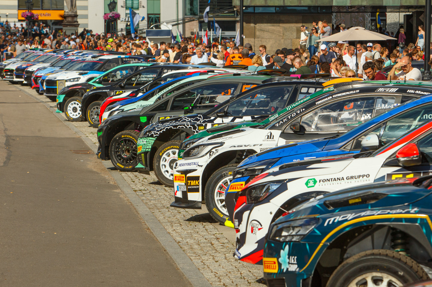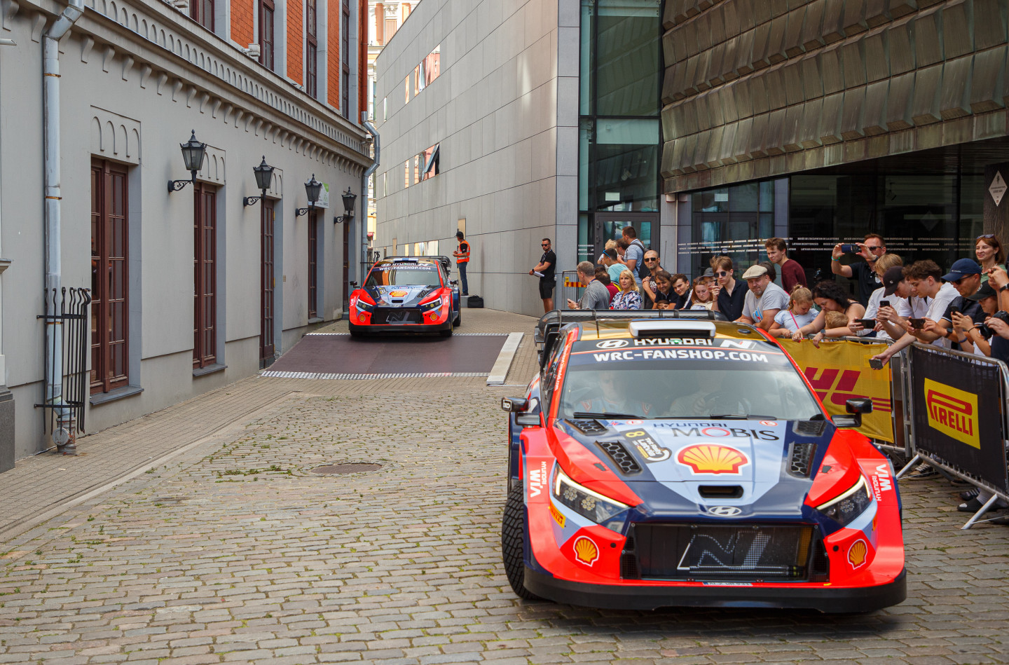 Rātslaukumā notiek FIA pasaules rallija čempionāta Latvijas posma "Tet Rally Latvia" atklāšanas ceremonija.