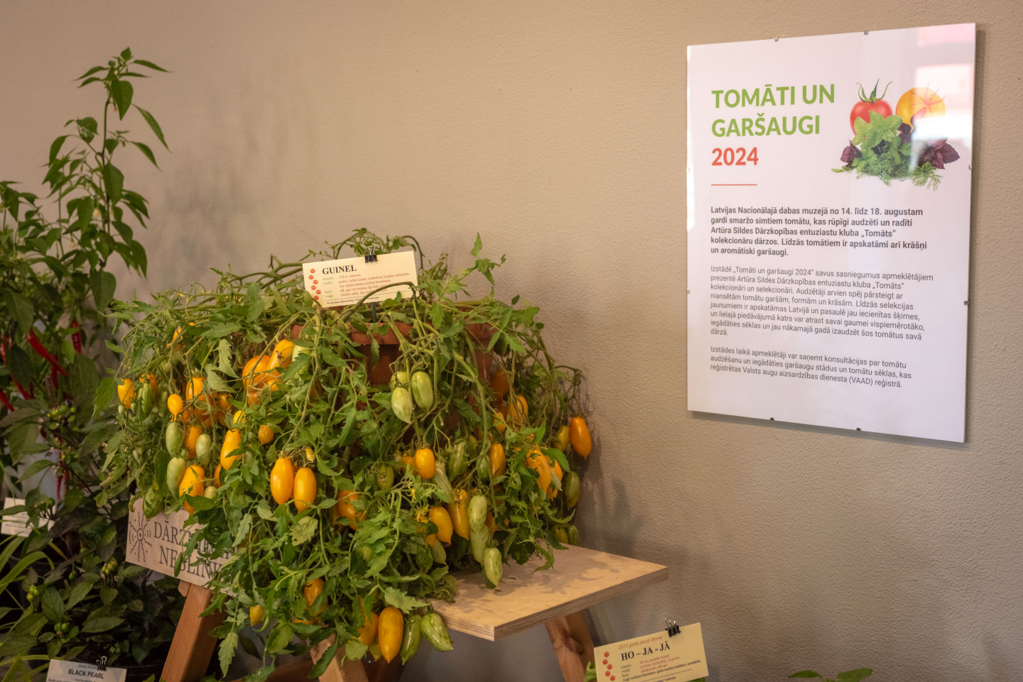 Latvijas Nacionālā dabas muzeja lielajā izstāžu zālē no trešdienas piecas dienas ir skatāma tomātu un garšaugu izstāde, aģentūru LETA informēja muzeja sabiedrisko attiecību speciāliste Kristīna Soloha. Izstādē "Tomāti un garšaugi 2024" savus sasniegumus apmeklētājiem prezentēs Artūra Sildes dārzkopības entuziastu kluba "Tomāts" kolekcionāri un selekcionāri, kuri cenšas pārsteigt ar niansētām tomātu garšām, formām un krāsām.
