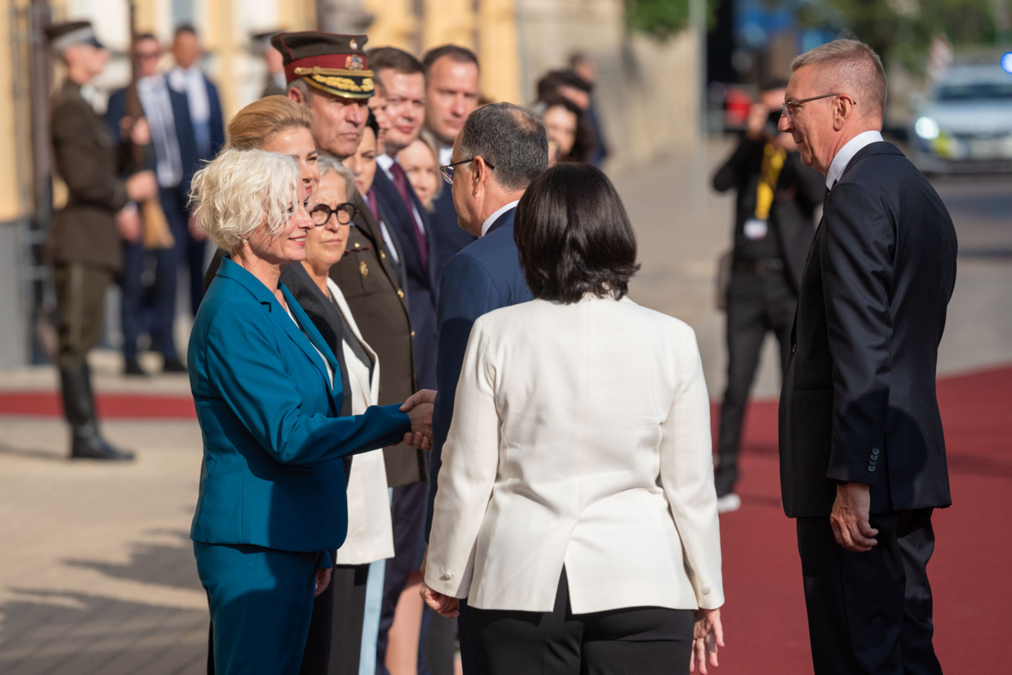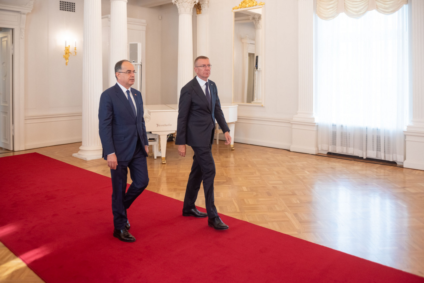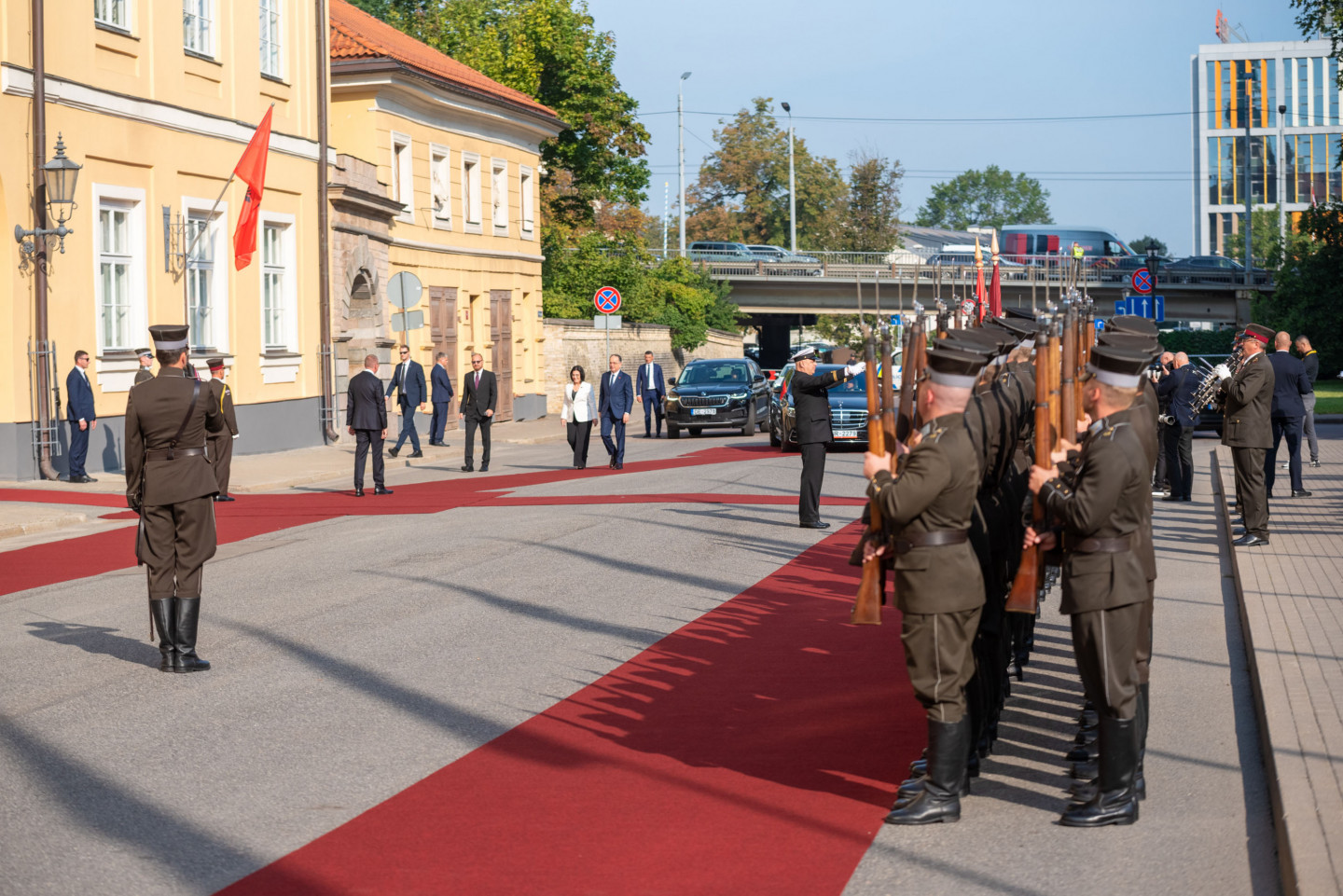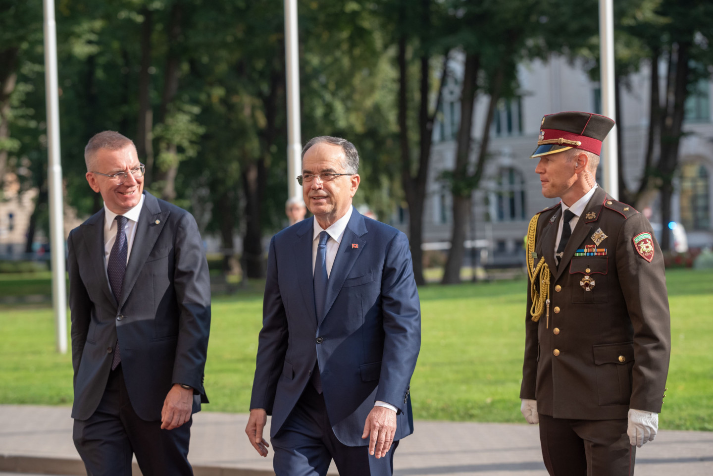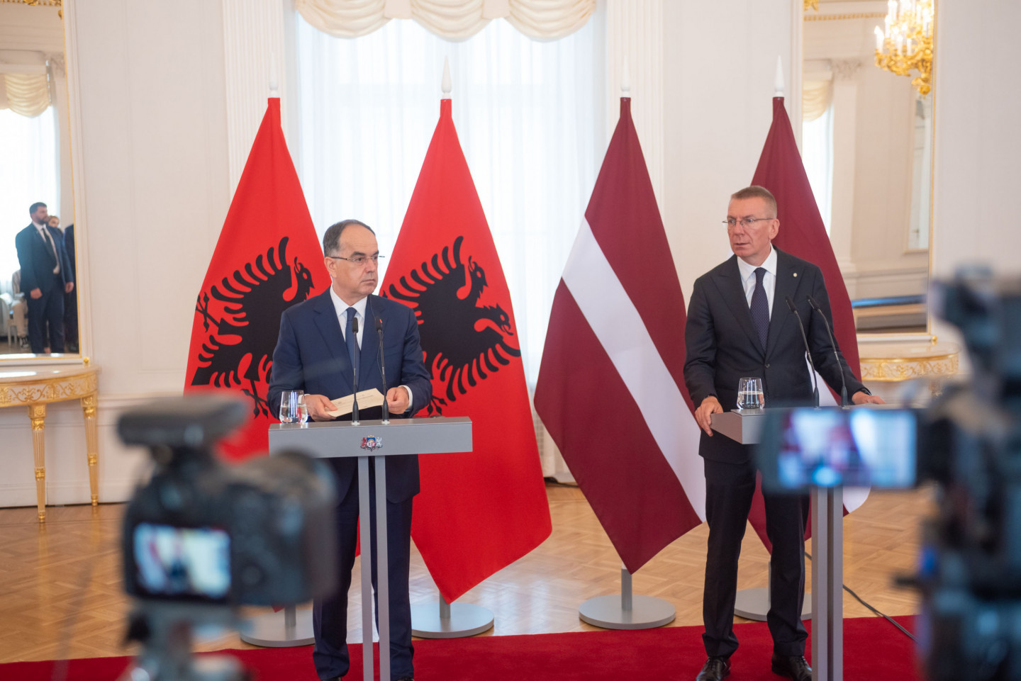 Valsts prezidents Edgars Rinkēvičs sagaida Albānijas prezidentu Bajramu Begaju.