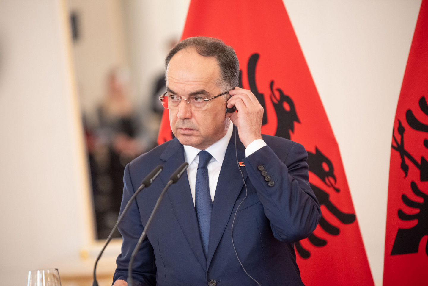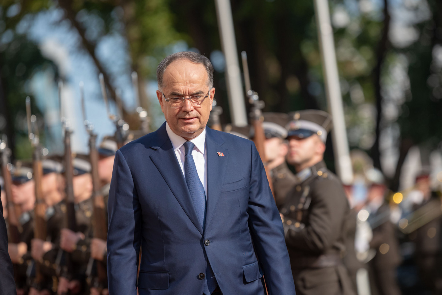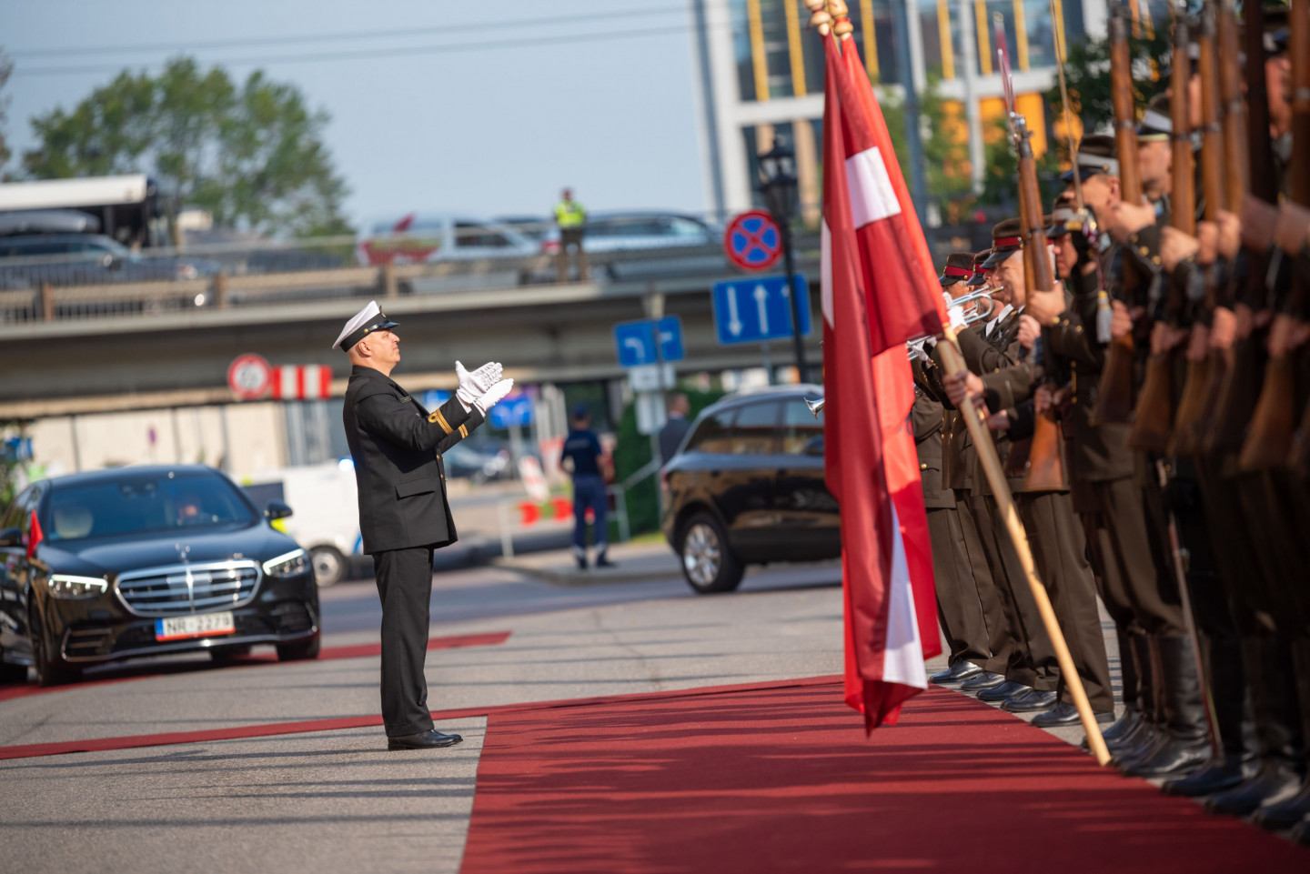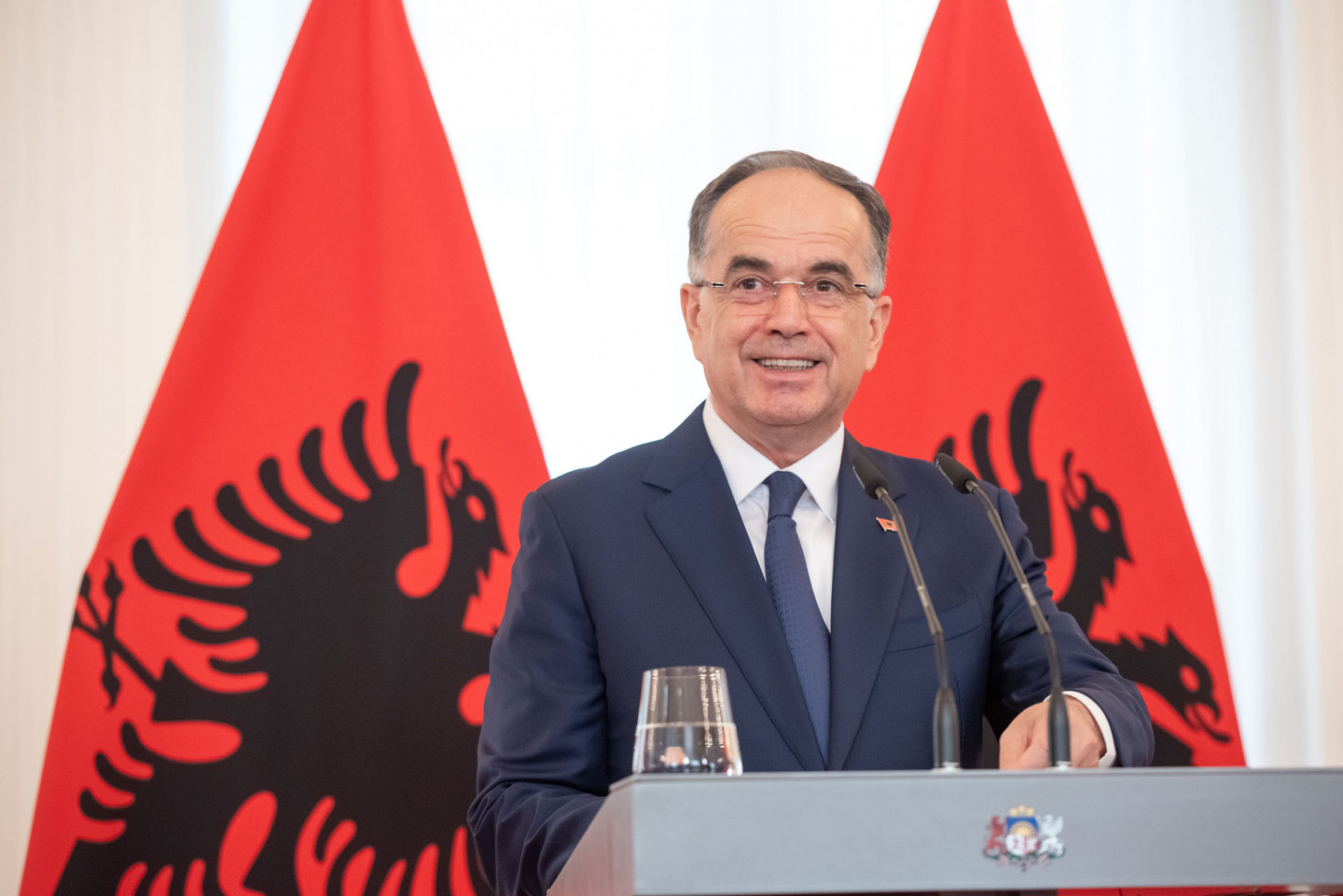 Valsts prezidents Edgars Rinkēvičs sagaida Albānijas prezidentu Bajramu Begaju.