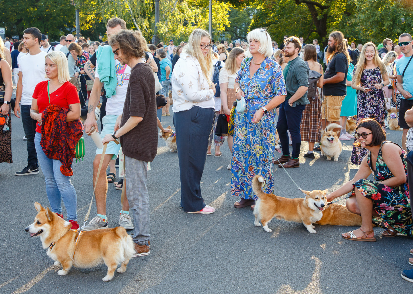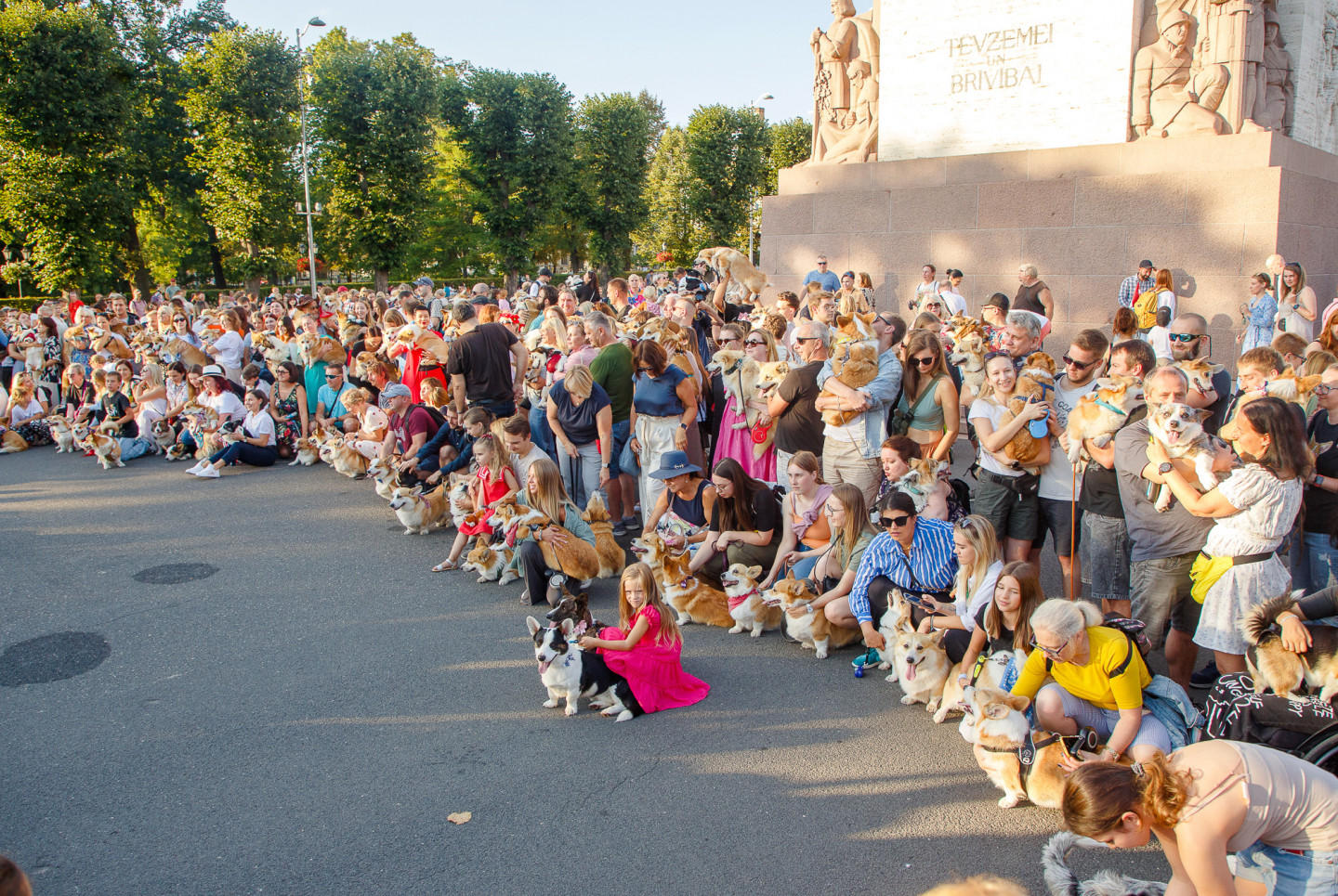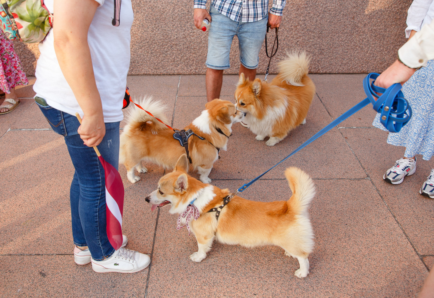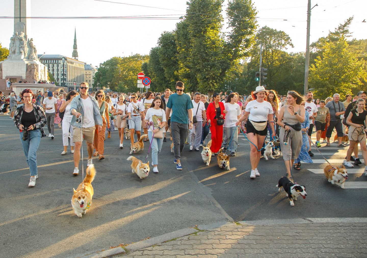 Vakar vakarpusē no Brīvības pieminekļa līdz Lielbritānijas vēstniecībai notika zibakcija - pastaiga ar korgijiem par godu karalienes Elizabetes II piemiņai.