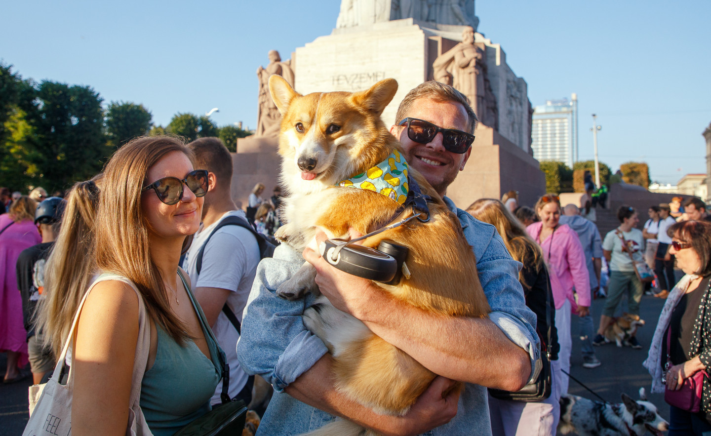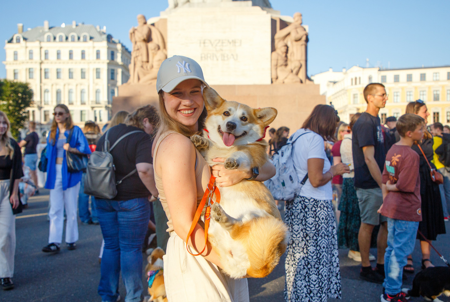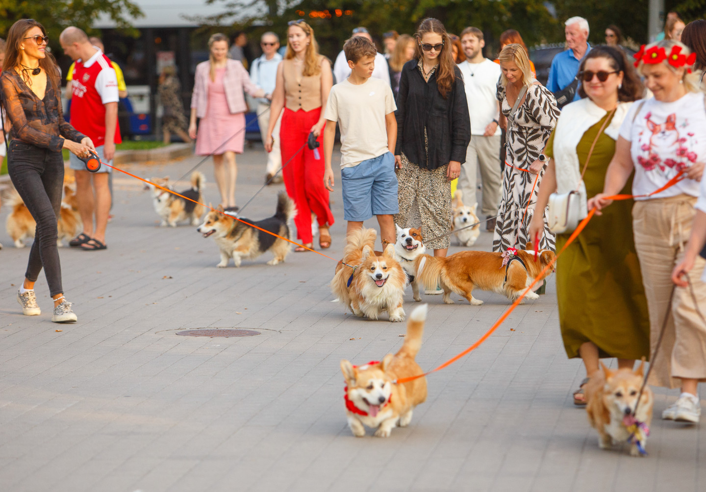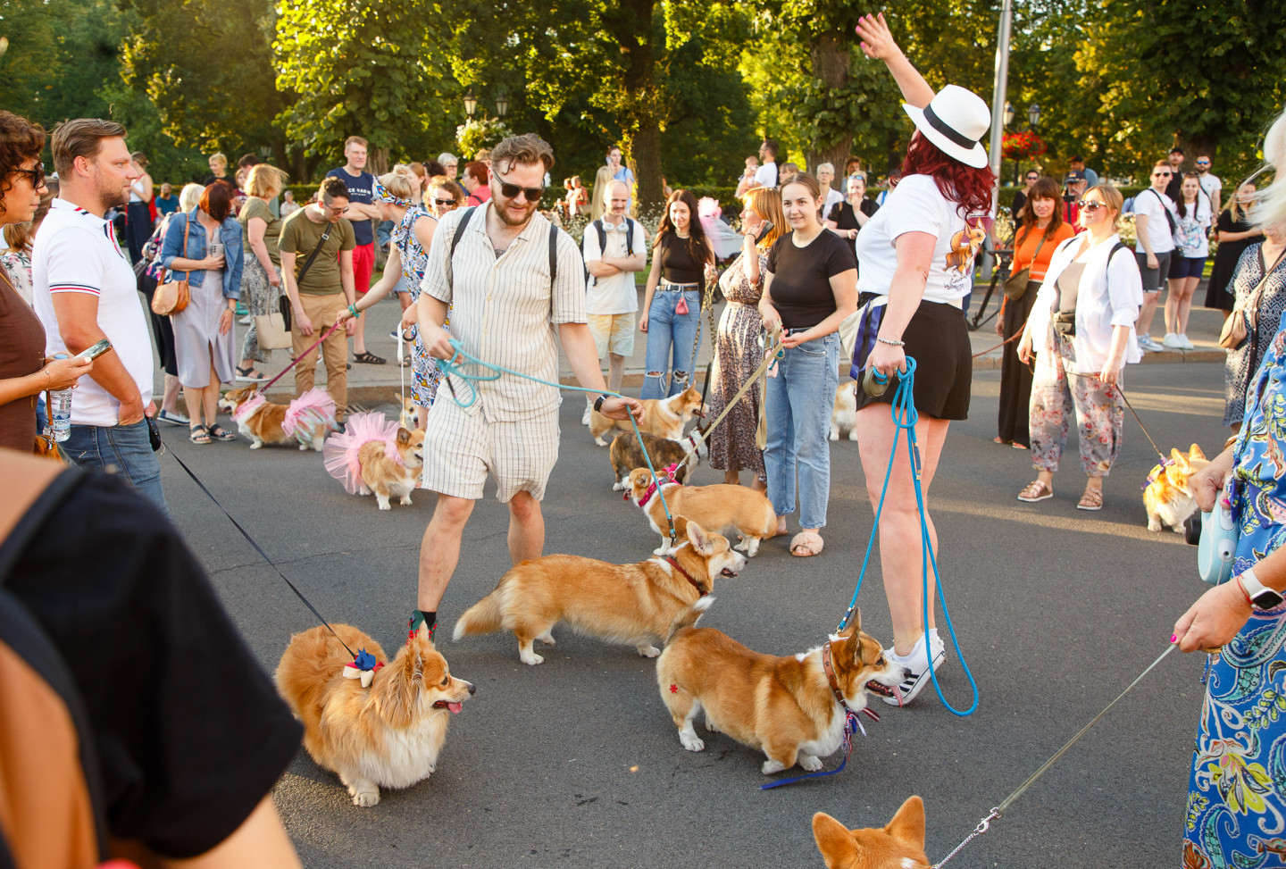 Vakar vakarpusē no Brīvības pieminekļa līdz Lielbritānijas vēstniecībai notika zibakcija - pastaiga ar korgijiem par godu karalienes Elizabetes II piemiņai.