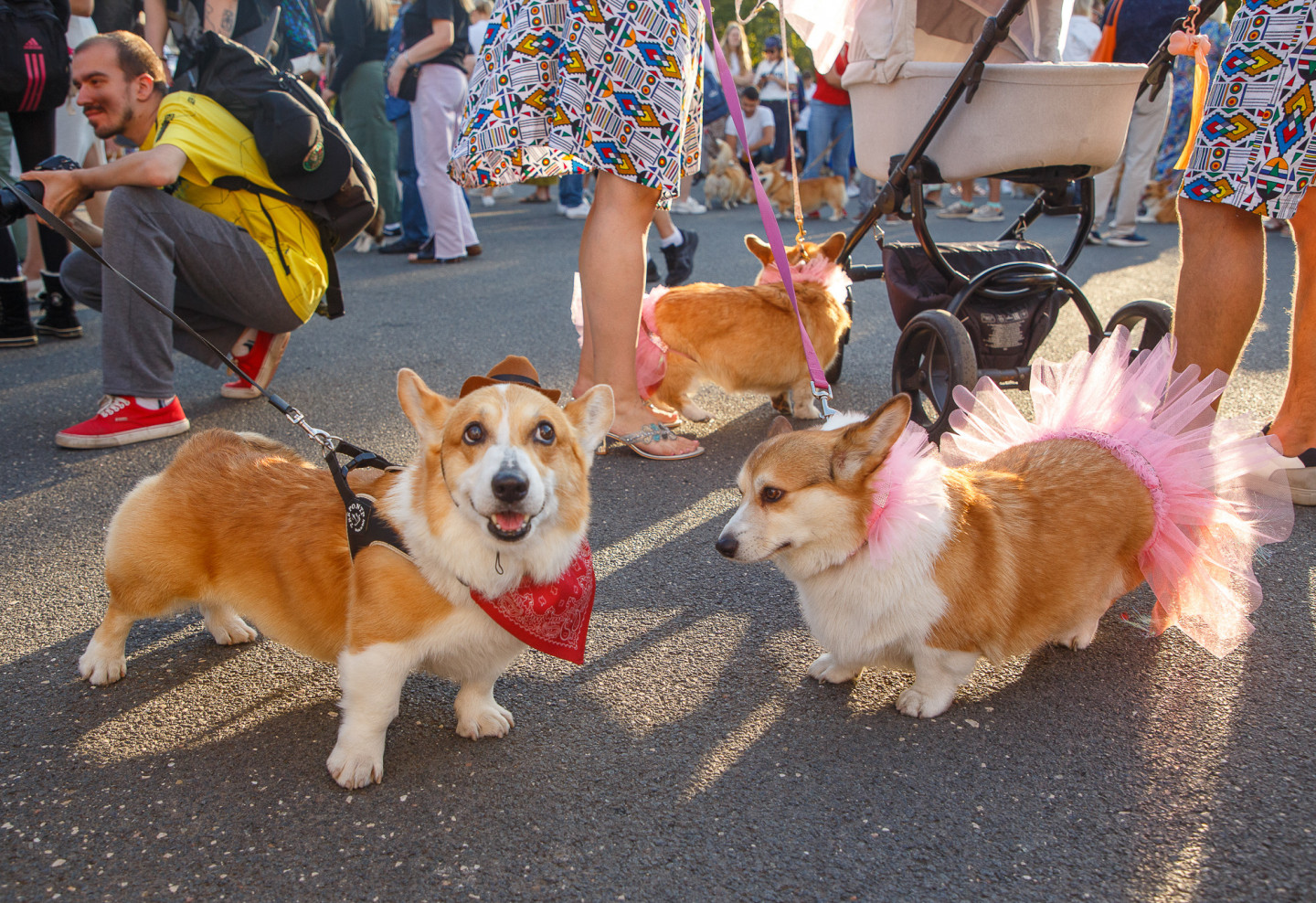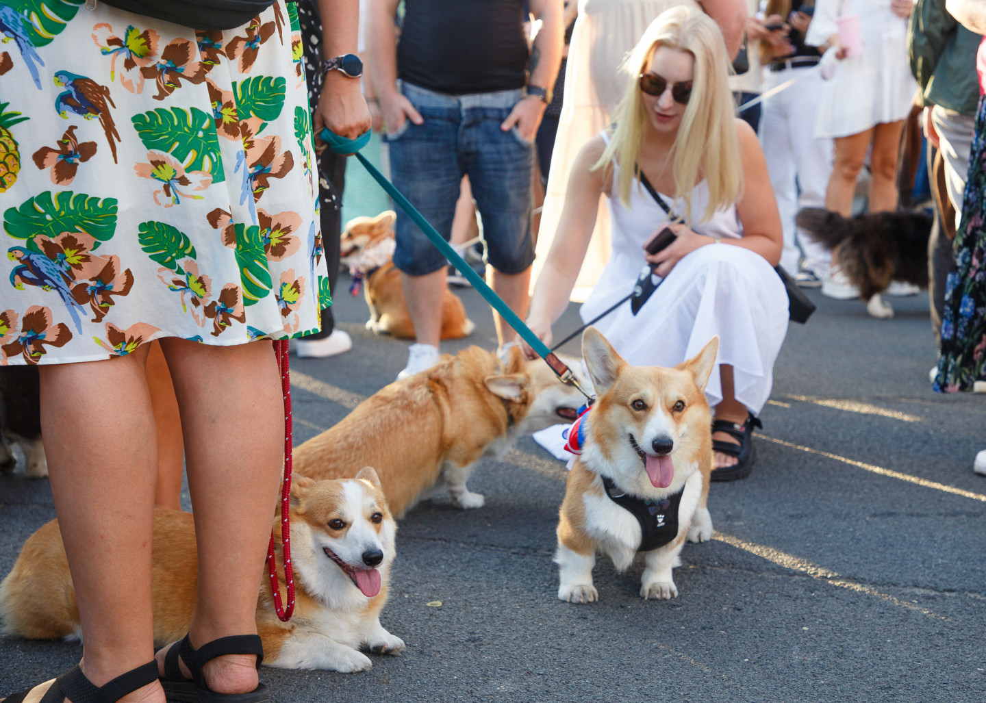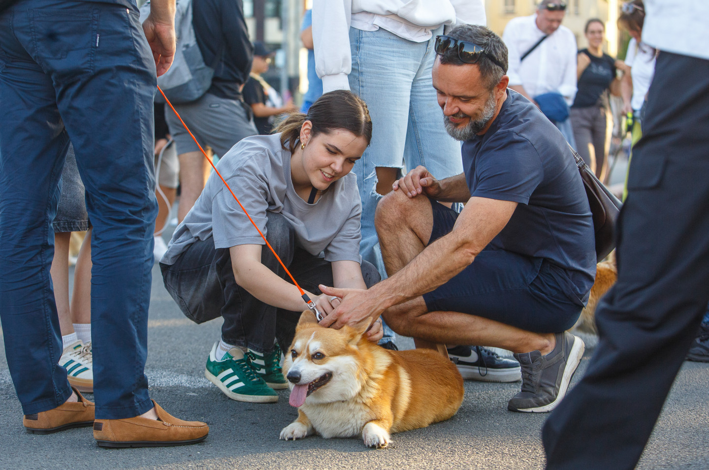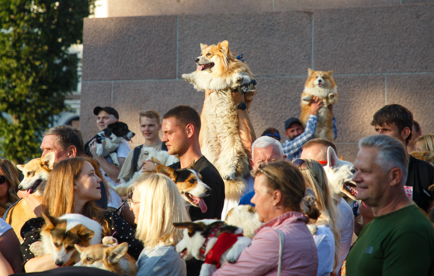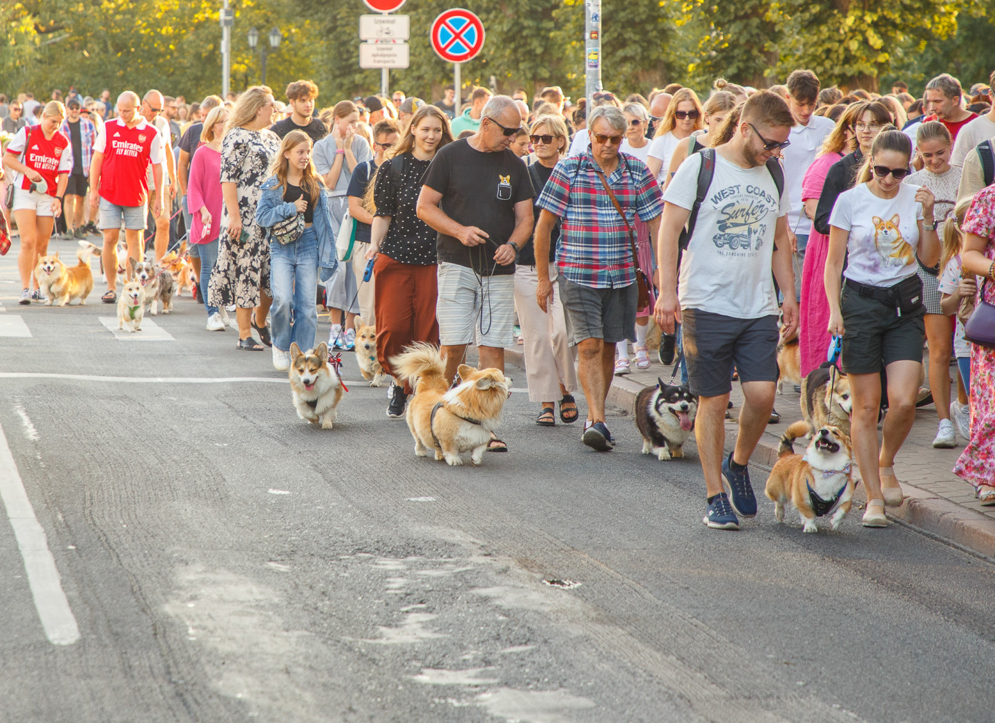 Vakar vakarpusē no Brīvības pieminekļa līdz Lielbritānijas vēstniecībai notika zibakcija - pastaiga ar korgijiem par godu karalienes Elizabetes II piemiņai.