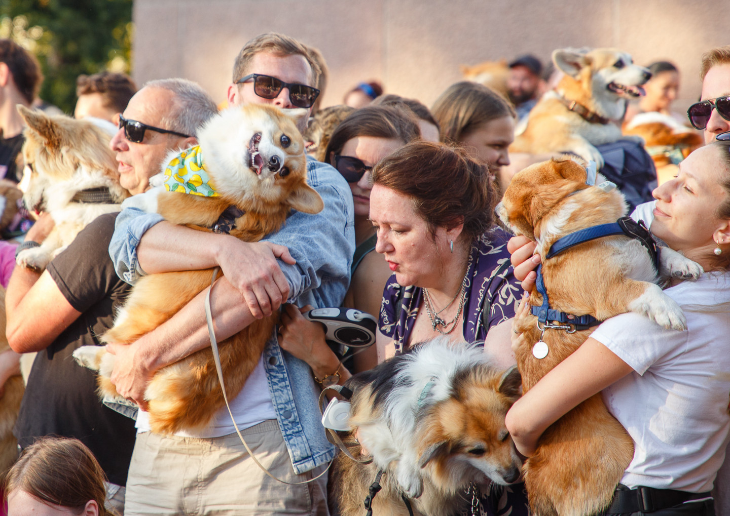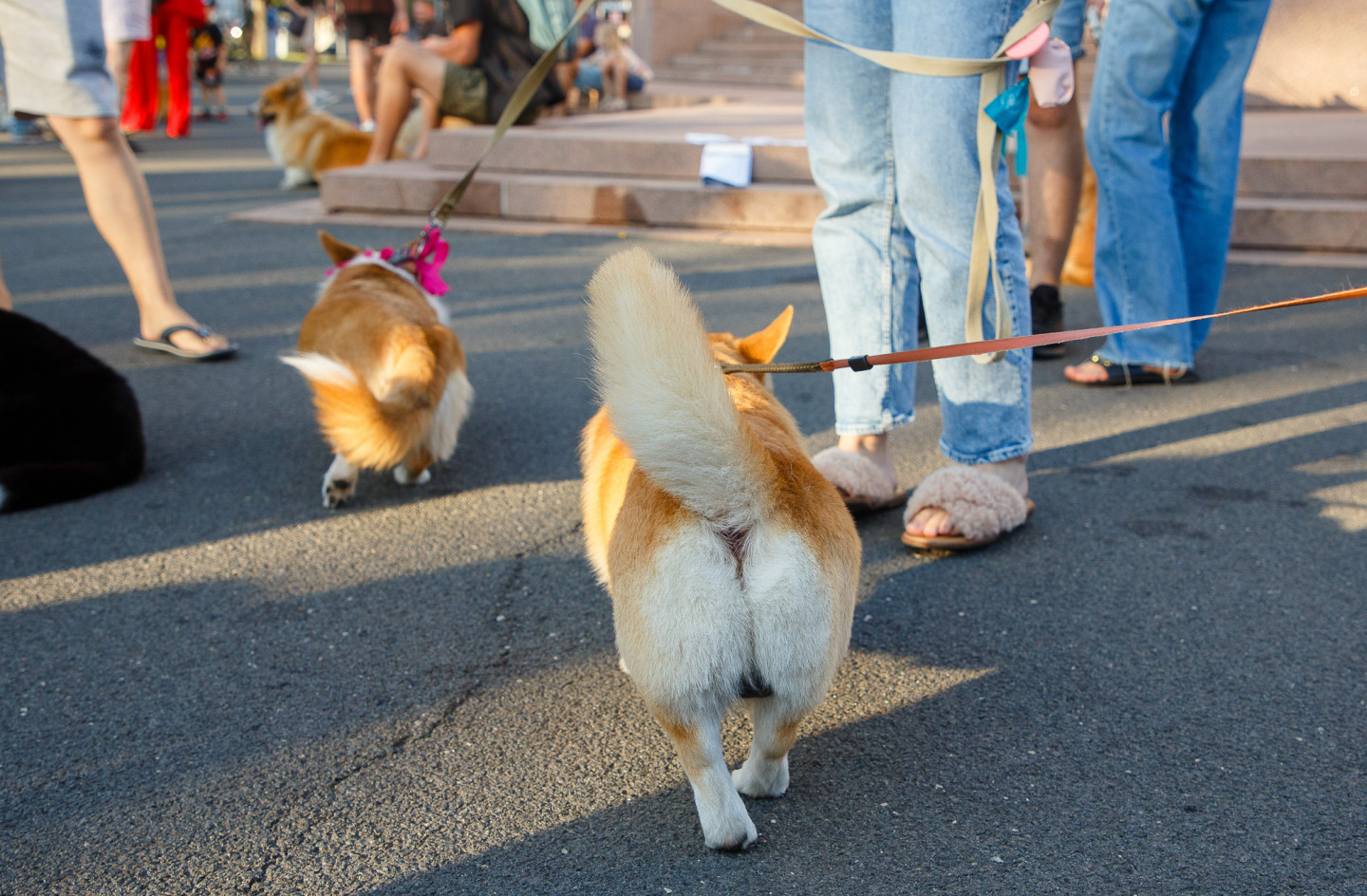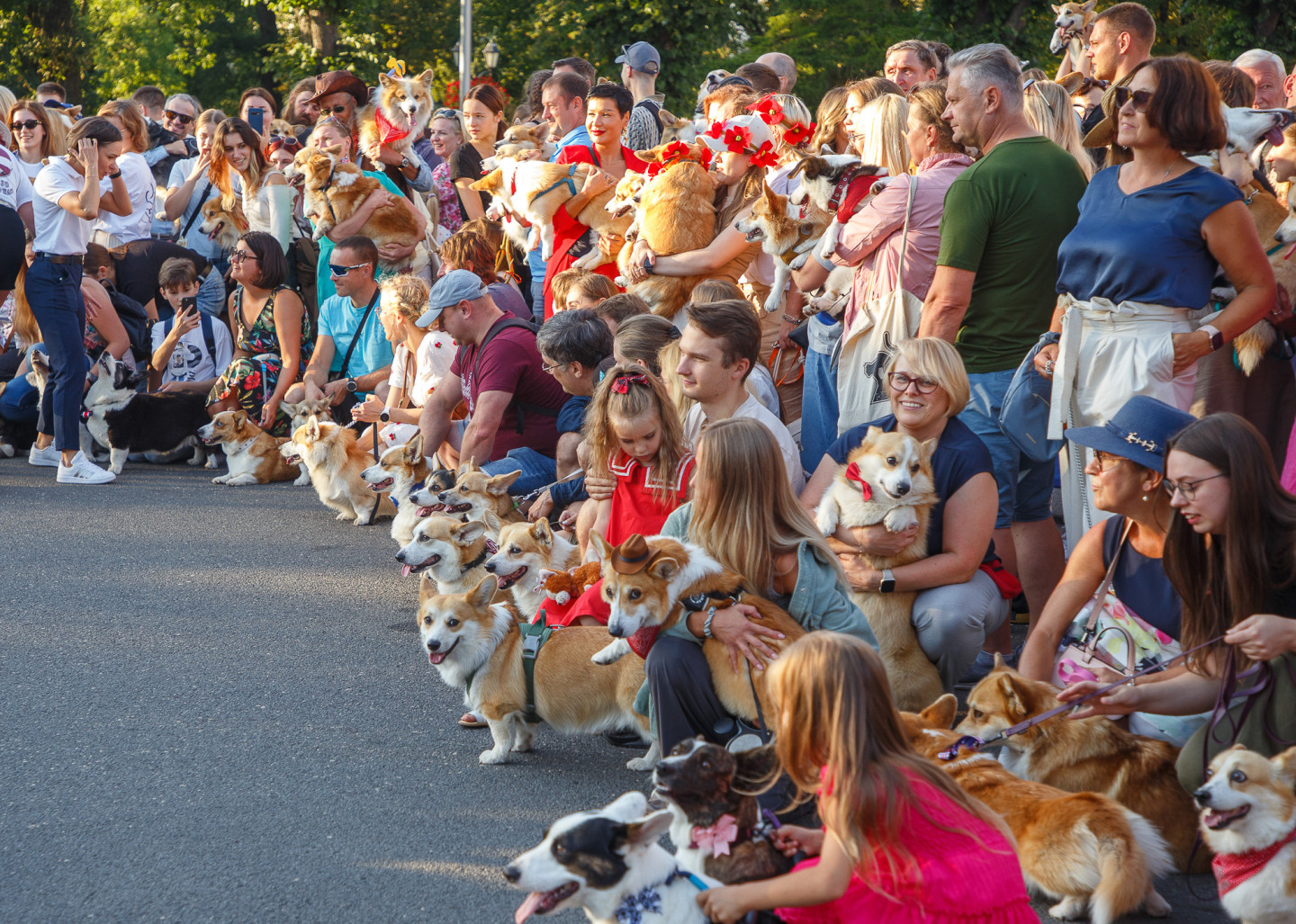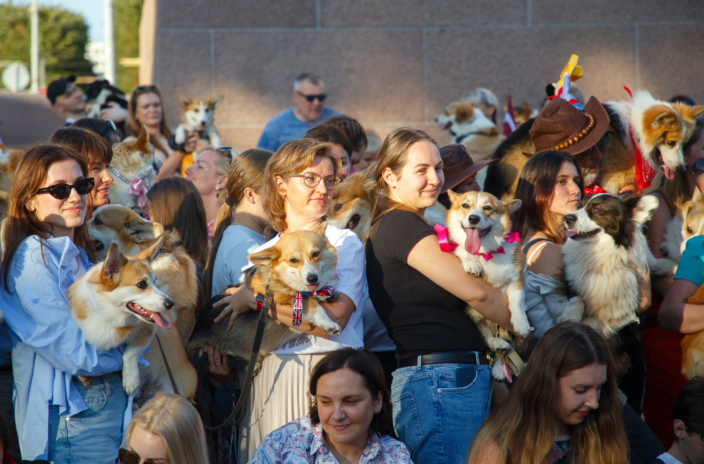 Vakar vakarpusē no Brīvības pieminekļa līdz Lielbritānijas vēstniecībai notika zibakcija - pastaiga ar korgijiem par godu karalienes Elizabetes II piemiņai.