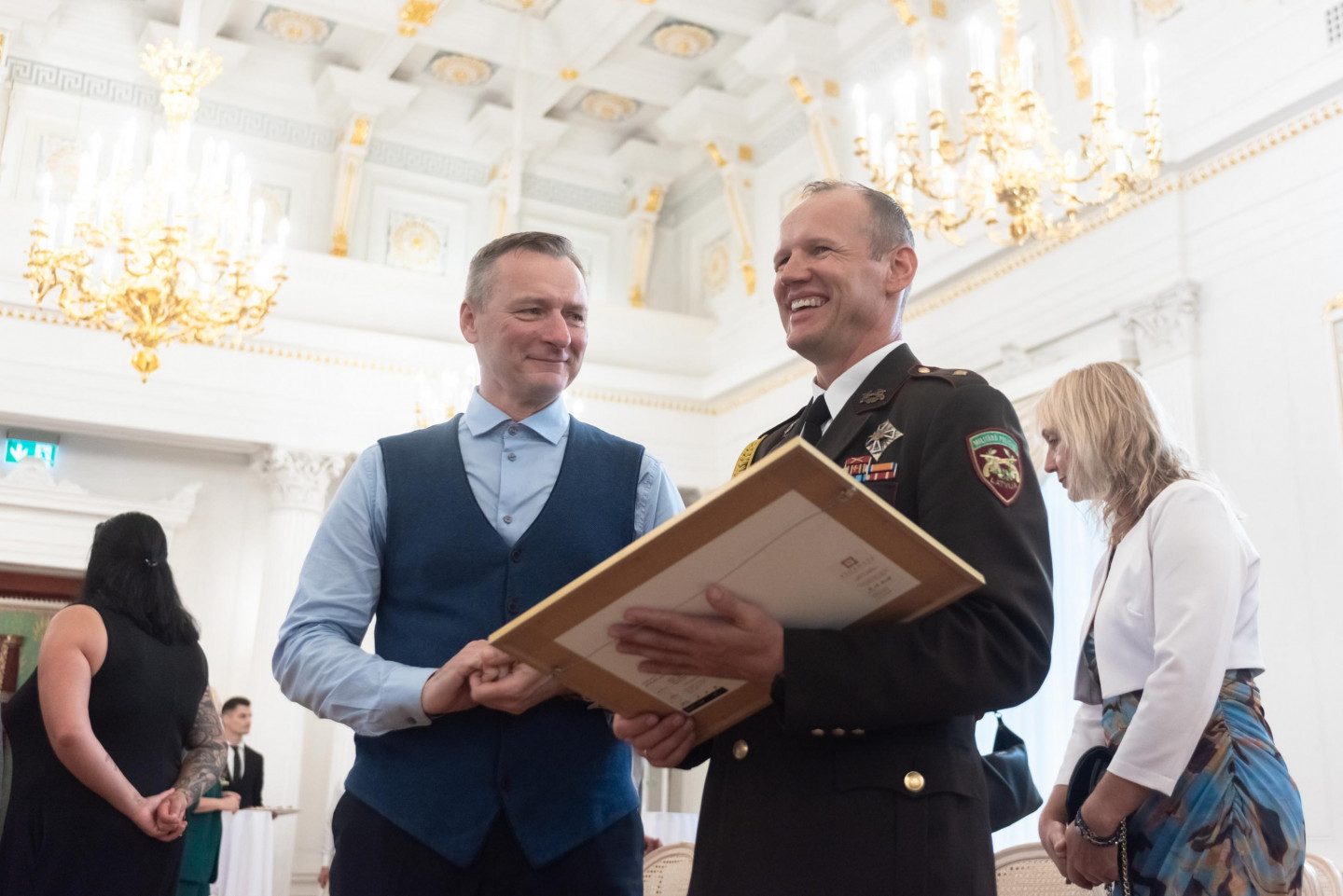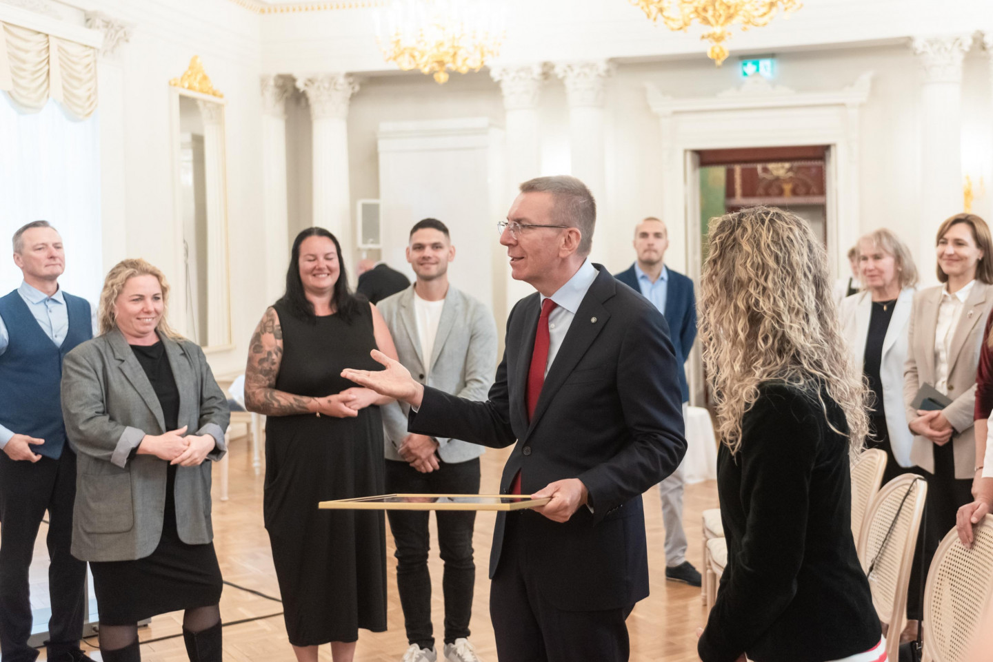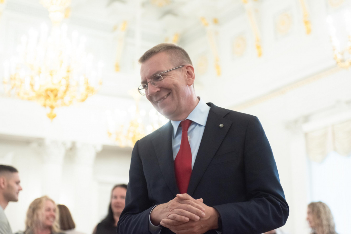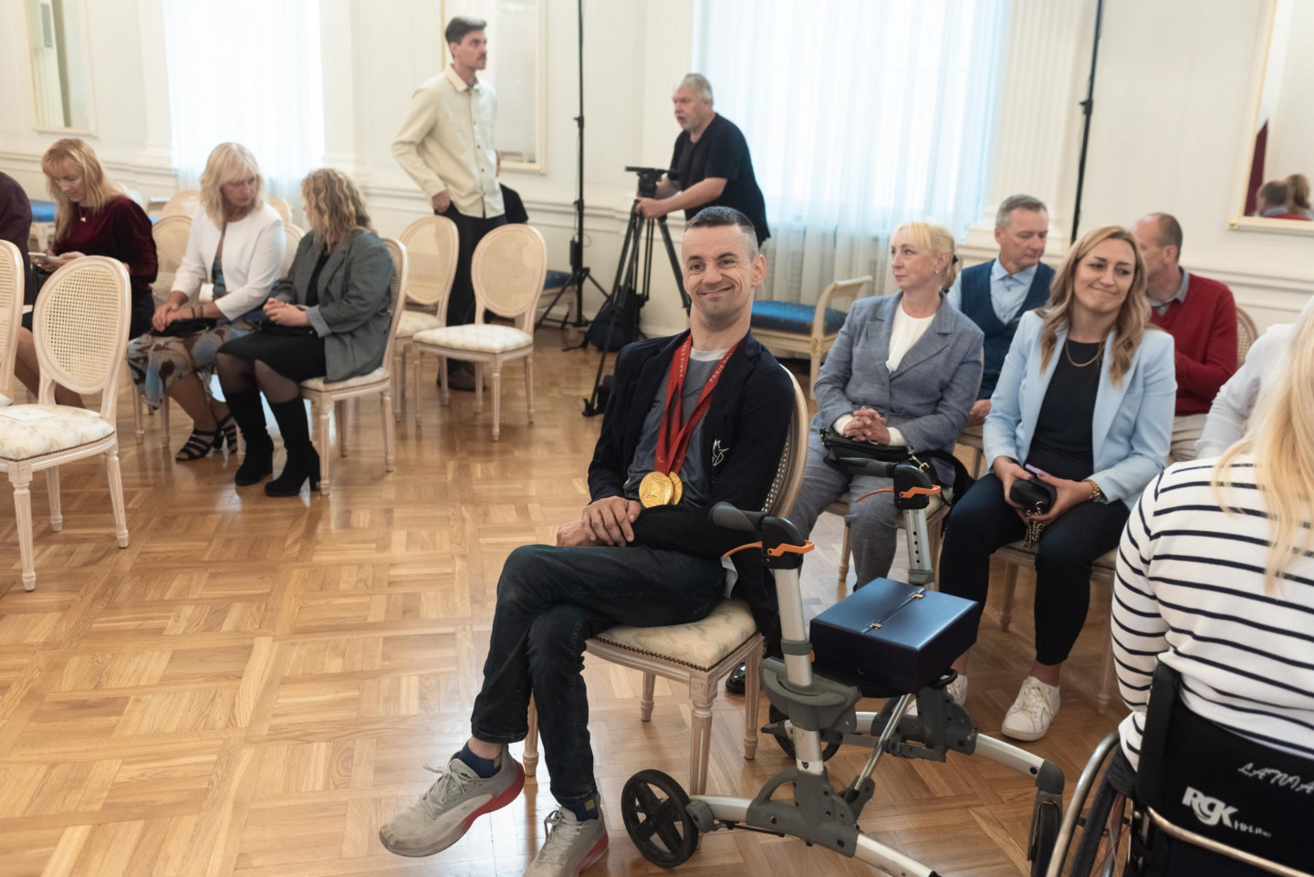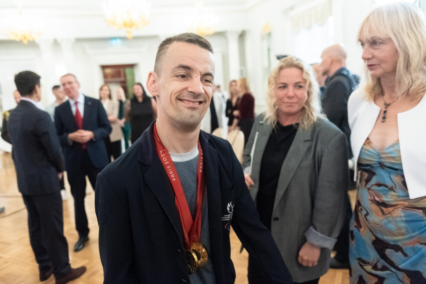 Valsts prezidents Edgars Rinkēvičs sveic Parīzes paralimpisko spēļu sportistus.