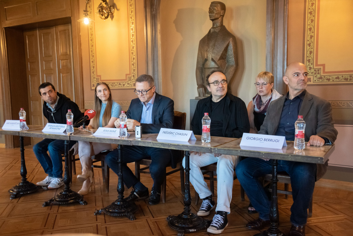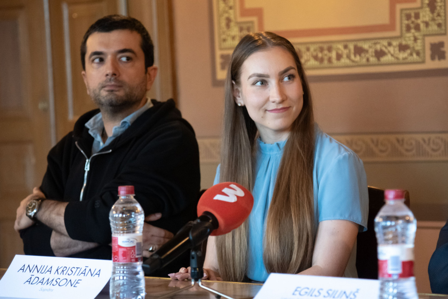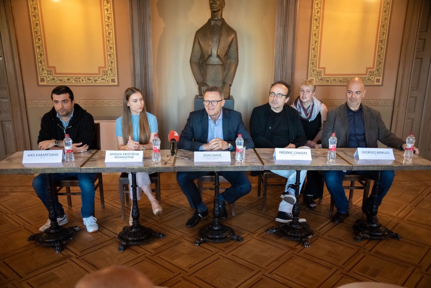 Šodien Latvijas Nacionālās operas un baleta (LNOB) Beletāžas zālē notika preses konference par pirmo sezonas jauniestudējumu - Žaka Ofenbaha operu "Hofmaņa stāsti", kas top franču diriģenta Frederika Šaslēna muzikālajā vadībā un Aika Karapetjana režijā. Uzveduma scenogrāfs ir Miķelis Fišers, kostīmu māksliniece - Kristīne Pasternaka, horeogrāfe - Linda Mīļā, gaismu mākslinieks - Euģenijus Sabaļausks. Titullomu jauniestudējumā atveidos itāļu tenors Džordžo Berrudži un Latvijas Nacionālās operas solists Artjoms Safronovs. Citās lomās iejutīsies Rihards Mačanovskis, Štepānka Pučālkova, Laura Grecka, Annija Kristiāna Ādamsone, Inga Šļubovska-Kancēviča, Jūlija Vasiļjeva, Inna Kločko, Dana Bramane, Tatjana Trenogina un citi.