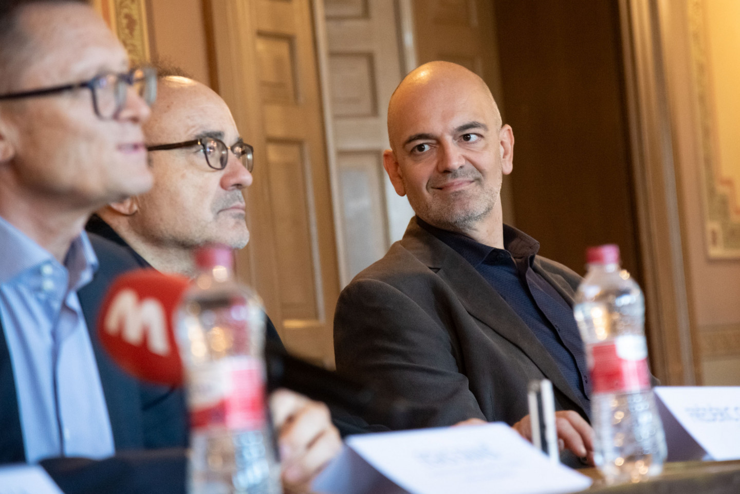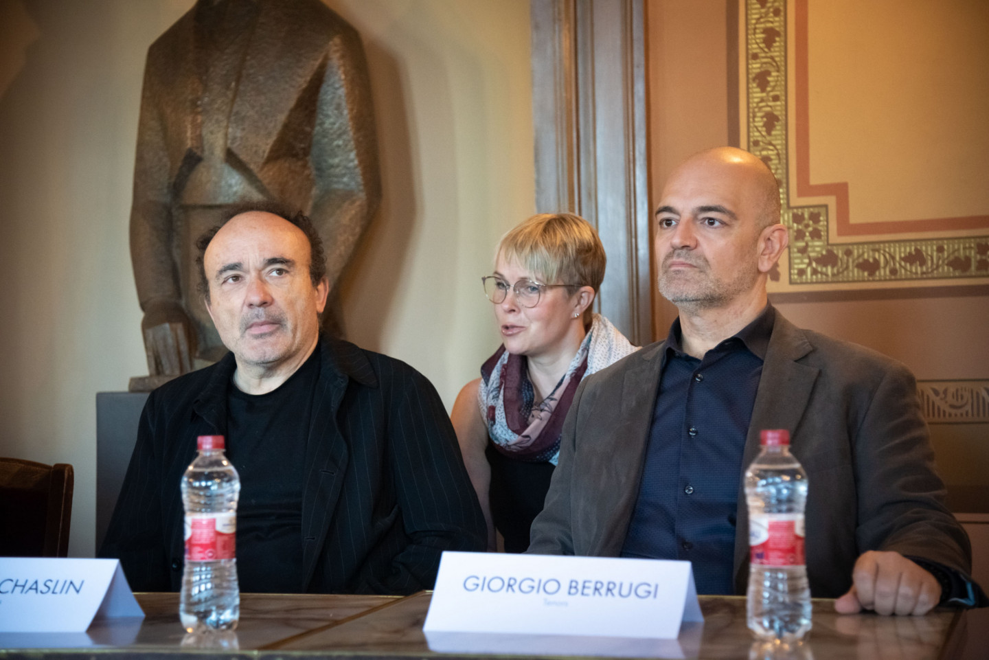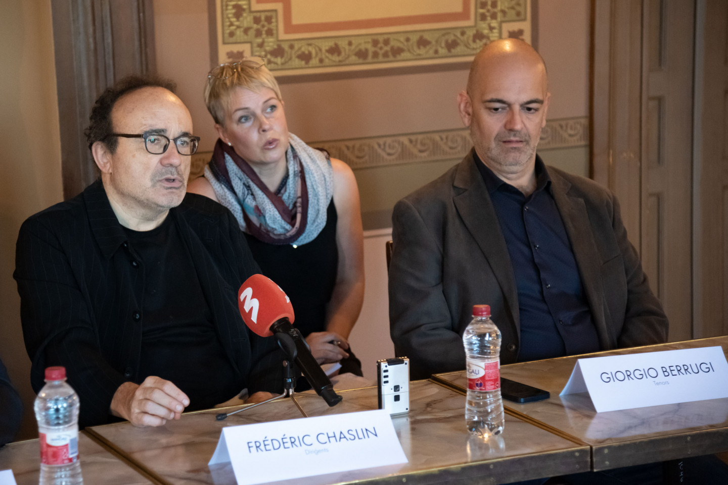 Šodien Latvijas Nacionālās operas un baleta (LNOB) Beletāžas zālē notika preses konference par pirmo sezonas jauniestudējumu - Žaka Ofenbaha operu "Hofmaņa stāsti", kas top franču diriģenta Frederika Šaslēna muzikālajā vadībā un Aika Karapetjana režijā. Uzveduma scenogrāfs ir Miķelis Fišers, kostīmu māksliniece - Kristīne Pasternaka, horeogrāfe - Linda Mīļā, gaismu mākslinieks - Euģenijus Sabaļausks. Titullomu jauniestudējumā atveidos itāļu tenors Džordžo Berrudži un Latvijas Nacionālās operas solists Artjoms Safronovs. Citās lomās iejutīsies Rihards Mačanovskis, Štepānka Pučālkova, Laura Grecka, Annija Kristiāna Ādamsone, Inga Šļubovska-Kancēviča, Jūlija Vasiļjeva, Inna Kločko, Dana Bramane, Tatjana Trenogina un citi.