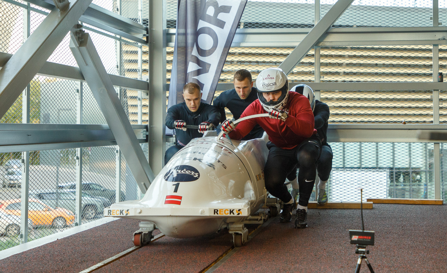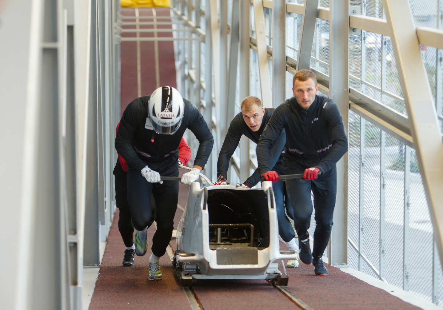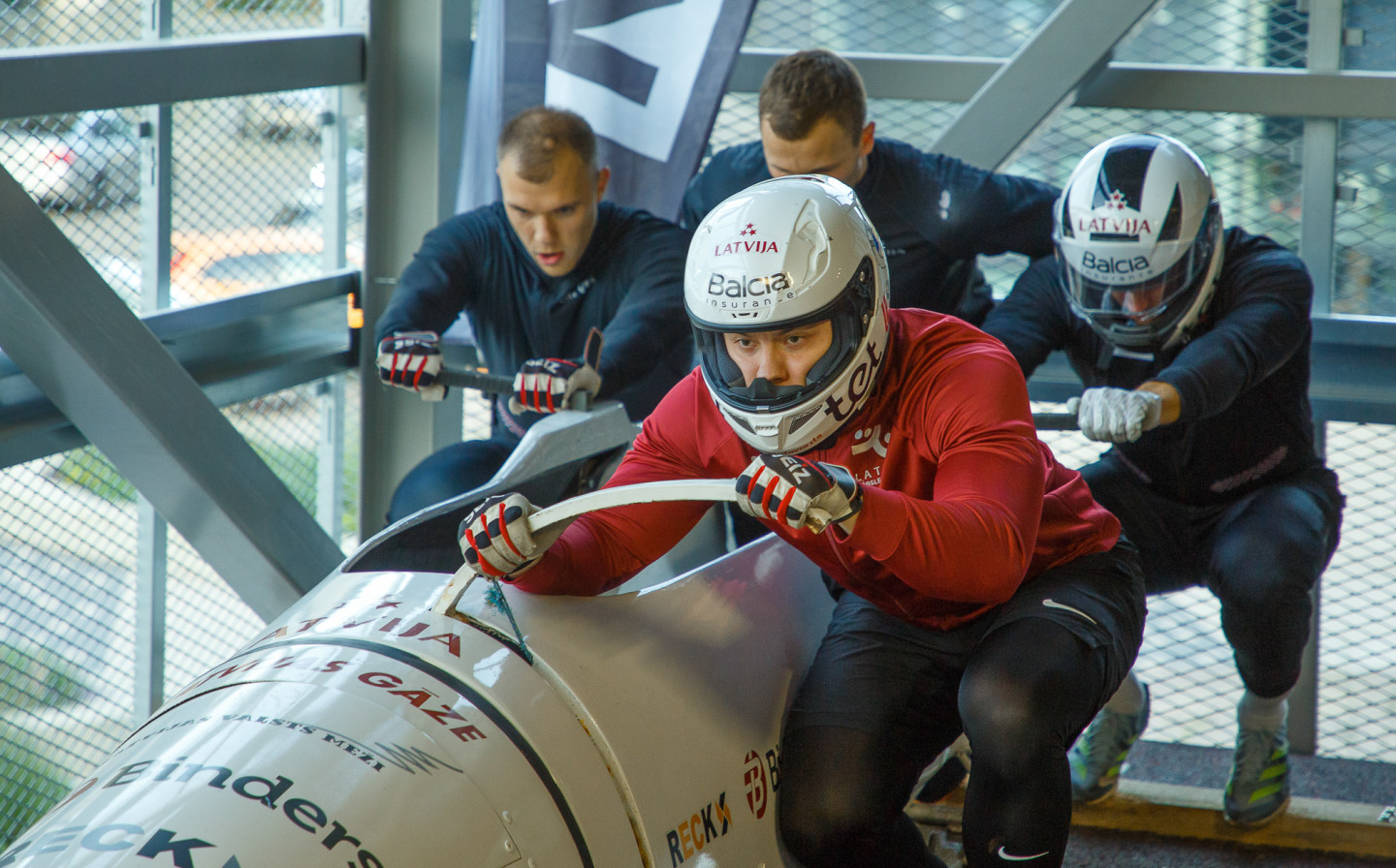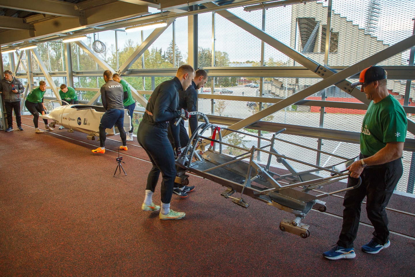 Latvijas bobslejisti un skeletonisti turpina sagatavošanās posmu pirms gaidāmās sezonas. Šobrīd treniņnometne rit Rīgā, jaunuzceltajā vieglatlētikas manēžā "Daugava", kur tapusi bezledus starta estakāde ledus trašu sporta veidu pārstāvjiem. Šodien "Daugavas" vieglatlētikas manēžā bobslejisti un skeletonisti bija sarīkojuši estakādes svinīgo atklāšanu un atvērto treniņu, lai pirms ikgadējās pirmssezonas preses konferences sarīkotu mediju tikšanos ar sportistiem un treneriem.