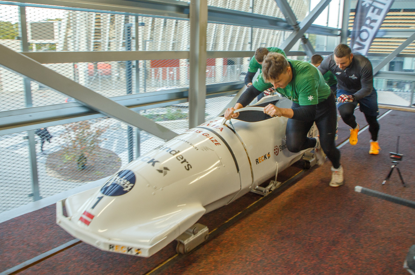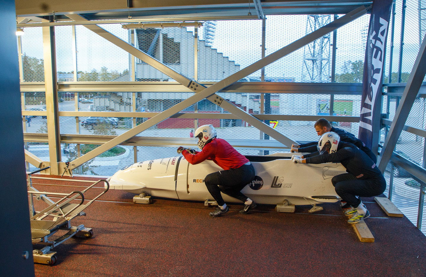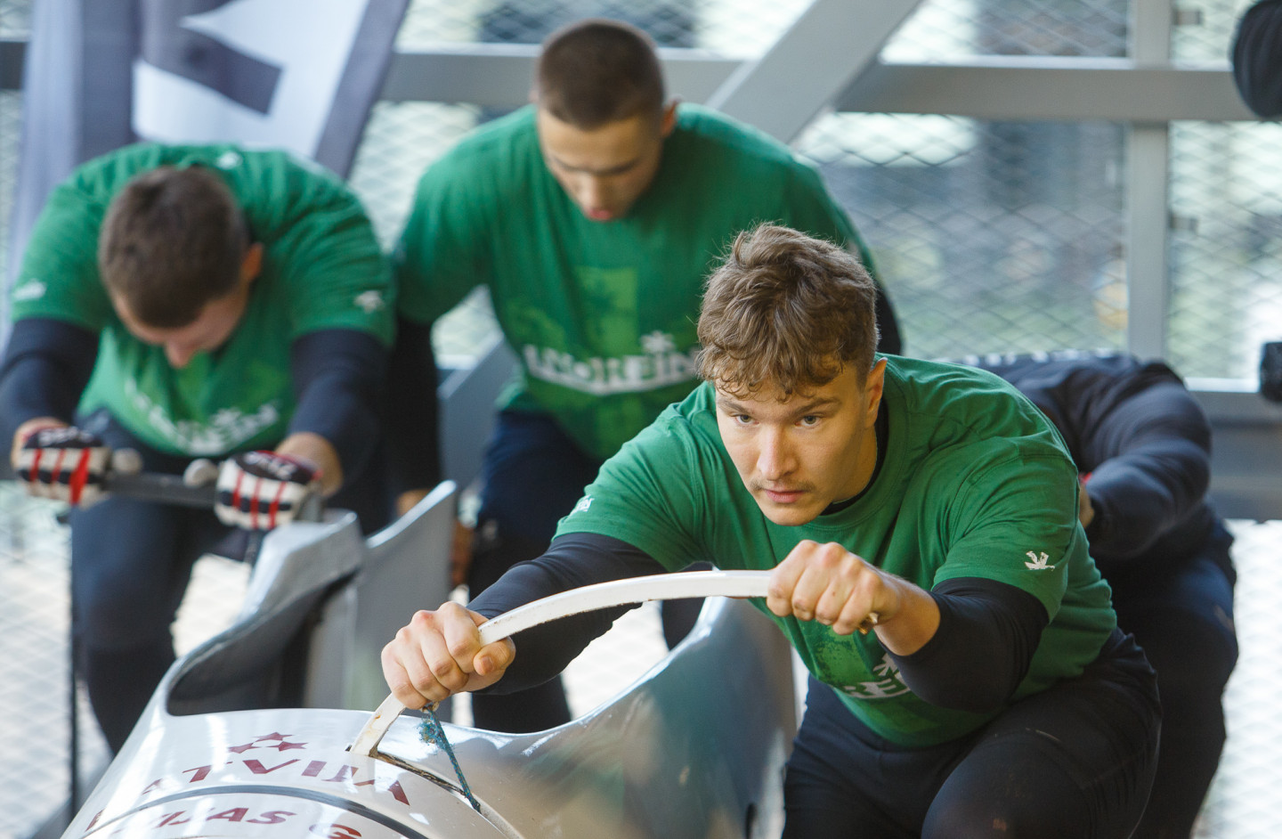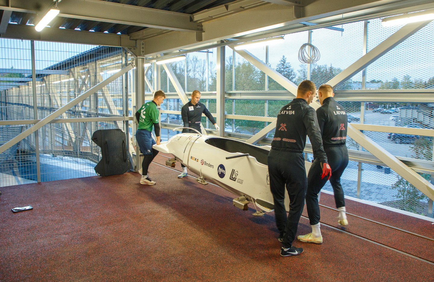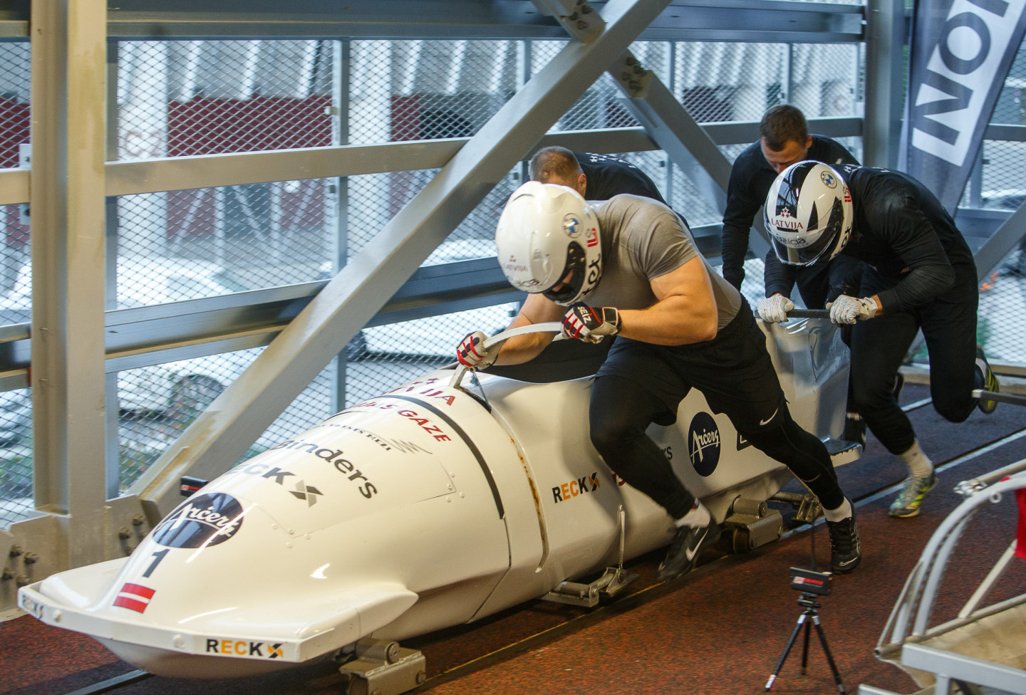 Latvijas bobslejisti un skeletonisti turpina sagatavošanās posmu pirms gaidāmās sezonas. Šobrīd treniņnometne rit Rīgā, jaunuzceltajā vieglatlētikas manēžā "Daugava", kur tapusi bezledus starta estakāde ledus trašu sporta veidu pārstāvjiem. Šodien "Daugavas" vieglatlētikas manēžā bobslejisti un skeletonisti bija sarīkojuši estakādes svinīgo atklāšanu un atvērto treniņu, lai pirms ikgadējās pirmssezonas preses konferences sarīkotu mediju tikšanos ar sportistiem un treneriem.