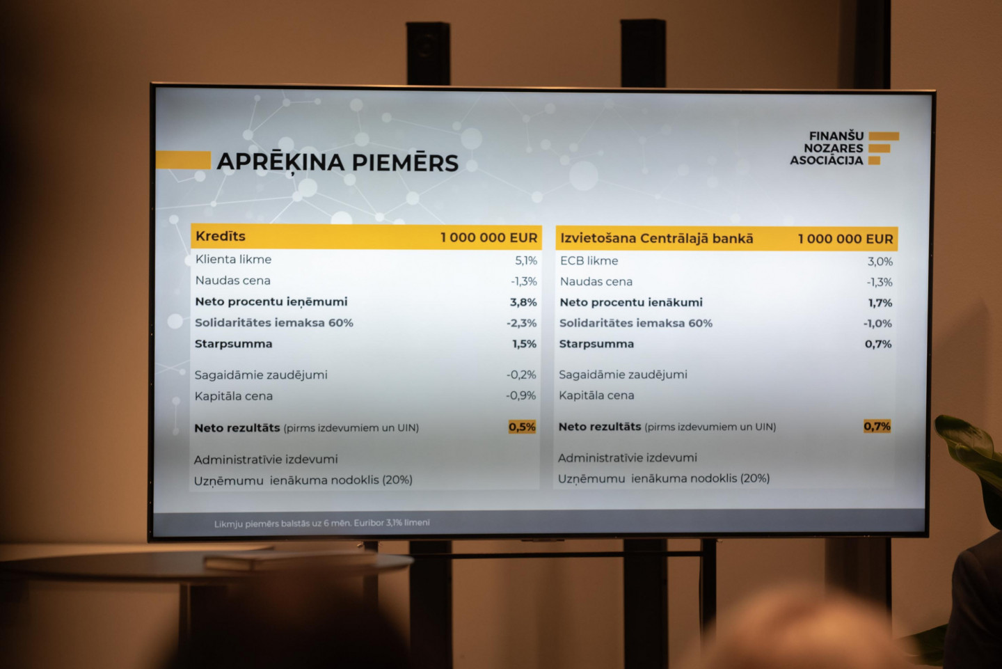 Finanšu nozares asociācija (FNA) un lielākās bankas šodien mediju pasākumā informēja par aktuālo situāciju kreditēšanas jomā un banku aprēķinus par solidaritātes iemaksas sasaisti ar kreditēšanu.