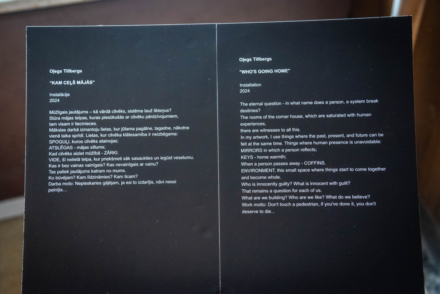 "Disidents" veidota kā informatīvs manifests, kur mākslinieki savus darbus pamato ar domas un idejiskās pašizpausmes nozīmīgumu, paužot savu viedokli un skatījumu individuālās izteiksmes materializācijā. Izstādes darbi veidoti no dažādiem materiāliem, objektiem, kas izvietoti Stūra mājā. Tie atspoguļo mākslinieku redzējumu, emocijas un izjūtas par pašreizējo situāciju pasaulē. Izstādē piedalās deviņi mākslinieki - "SOME1", Oļegs Tillbergs, Kirils Panteļejevs, Andris Maračkovskis, Jānis Noviks, Herberts Verpakovskis, Toms Jansons, Raitis Hrolovičs un "MO".