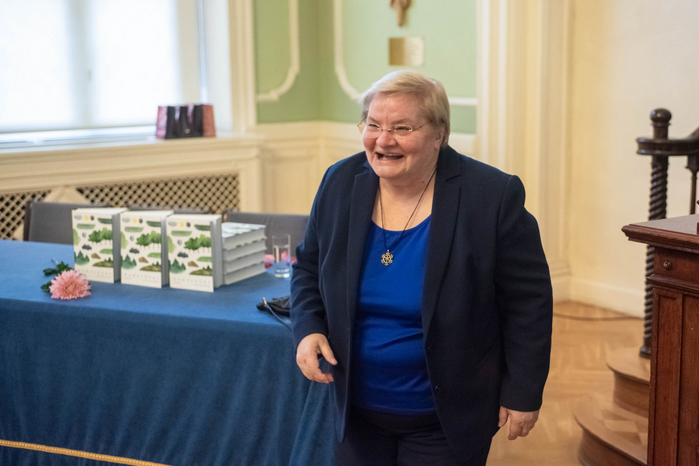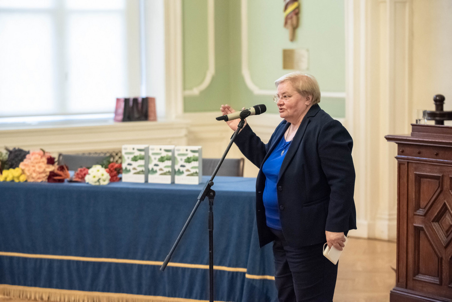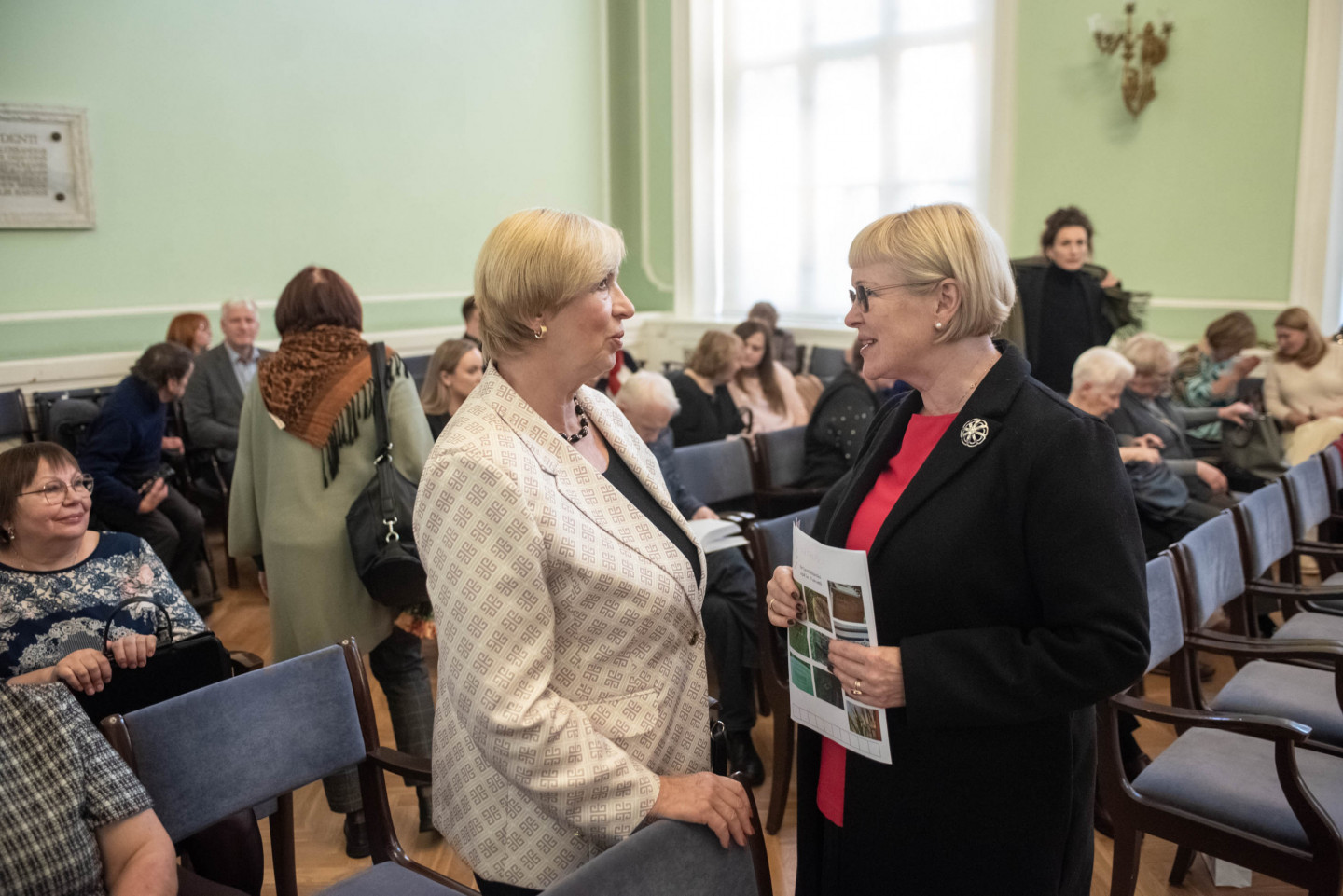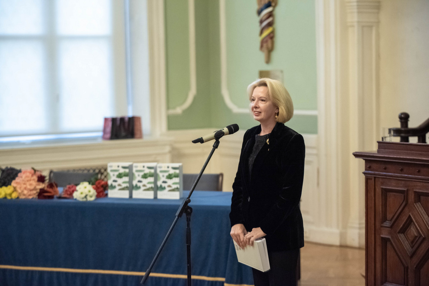 Latvijas Universitātes Mazajā aulā notiek kādreizējās Saeimas deputātes Janīnas Kursītes monogrāfijas "Kamolkoks. Apcere par ceļiem uz latviskumu" atklāšanas svētki