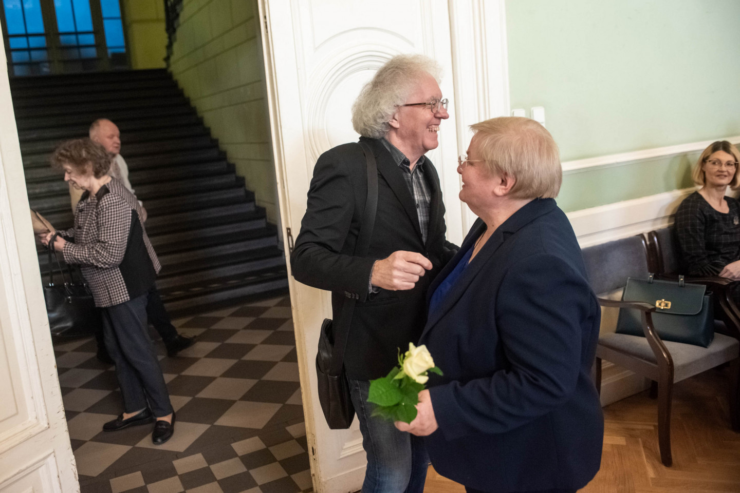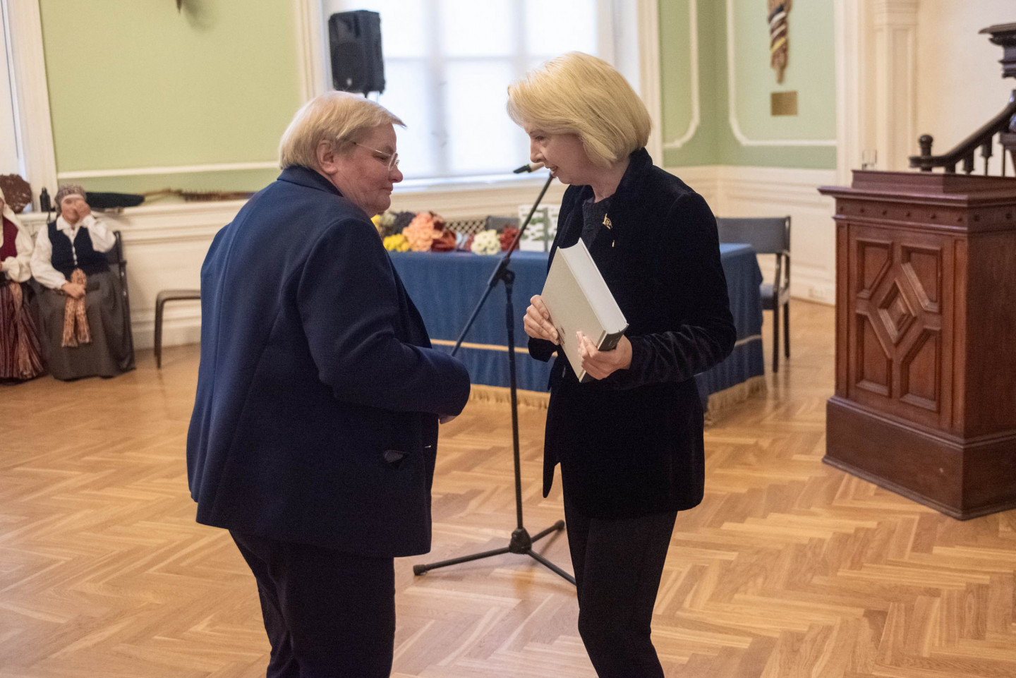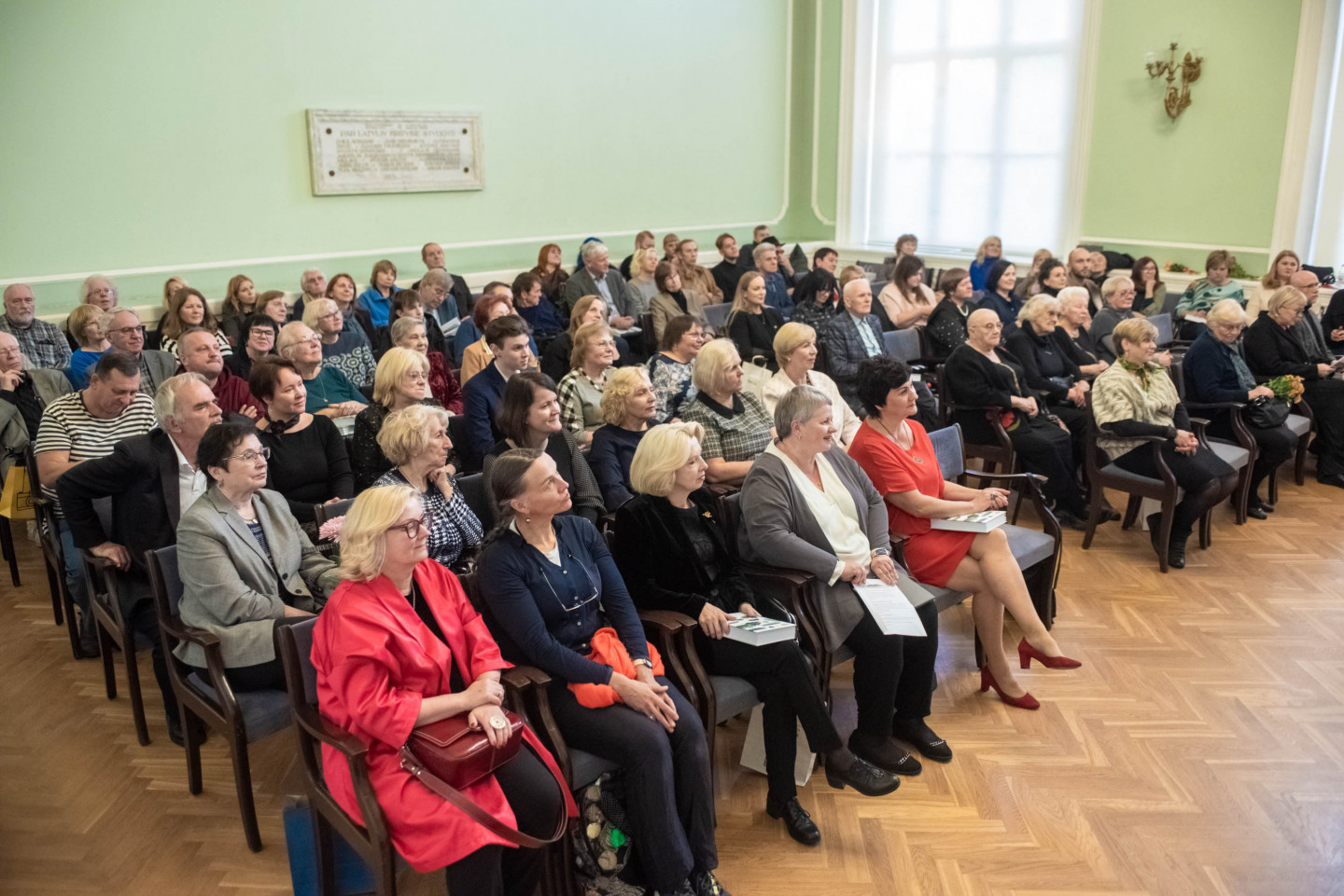 Latvijas Universitātes Mazajā aulā notiek kādreizējās Saeimas deputātes Janīnas Kursītes monogrāfijas "Kamolkoks. Apcere par ceļiem uz latviskumu" atklāšanas svētki