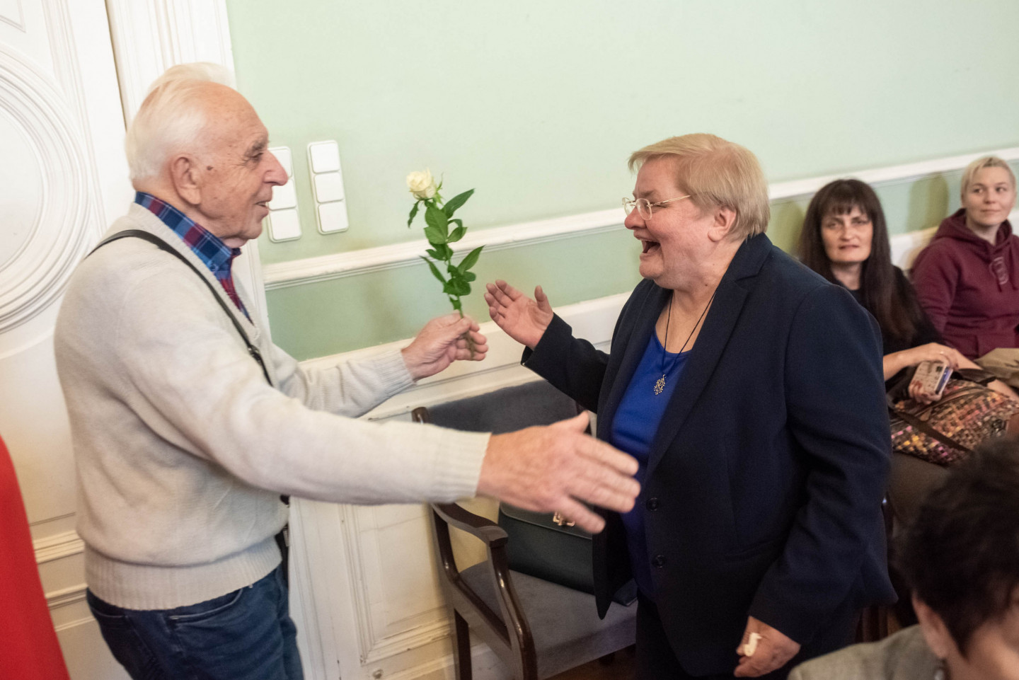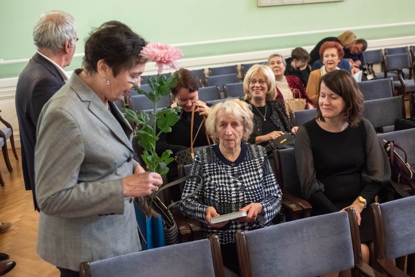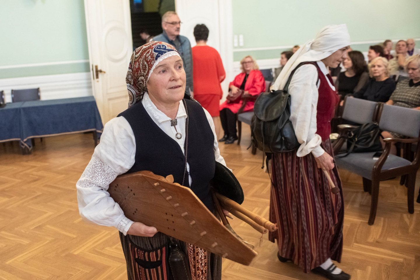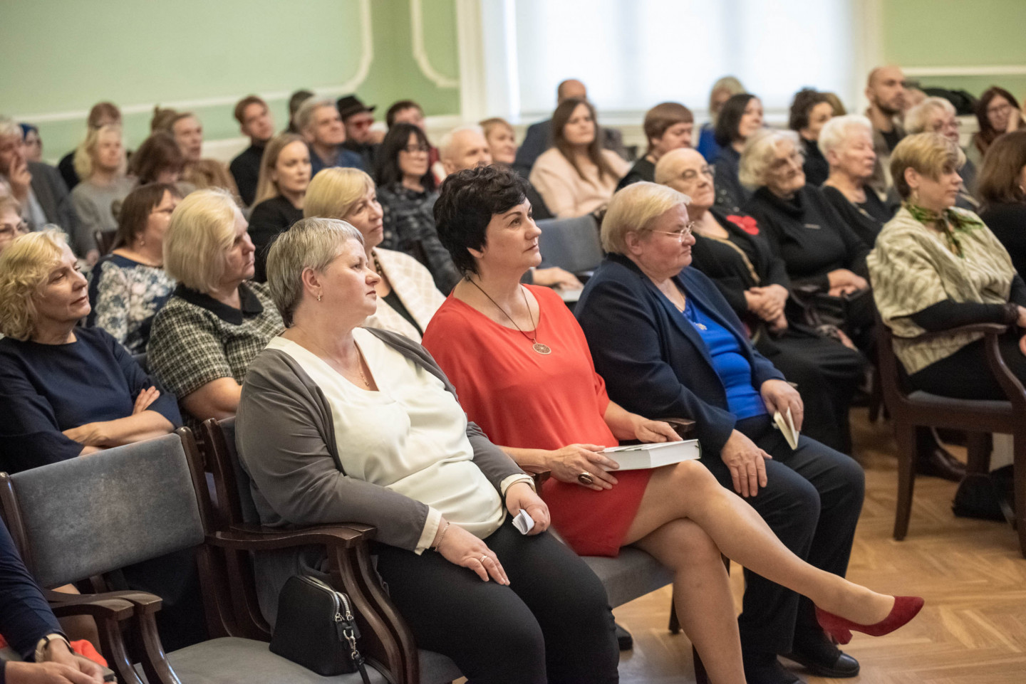 Latvijas Universitātes Mazajā aulā notiek kādreizējās Saeimas deputātes Janīnas Kursītes monogrāfijas "Kamolkoks. Apcere par ceļiem uz latviskumu" atklāšanas svētki