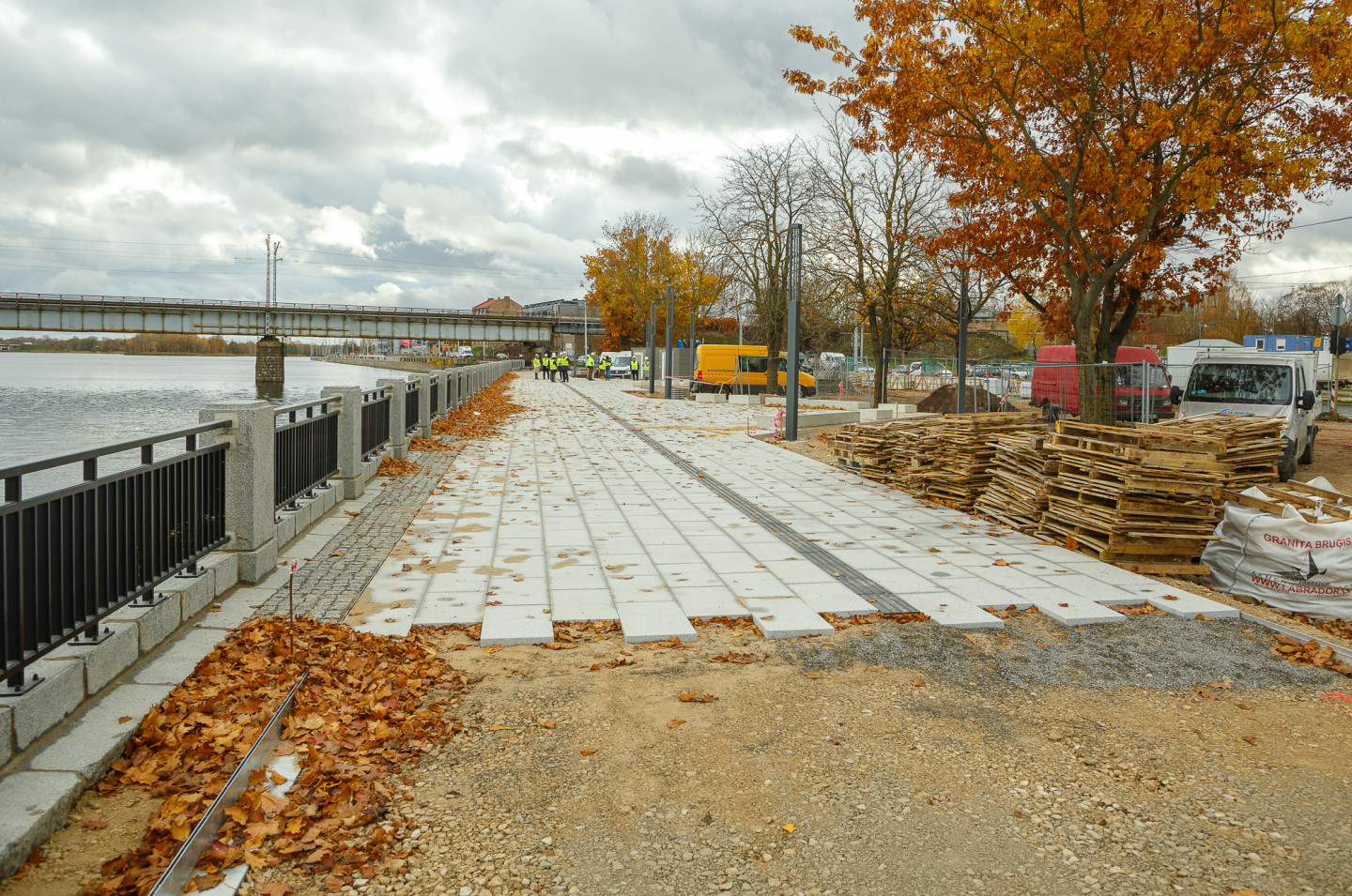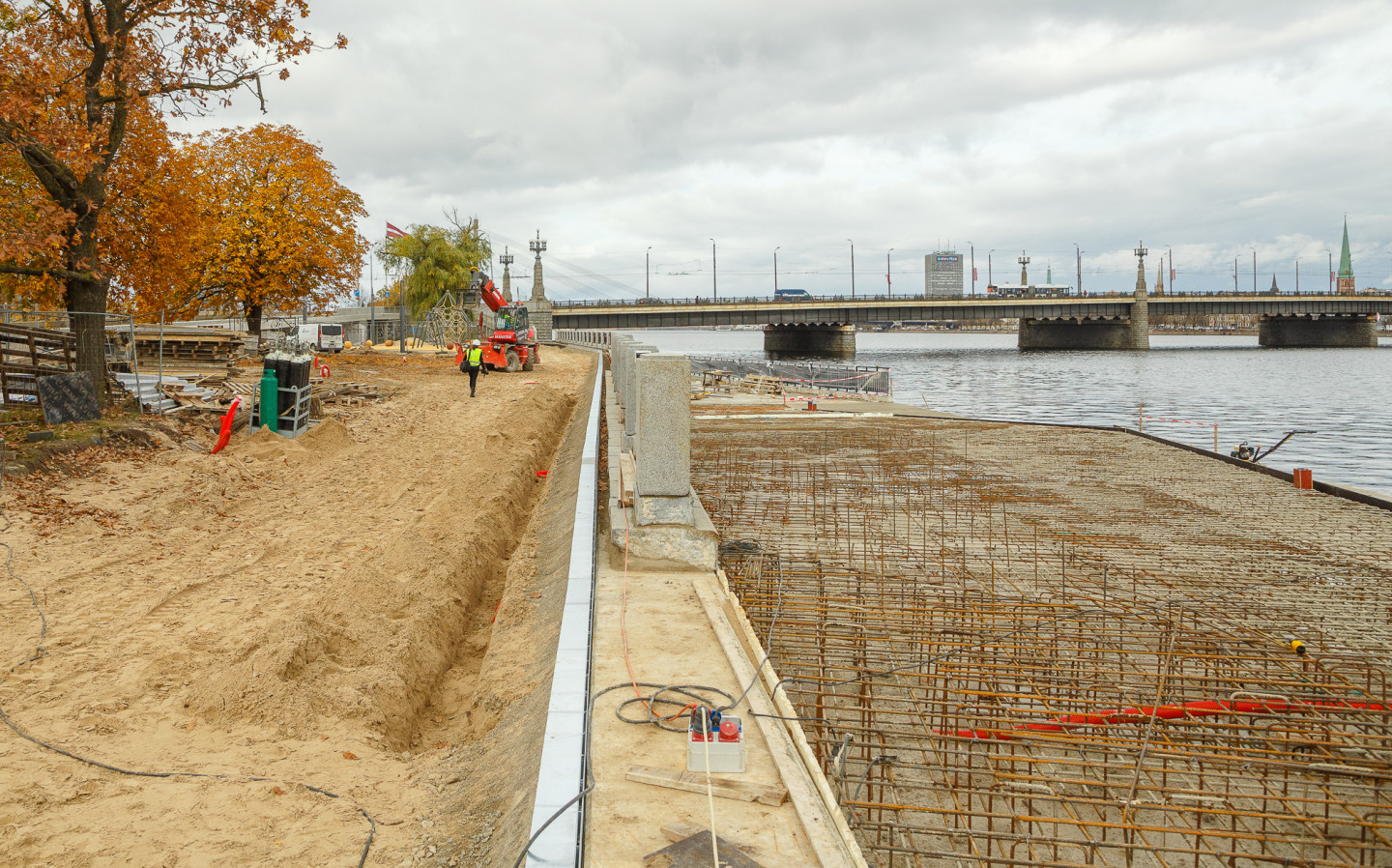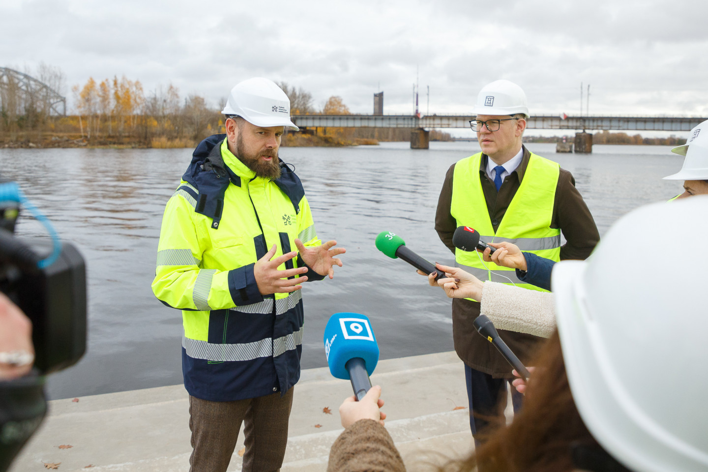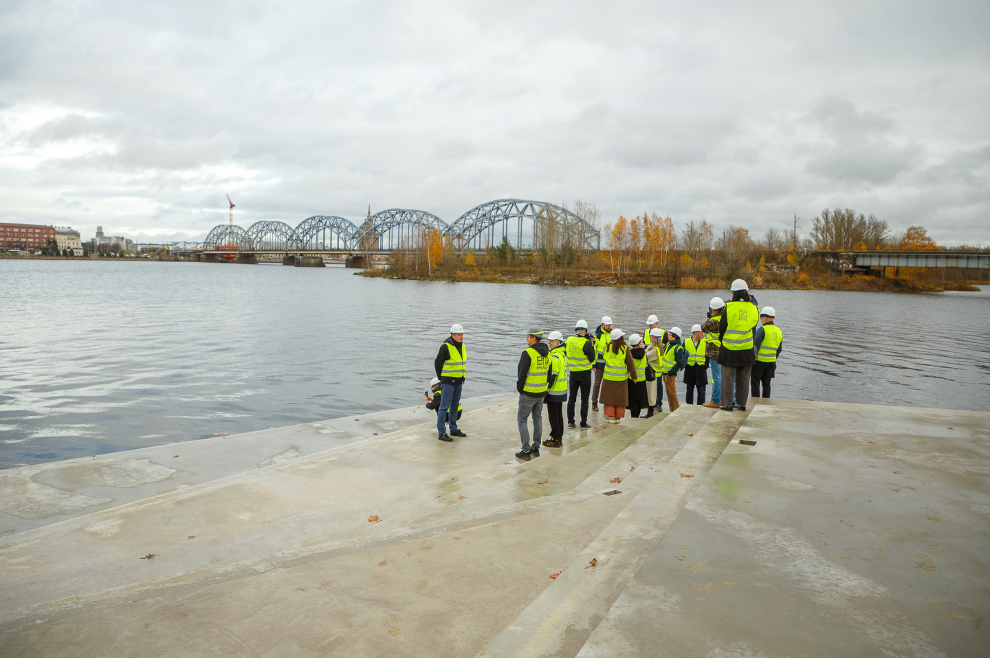 Rīgas domes vadība apmeklē Mūkusalas ielas krasta promenādi, lai klātienē apskatītu 11 mēnešos paveikto darbu un iepazītos ar turpmāko būvdarbu plānu.