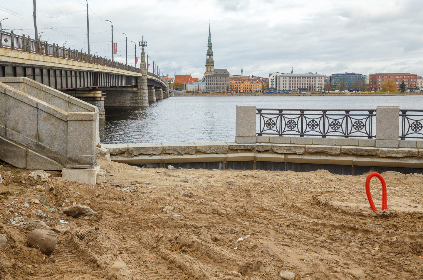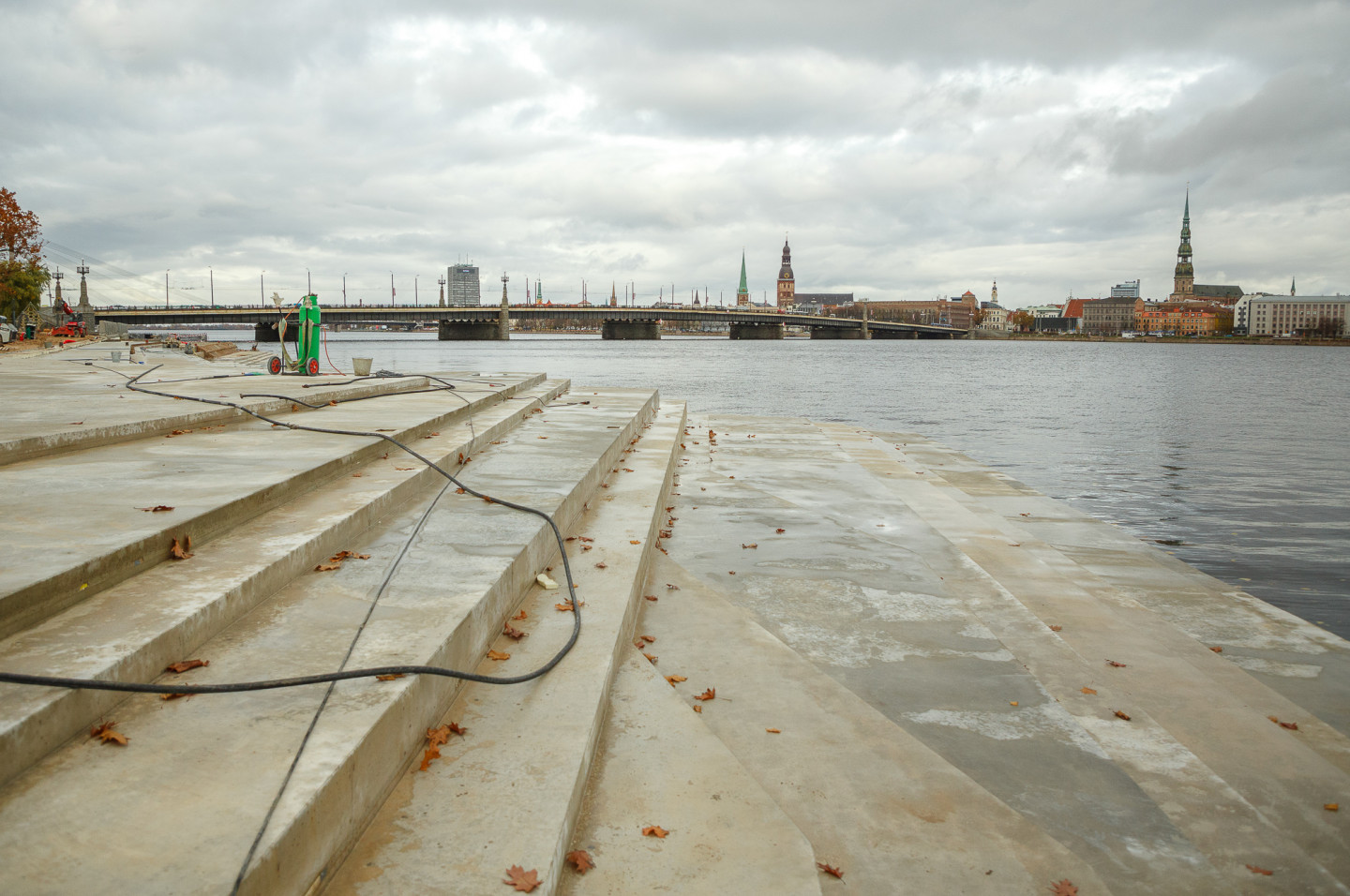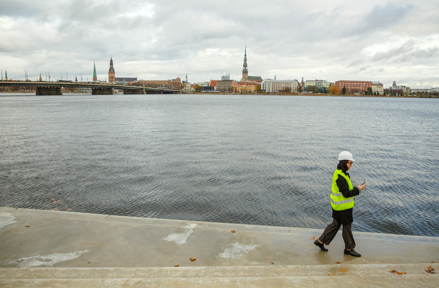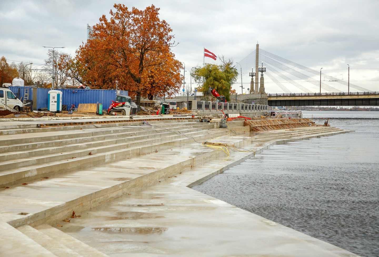 Rīgas domes vadība apmeklē Mūkusalas ielas krasta promenādi, lai klātienē apskatītu 11 mēnešos paveikto darbu un iepazītos ar turpmāko būvdarbu plānu.