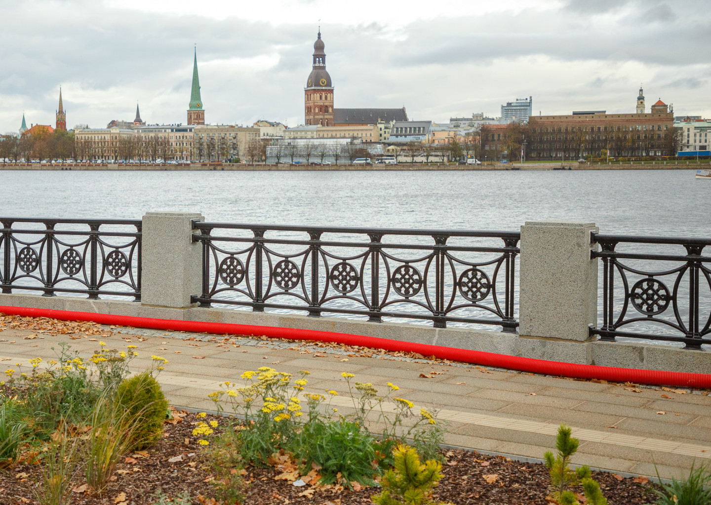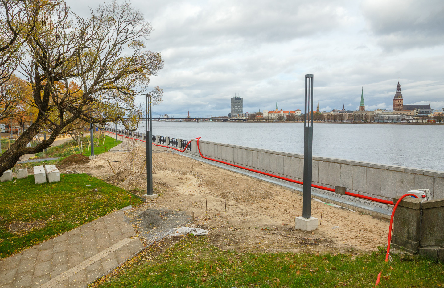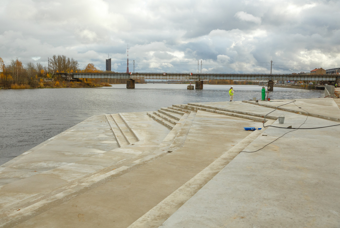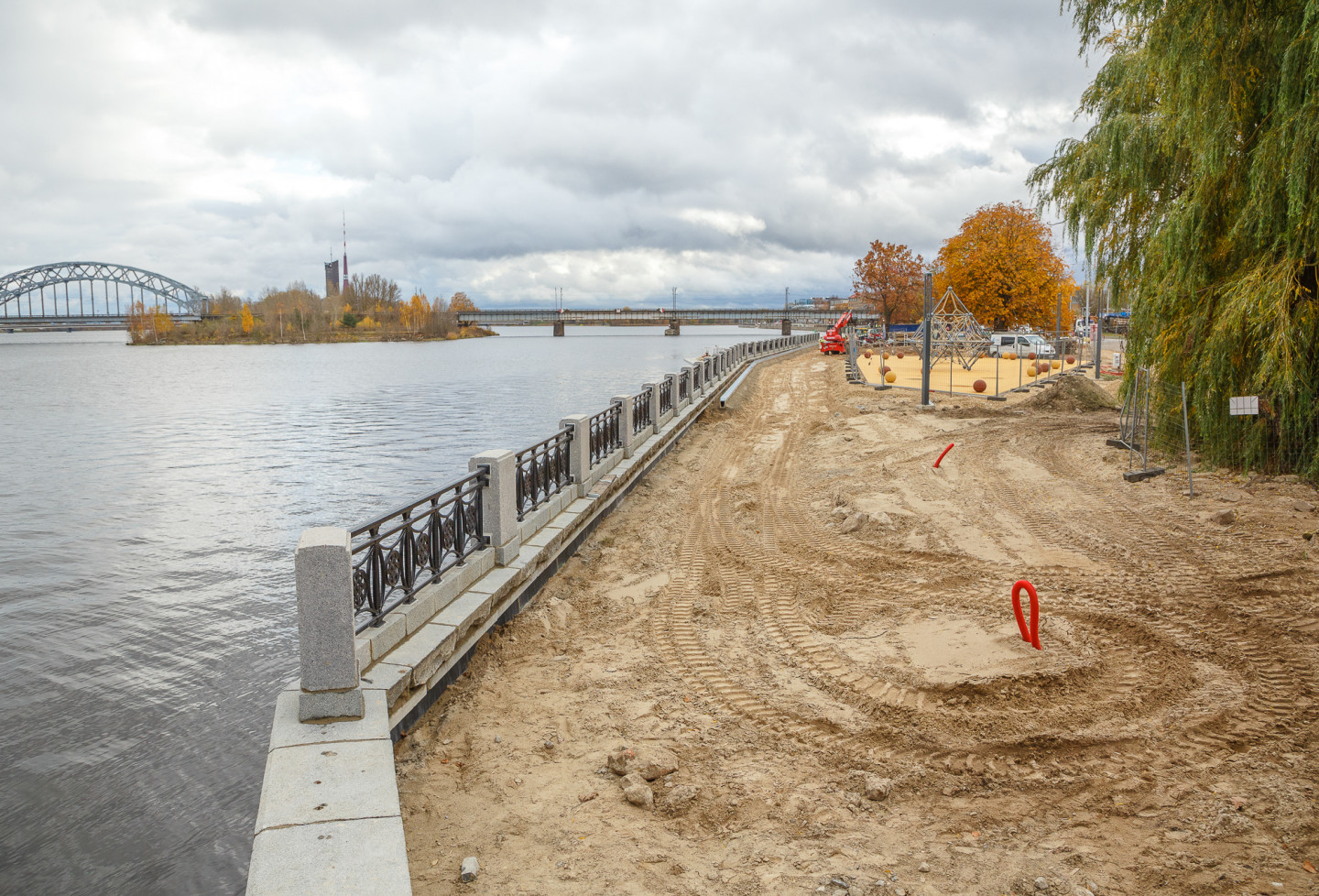 Rīgas domes vadība apmeklē Mūkusalas ielas krasta promenādi, lai klātienē apskatītu 11 mēnešos paveikto darbu un iepazītos ar turpmāko būvdarbu plānu.